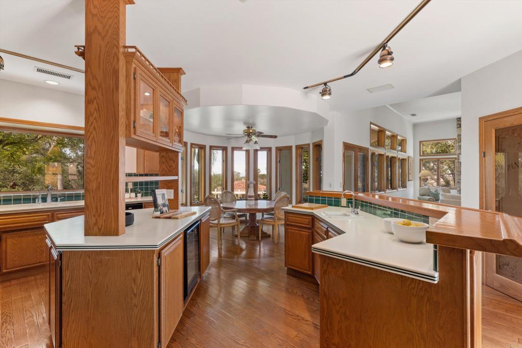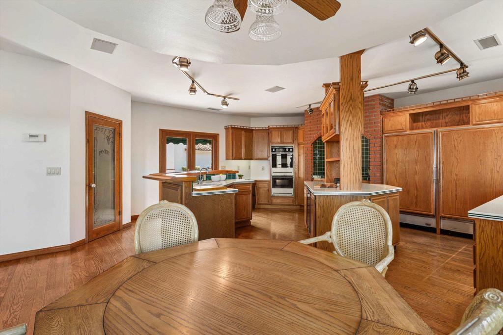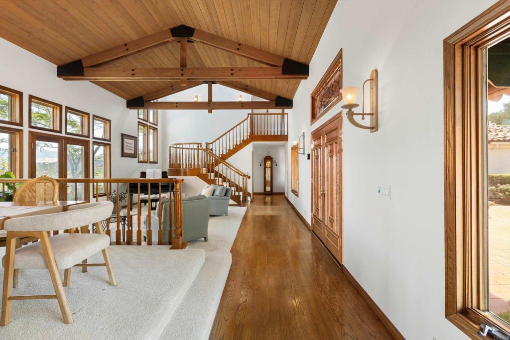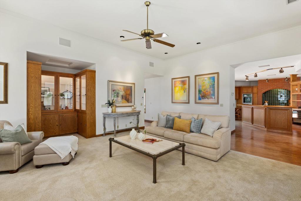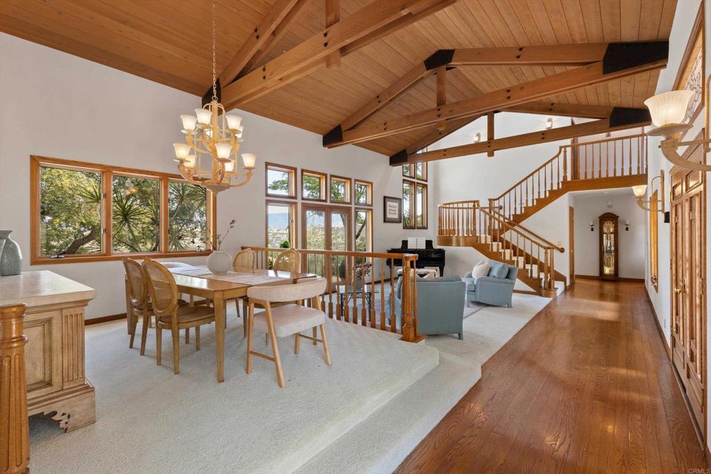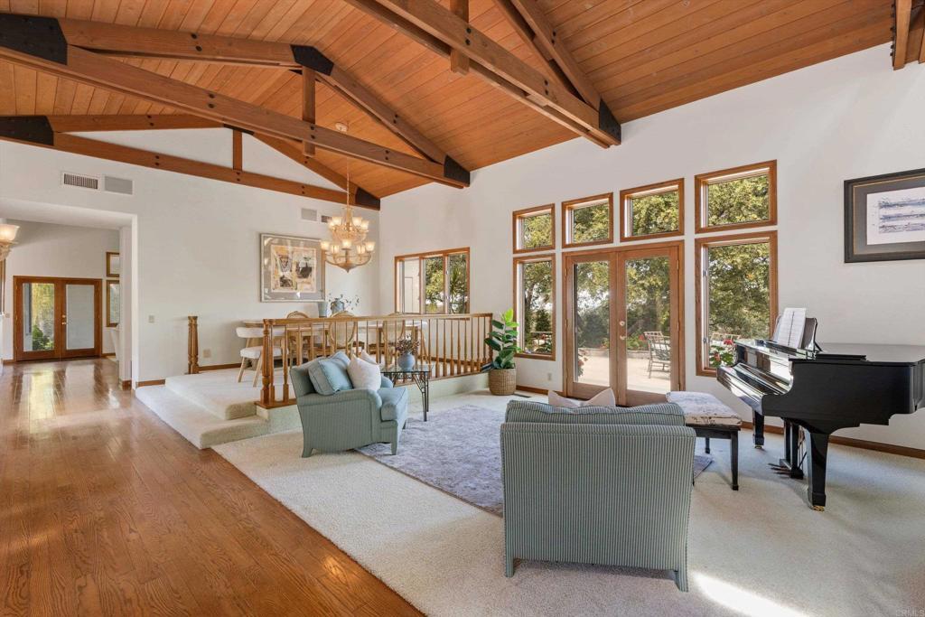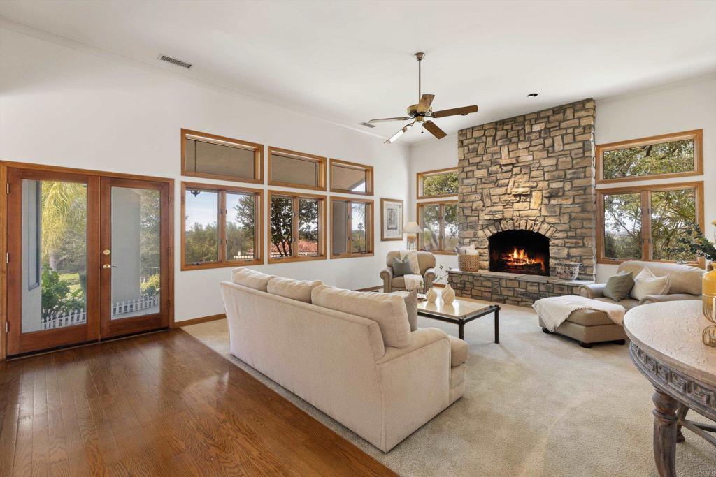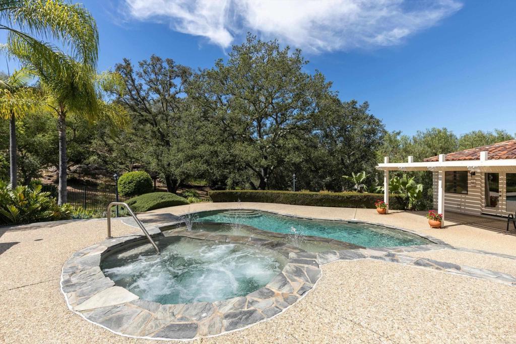 Incredible opportunity to own a magnificent custom home in the highly coveted Ridge Ranch gated community. Enjoy exceptional privacy, breathtaking views, and exquisite craftsmanship throughout. A welcoming front-entry courtyard sets the tone for this impressive residence, featuring expansive rooms, wood-trimmed window casings, and a vaulted living room with exposed wood beams. The family room showcases a stunning rock-faced fireplace, perfect for gathering and relaxing. Step outside to enjoy open space and scenic walking paths, along with a resort-style backyard designed for both entertaining and tranquility. The pool house includes a convenient kitchenette and bathroom, complementing the beautifully designed three-tiered saltwater PebbleTec pool with spa and fountain features. Additional highlights include a circular driveway, back-up generator for added peace of mind, large shed, and tree house. You'll enjoy the meandering paths around the property while experiencing peaceful views and serene surroundings. You must see the home to fully appreciate the quality and amenities of this property.