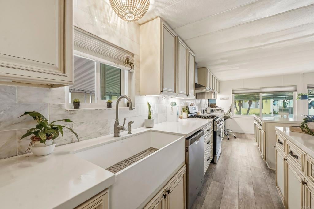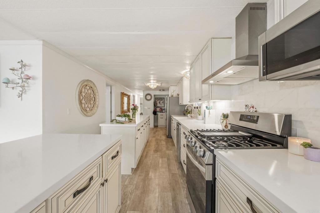 1.5 miles from the coast, 33 Parkwood Lane invites you to slow down and enjoy the effortless beauty of coastal living in Oceanside. This beautifully remodeled 3-bedroom, 2-bath manufactured home offers 1,248 sqft of light-filled space, thoughtfully designed for both comfort and style. The heart of the home is a stunning kitchen featuring two islands—perfect for morning coffee, casual dining, or gathering with friends after a day at the beach. Updated bathrooms add a spa-like touch, creating a true sense of everyday retreat. Located in an ALL-AGES community with LOW, controlled space rent of approximately $500/month, this is your chance to enjoy the beach lifestyle without the premium price tag.
