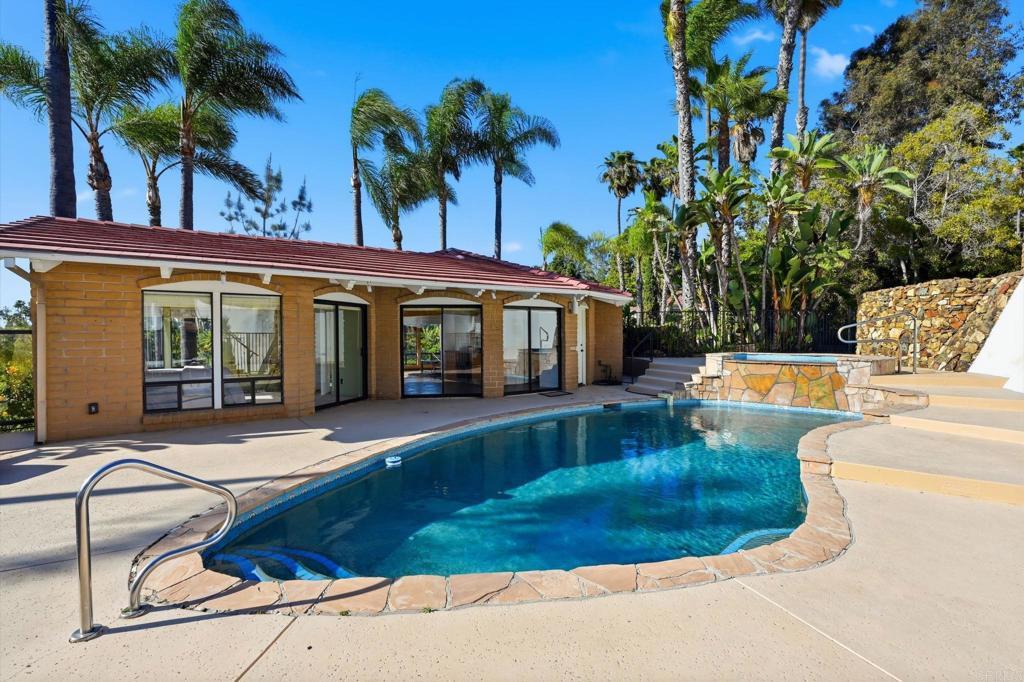Rare Larry Weir designed Adobe Estate – Private Hillside Retreat with Panoramic Lagoon to Ocean Views in the Heart of La Costa on 0.8+ Acres-Discover timeless character and coastal elegance in this one-of-a-kind 1986 custom adobe masterpiece by renowned San Diego adobe pioneer Larry Weir. Gated and privately situated on an expansive 0.8+ acre (over 34,800 sq ft) parcel in desirable La Costa, this exceptional property offers unparalleled seclusion and breathtaking direct lagoon-to-ocean views that frame stunning sunsets from key living areas, patios, and beyond. The main residence spans approximately 3,030 sq ft with 3 bedrooms and 2.5 baths, featuring authentic thick adobe walls for natural thermal efficiency, dramatic wood-beamed ceilings, rounded architectural details, and an organic flow that blends old-world charm with coastal living. The outdoor compound is a true entertainer’s dream and private resort escape: Detached Tuscan-style wine cellar a romantic, vineyard-inspired haven (with storage room below) Enclosed stone circular double outdoor shower a spa-like sanctuary offering natural privacy and resort-style indulgence. Dual outdoor kitchens and BBQs – featuring an expansive side-rear chef’s station with a fabulous woodfired pizza oven, ample bar seating, plus a casual poolside grill zone for seamless indoor outdoor entertaining. Resort-style pool and spa with panoramic lagoon and ocean views, surrounded by spacious decking perfect for lounging and gatherings. Separate pool house/casita (843 sq ft)- ideal guest or in-law retreat with large bedroom, massive bath, ocean views, and partial kitchen setup. Additional small non-permitted studio w/herb garden (approx. 12x8 sq ft) with basement offering flexible bonus space. Additional highlights include two two-car garages (attached & detached), on-site ground-mounted solar panels (24 panels) with EV charging station (in attached garage) for energy efficiency and modern convenience, and convenient proximity to top-rated schools, Omni La Costa, golf, beaches, restaurants and upscale amenities. This legacy Weir adobe estate presents a rare opportunity to own a distinctive hillside property with unmatched views, privacy, and lifestyle potential perfect for buyers ready to personalize and create their dream coastal retreat. Truly one-of-a-kind.