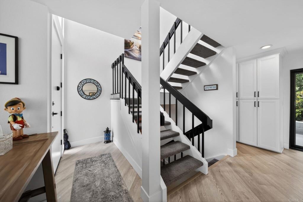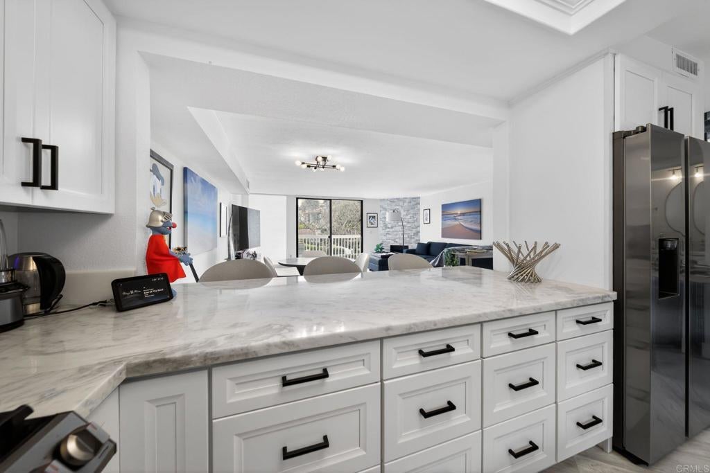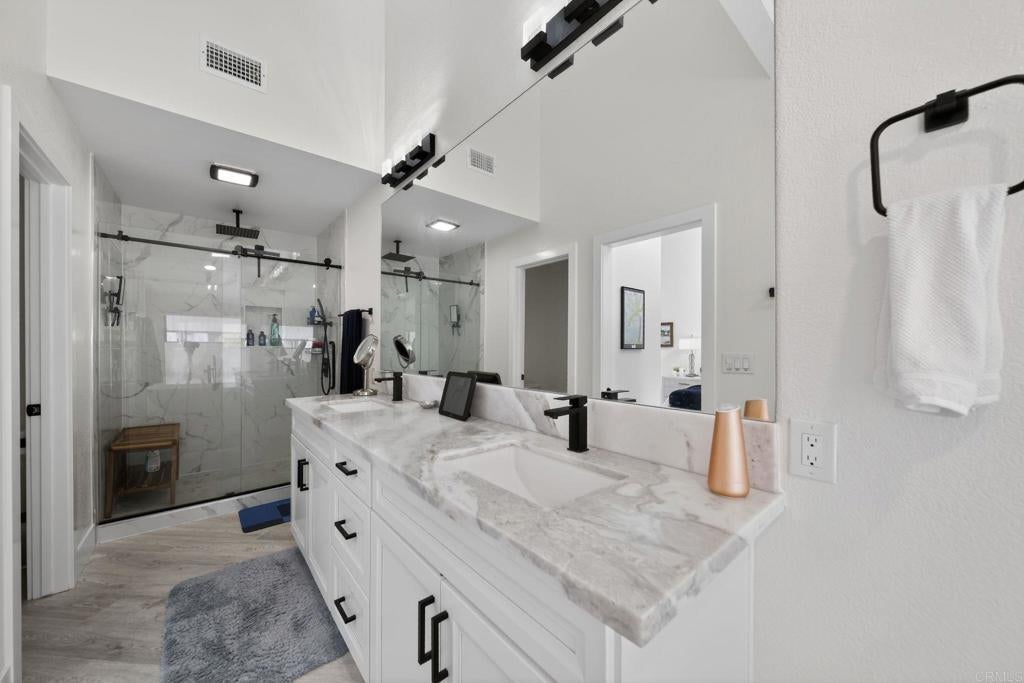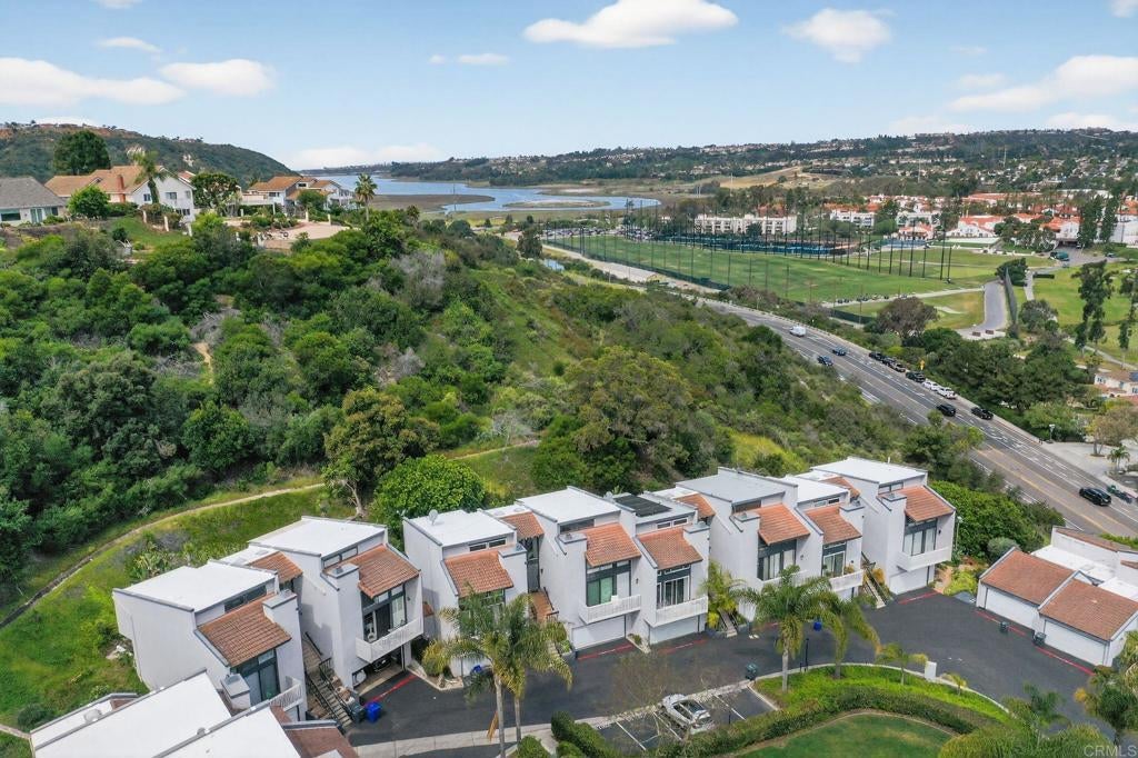 Fully renovated in 2022 and thoughtfully updated throughout, this move-in-ready home offers a rare blend of privacy, natural light, and contemporary design. Lightly lived in, it feels fresh, refined, and effortlessly livable. Ideally positioned with an east-facing orientation, the home is bathed in natural light from morning through afternoon. Scenic views from nearly every window create a bright and uplifting atmosphere throughout. The smart, multi-level floor plan offers exceptional flexibility. The third floor is dedicated to rest and retreat, featuring a spacious primary suite and a secondary ensuite bedroom for ultimate comfort and privacy. The main living area on the second level is designed for both relaxing and entertaining, anchored by a generous great room with ample wall space to accommodate even the largest flat-screen setup. A sleek gas fireplace with modern glass ice chips adds a sophisticated focal point, while the adjacent galley-style kitchen delivers both form and function complete with abundant prep space, an oversized island with seating for 3, and smart cabinetry with soft close features for streamlined storage. On the entry level, a versatile flex space currently used as a home gym offers endless possibilities for a home office, studio, or guest retreat. This level also includes a convenient laundry area, additional under-stair storage, and direct access to the attached two-car garage with its own dedicated storage room. Step outside and enjoy the beautifully landscaped, resort-style community pool, which is perfectly positioned for easy access and everyday enjoyment. Located just minutes from the renowned La Costa Resort & Golf Course, as well as premier shopping and dining, this home delivers the ultimate Southern California lifestyle. Experience the feeling of being on vacation, every single day.