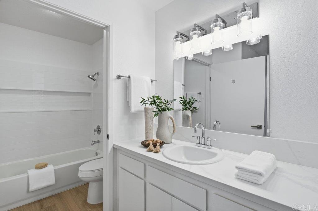 Welcome to this beautifully renovated top-floor corner Del Mar condo, offering exceptional privacy, abundant natural light, and a quiet, interior unit location. Thoughtfully updated throughout, the home features a modern kitchen with quartz countertops, new plumbing fixtures, and upgraded appliances including a new dishwasher, range, and sleek slim-line microwave. The bathroom has been refreshed with a new shower and tub enclosure, while additional upgrades include new flooring, fresh interior paint, stylish light fixtures, and recessed can lighting. The oversized living room creates a bright and inviting space, perfect for both relaxing and entertaining. Additional highlights include in-unit laundry hookups, a single-car garage, and recently serviced heaters paired with new thermostats for added comfort and efficiency. One of the most unique features of this home is the expansive attic space, offering an incredible opportunity to create a loft above the kitchen and dining area—ideal for a home office, guest space, or additional living area. Combining modern upgrades, functional living, and a serene atmosphere, this Del Mar condo is a rare opportunity to enjoy coastal living in a highly desirable location.