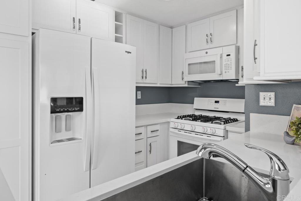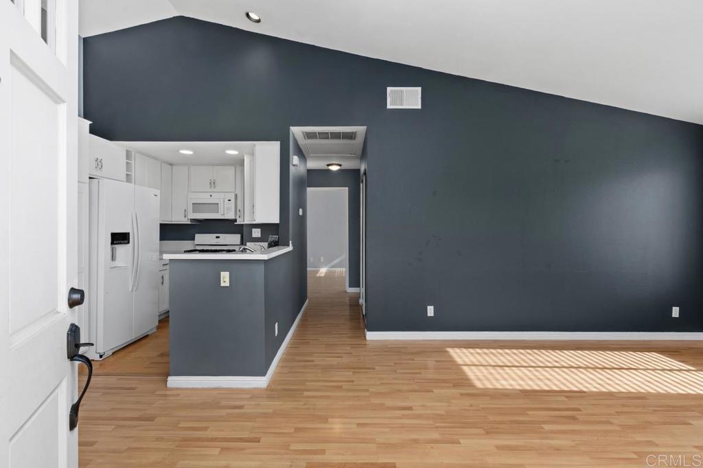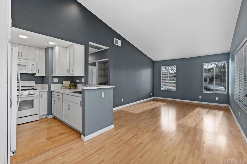 Single-story condo with a beautifully remodeled kitchen, solid surface flooring throughout, vaulted ceilings, and an abundance of natural light, ideally positioned with the community green space just beyond the home, adding to the sense of openness. Upon entering, you’re welcomed into the living room with vaulted ceilings and a view of the green space. The kitchen and dining area flow seamlessly together, creating an easy, connected layout. The kitchen offers white shaker cabinetry, quartz countertops, and a large single-basin sink. French doors lead to the primary bedroom, offering a generous walk-in closet and direct access to the bathroom. The secondary bedroom features a built-in window bench with surrounding cabinetry, offering both storage and a comfortable place to relax and enjoy the view. The bathroom includes a shower-tub combination and a laundry closet with a full-size washer and dryer, completing the floor plan. Additional features include air conditioning, a private deck, a one-car garage, and an assigned uncovered parking space. The community offers a pool, spa, clubhouse, and dog park and is conveniently located near Ivey Ranch Elementary, King Middle School, and El Camino High School, with easy access to shopping and dining and a short drive to the beach.