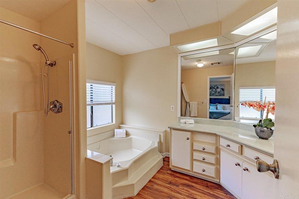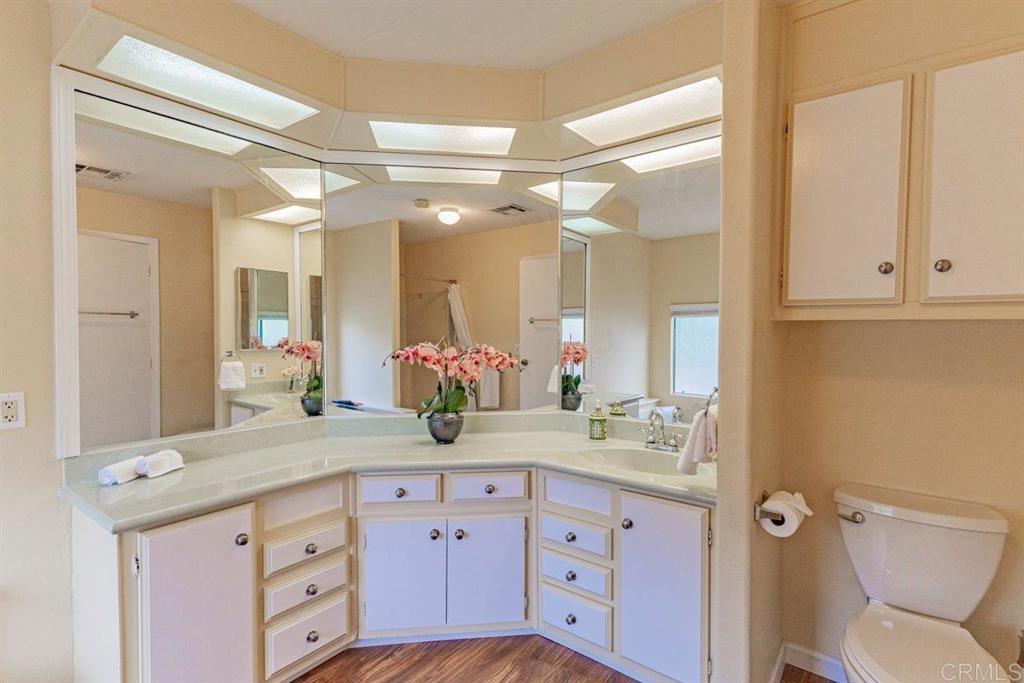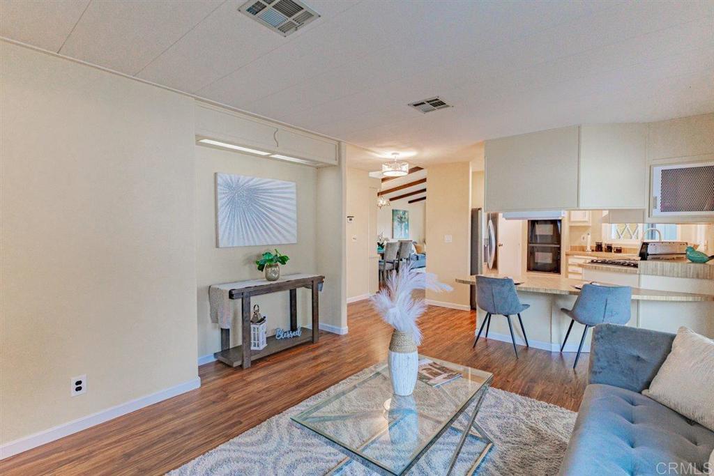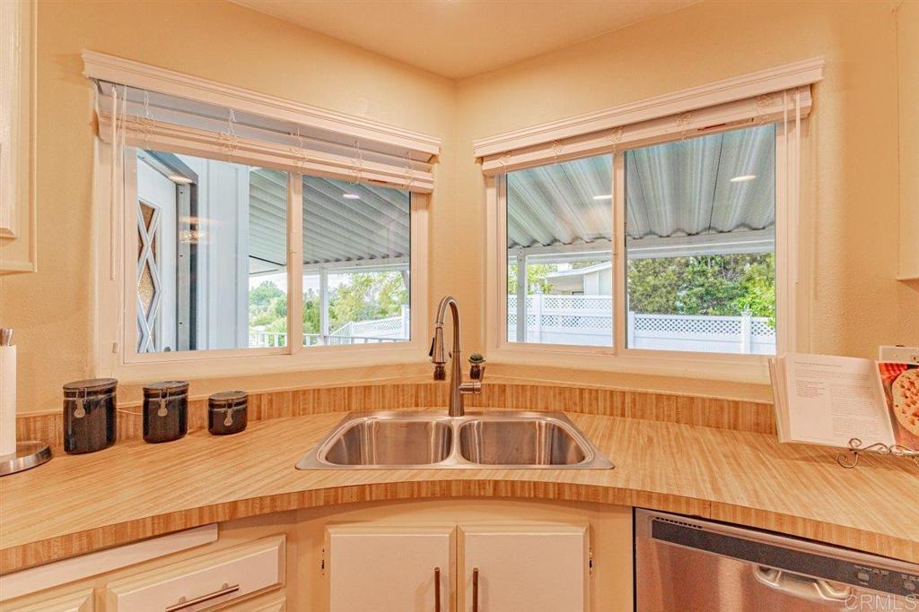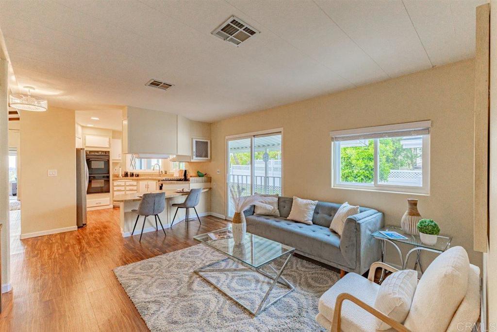 Amazing Sunset Views Overlooking Golf Course!! You’ll enjoy spectacular views from this spacious 2 br 2 bath mobile home in a very desired location above the golf course in Skyline Ranch Country Club. This 55+ gated community is a hidden gem in Valley Center, offering incredible amenities that include unlimited no fee golfing, a beautifully remodeled clubhouse with 2 pools, a huge jacuzzi and a separate gym. The park has a large fenced dog park, lovely nature trails, and optional affordable RV parking. This freshly painted home has many upgrades including a spacious trex deck and private fenced yard with lush turf that you and your pets will love, and an orange tree that produces delicious navel oranges year-round. Relax in your open living and dining area with vaulted beamed ceilings, and new sliding door that opens onto the outside deck. Your separate family room adjoining the kitchen also has a new sliding door that opens onto the outside deck. This home has a total of 1660 feet of living space. Your vehicles will be especially happy and protected in the 2-car detached garage, or beneath the roof of the extended carport that will accommodate 3 full size vehicles - plus you have a workshop that can double as a golf cart garage! Interior improvements include new Milgard dual pane tinted windows and sliders with custom cordless 2 ½” blinds throughout. Featuring stainless steel appliances, LVP flooring, plus a whole house Generac generator that will keep the entire house running in the event of a power outage! The HVAC, water heater, and roof are newer and in great condition. Skyline Ranch is Senior Living at it's best. You can be active with any of the many clubs or Clubhouse activities. They have swimming, BBQ/picnic area, dog park, walking trails, gazebo's for reading or enjoying nature, library, pool and ping pong tables, new gym, and there is always FREE golf on their SCGA approved golf course. Skyline Ranch is just minutes away from Valley View Casino and Bates Nut Farm. About an hour to beaches, downtown, mountains, and desert. Please come and visit.