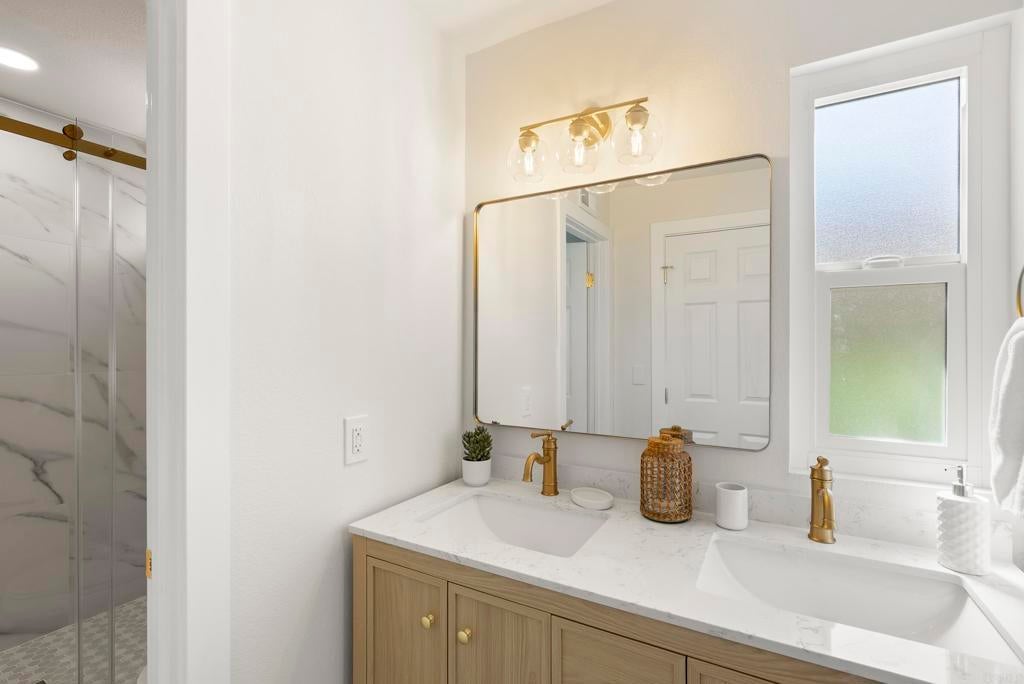 Beautifully remodeled single-story home in a desirable Vista community! This fully remodeled 3-bedroom, 2-bath single-story home offers elevated finishes and effortless living. Highlights include luxury vinyl plank flooring throughout, quartz countertops, new appliances, updated windows, custom-tiled bathrooms and so much more. The primary suite features a walk-in closet and a private bath for added comfort. A generous back patio extends your living space outdoors, perfect for entertaining or quiet relaxation. Enjoy the added benefits of a dedicated laundry, a detached 2-car garage and access to a community pool in this well-maintained neighborhood. Additional upgrades include new interior paint, updated plumbing and electrical, recessed lighting, ceiling fans, a new furnace, updated water heater, sliding glass door, and upgraded garage with new door, motor, and epoxy-coated floor. Ideally located in central Vista, this home offers convenient access to shopping, dining, parks, and everyday essentials. Just minutes from the revitalized downtown village, you’ll enjoy local restaurants, coffee shops, and community events, all while being tucked into a quiet residential setting. Easy access to major highways makes commuting a breeze.