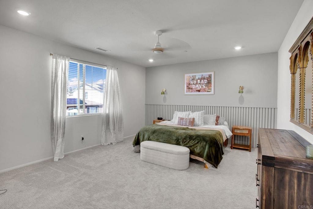 Welcome to this exceptional nearly 3,000 sq. ft. residence in the highly coveted Park Circle community of Valley Center, where modern elegance meets effortless California living. This beautifully designed two-story home offers five spacious bedrooms and three full bathrooms, thoughtfully crafted for both comfort and sophistication. The open-concept layout is filled with natural light and enhanced by upgraded flooring, a designer backsplash, and custom built-in cabinetry that adds both style and functionality. At the heart of the home, the chef’s kitchen features a generous walk-in pantry and seamlessly connects to the dining and family spaces—perfect for elevated everyday living and seamless entertaining. Upstairs, a spacious loft provides a versatile second living area, media room, or play space. The expansive primary suite serves as a private retreat, offering a spa-inspired bath and a large walk-in closet. Additional bedrooms are generously sized, while a dedicated office and oversized laundry room bring added convenience to daily living. Residents of Park Circle enjoy access to resort-style amenities, including multiple pools and clubhouses, a state-of-the-art fitness center, scenic walking trails, and outdoor gathering spaces—all within a quiet, well-maintained community. This is a rare opportunity to own a home that perfectly balances space, thoughtful upgrades, energy efficiency, and an exceptional lifestyle.