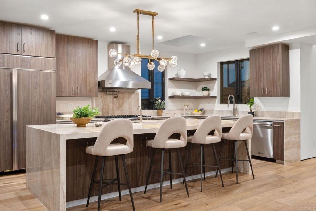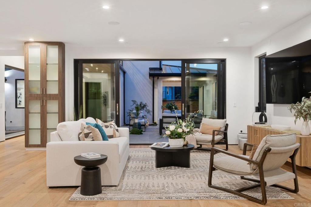 UNFURNISHED. Situated on an oversized/elevated corner lot in the heart of Bird Rock, this stunning warm contemporary, Ground Up/New Construction, epitomizes Luxury Coastal Living. The beautifully designed and incredibly well-built home encompasses over 3,100 square feet of living space, inclusive of 4 Bedrooms and 3.5 Bathrooms. Imagine the coastal entertainer's dream... with gorgeous bi-folding doors in the main corridor, perfectly conducive to entertaining. Featuring seamless indoor/outdoor flow from the heart of the home, the extraordinary chef's kitchen spotlights an array of high-end appliances/finishes from the Viking/Miele appliances to the incredibly sought-after Taj Mahal Quartzite Countertops. This spacious dream kitchen blends flawlessly with the great room, furnished with the acclaimed Duchateau hardwood flooring, and the wide-open indoor/outdoor vibe out to the beautiful slate hardscape, positioned perfectly on this oversized/corner lot. Custom carpentry for doors and cabinets, along with solid walnut countertops in the secondary bathrooms adds a touch of bespoke craftsmanship throughout. Imagine anything from a quiet evening of Hors D'oeuvres and dinner with close family to a larger entertainment-style gathering, with a night of fun, laughs, food & drinks as you entertain your favorite people while beautiful music plays through the plethora of high-end audio-visual technology, truly capturing the Bird Rock/La Jolla Lifestyle. This home is exceedingly versatile and effortlessly lends itself to a multitude of options. Imagine after a long day at the beach, retreating to the upstairs primary bedroom wing, also equipped with bi-folding doors, offering excellent indoor/outdoor living, out to the deck with blue water views and from there up to your private roof deck, where you will feel led to relax and unwind as you catch the sunset and take in the fabulous ocean air along with the breathtaking vantage point of panoramic ocean views. The home also features an ADU providing flexibility for guests, extended family, or even rental income! This home was designed to evoke the most powerful, positive emotions. Beyond the eye-catching aesthetics, this home was built with the utmost quality of construction and unmatched structural integrity in mind, with zero corrections during the entirety of the City of San Diego Planning and Permitting Process, with oversight, Design Collaboration, and Construction Management by Julio Robles. It is the ideal home for feeling like you don't want to leave. Yet, this phenomenal home is walkable to beaches, Bird Rock Elementary, local shops & boutiques, and some of Bird Rock's most coveted local establishments... Beaumonts and Bird Rock Coffee Roasters to name just a couple! Whether you are looking for a primary residence to call yours or a coastal getaway destination in La Jolla, this property is very "lock and leave" so you never have to worry.