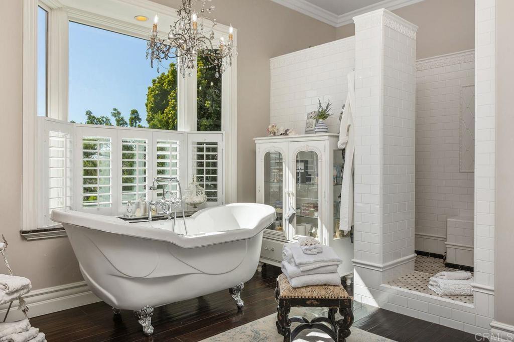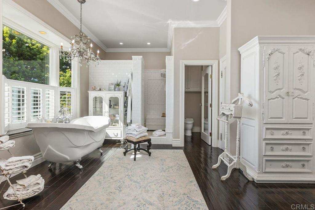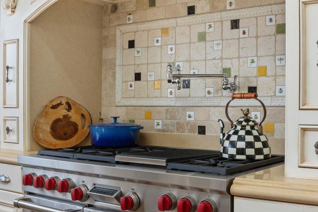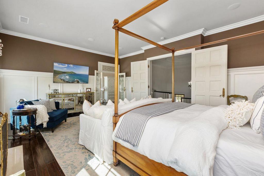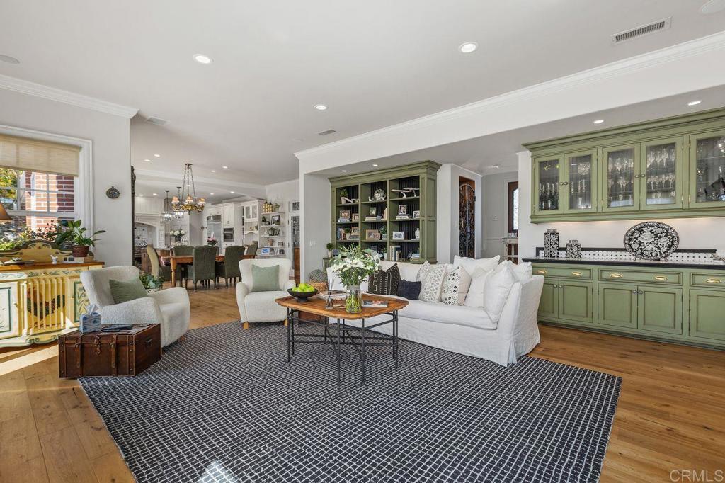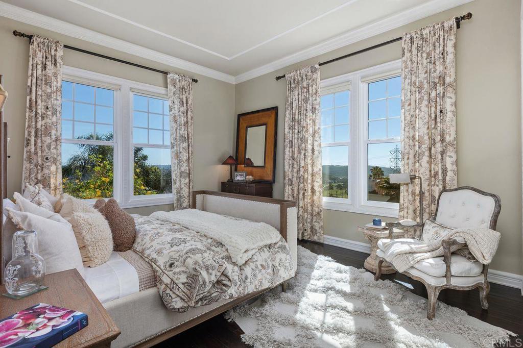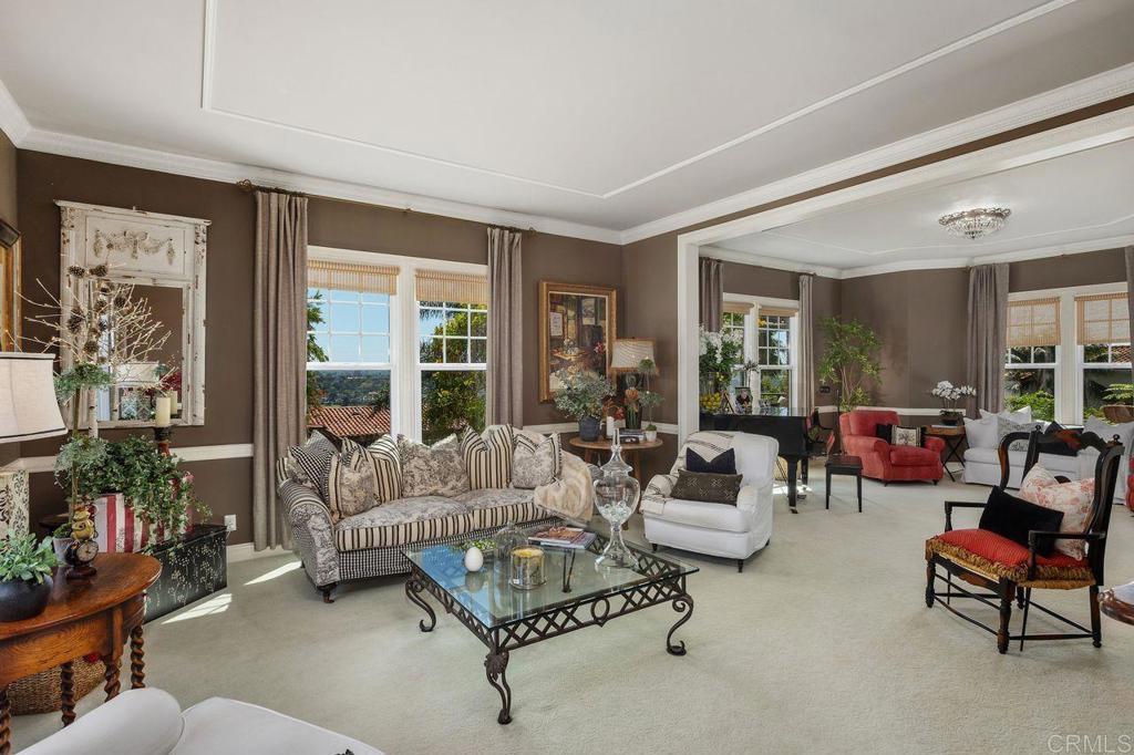 Commandingly positioned within prestigious La Costa Estates, this exceptional custom residence captures sweeping westerly views of the ocean, lagoon, and the Omni La Costa Golf Course—an extraordinary backdrop for refined coastal living. Thoughtfully crafted with impeccable attention to detail, the home features soaring ceilings and a well-conceived floor plan that flows effortlessly, creating a refined balance of openness, functionality, and comfort—ideal for both everyday living and sophisticated entertaining. A dramatic entry foyer showcases a grand, symmetrical double staircase, complemented by a crystal chandelier and custom hand-crafted tin ceiling. Designed for both function and style, the kitchen showcases a Wolf range, Miele coffee system, imported French limestone surfaces, and a custom Villeroy & Boch sink. The adjoining dining room presents a refined atmosphere with Venetian plaster ceilings, tailored wall treatments, and a statement stone fireplace. The primary suite offers a timeless and tranquil retreat, with ocean and golf course views extending from the bedroom into the spa-inspired bath, complete with a luxurious soaking tub and a large, walk-in shower. An expansive walk-in closet includes a versatile adjoining space ideal for a dressing room, office, or nursery. Set on approximately half an acre, the grounds evoke a private estate setting with beautifully manicured gardens, mature fruit trees, and multiple outdoor living spaces. A fully equipped outdoor kitchen and two outdoor firepits create inviting spaces for gathering, all framed by natural beauty and coastal sunsets. Throughout the home, multiple interior fireplaces, finely crafted custom built-ins, and high-end finishes reflect exceptional quality and craftsmanship, while a spacious multi-car garage adds both convenience and functionality. A rare offering where exceptional views, premier location, and timeless design come together.