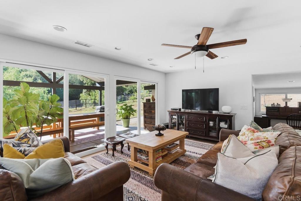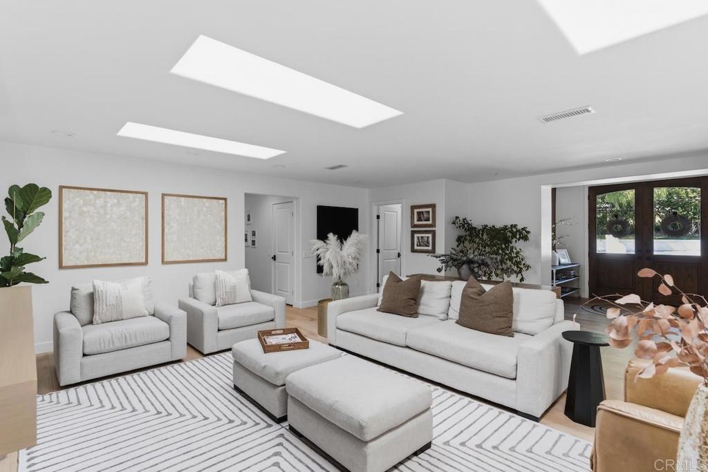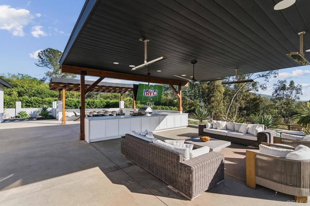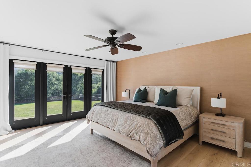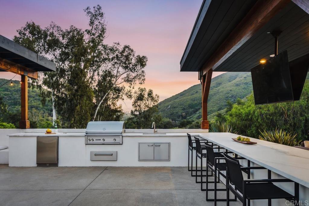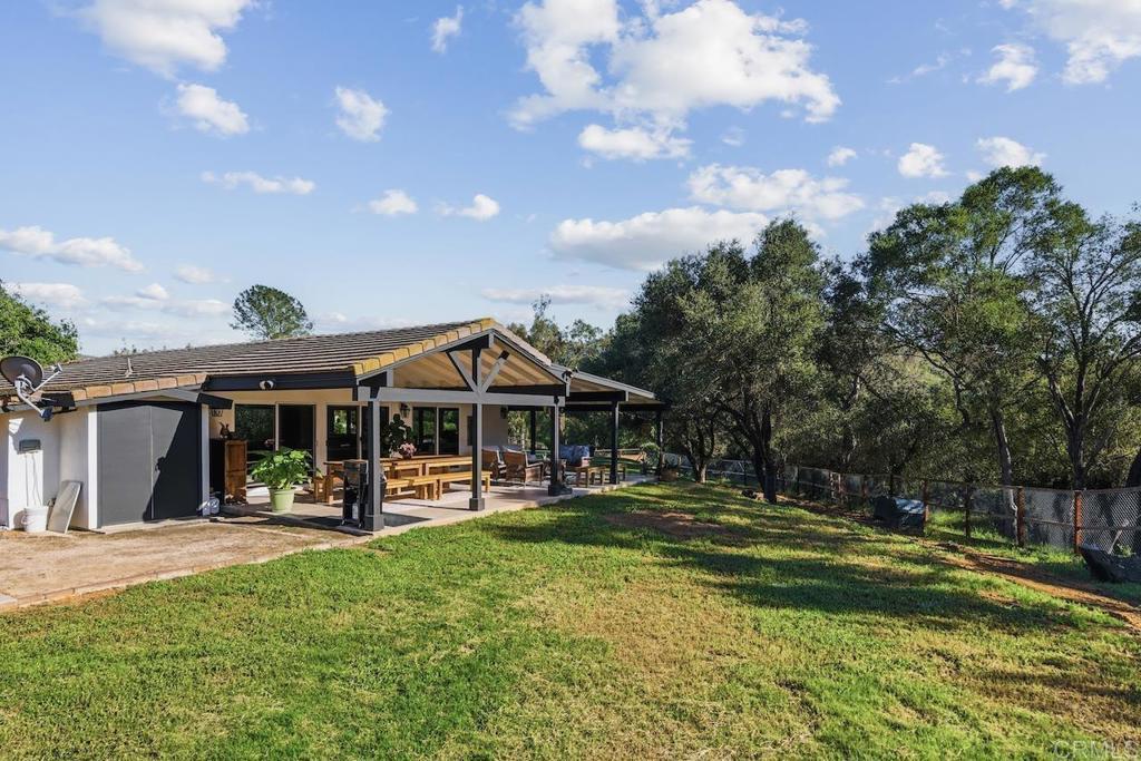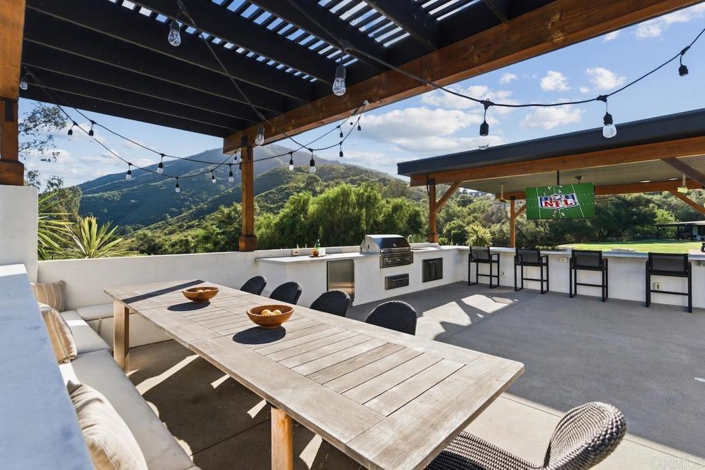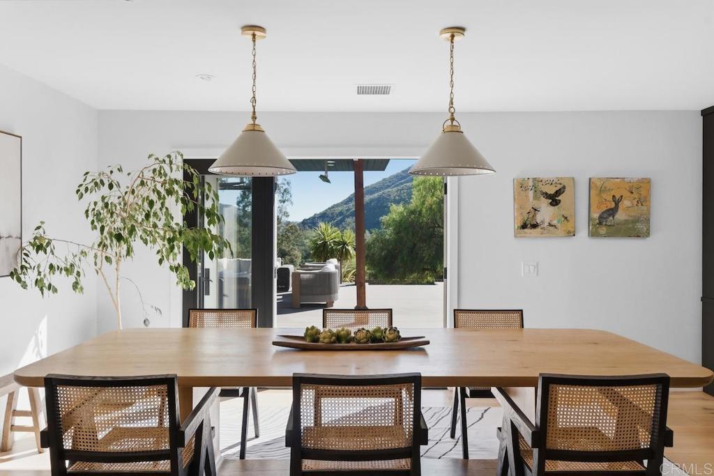 Privately gated and set on 2.5 acres in the coveted enclave of Elfin Forest, this stunning estate offers a rare blend of elevated style, usable land, and seamless indoor-outdoor living complete with a large guest house. The single-level residence is thoughtfully curated with wide plank white oak flooring, skylights, and designer finishes throughout. The kitchen is a true focal point, featuring custom cabinetry, quartzite countertops, a statement AGA range, and handcrafted Zellige tile. The primary suite opens directly to the backyard and is complemented by a beautifully appointed bath with custom tile work and a well-designed walk-in closet. The vast outdoor space offers a covered lounge with dual TVs, Bromic heaters, and Sonos system that all flows into an expansive dining area built for entertaining. The outdoor kitchen is equipped with a Lynx BBQ, Wolf warming drawer, and refrigerator. A heated pool with Baja step, spa, and firepit create a true resort-style setting, with a sport court (basketball and pickleball) and turf field adding to the recreation options. A detached 2 bed/2 bath guest home of 1,200 est.sq.ft. includes a kitchen, office nook, laundry, mini-split A/C and wrap-around covered patio space. Additional highlights include a 3-car garage with potential for a lift for car enthusiasts, Tesla leased solar, mature orchard and a well. Set against the Escondido Creek Preserve that offers miles of scenic trails, the property delivers a unique sense of space and privacy just minutes from coastal living, a combination that rarely becomes available. Zoned for Bernardo Elementary, Del Dios Middle, and San Pasqual High. Buyer and buyer's agent to verify all in MLS prior to COE.