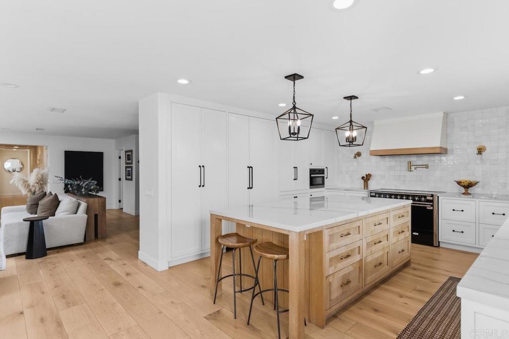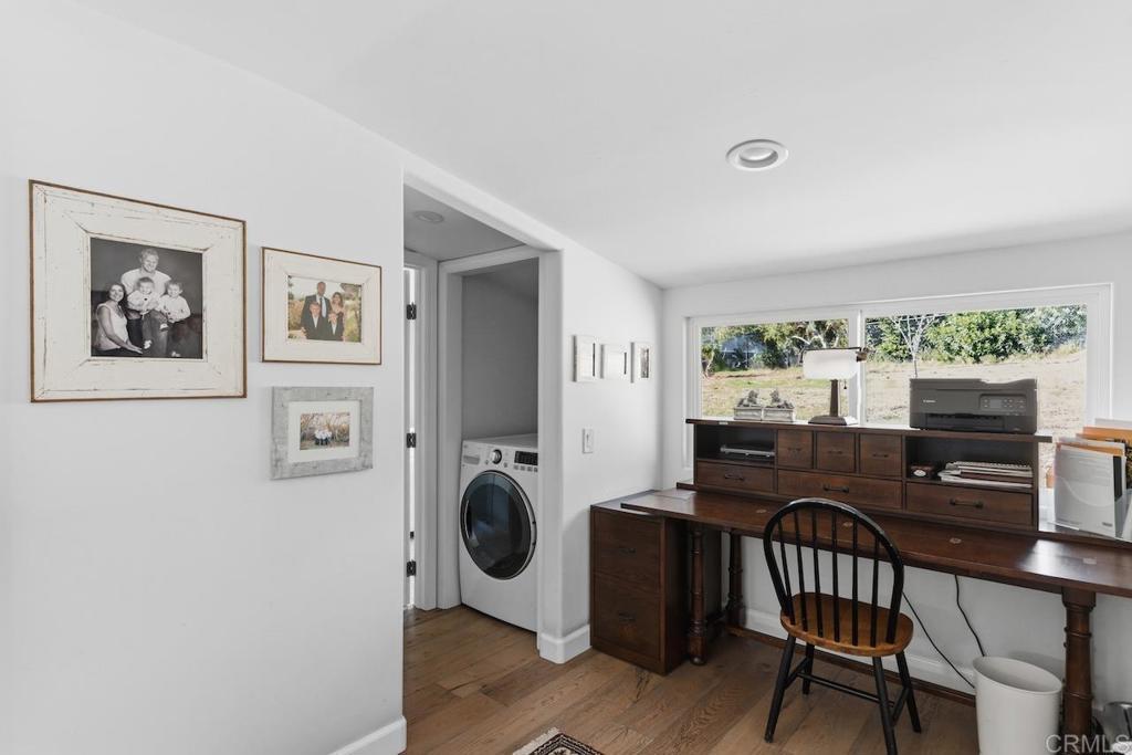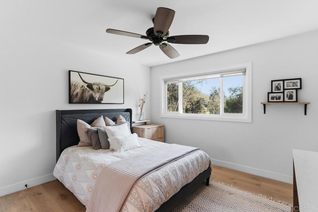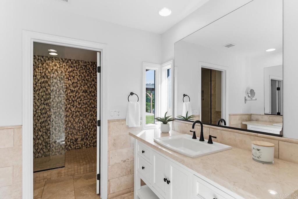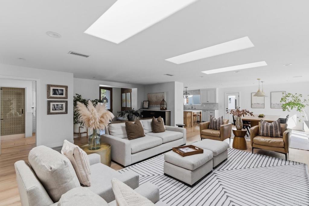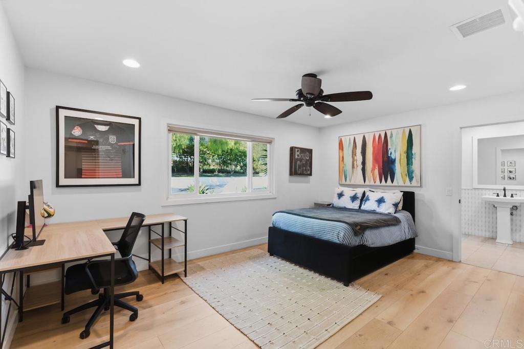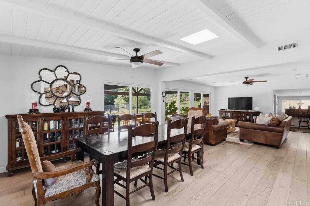 Privately gated and set on 2.5 acres in the coveted enclave of Elfin Forest, this stunning estate offers a rare blend of elevated style, usable land, and seamless indoor-outdoor living complete with a large guest house. The single-level residence is thoughtfully curated with wide plank white oak flooring, skylights, and designer finishes throughout. The kitchen is a true focal point, featuring custom cabinetry, quartzite countertops, a statement AGA range, and handcrafted Zellige tile. The primary suite opens directly to the backyard and is complemented by a beautifully appointed bath with custom tile work and a well-designed walk-in closet. The vast outdoor space offers a covered lounge with dual TVs, Bromic heaters, and Sonos system that all flows into an expansive dining area built for entertaining. The outdoor kitchen is equipped with a Lynx BBQ, Wolf warming drawer, and refrigerator. A heated pool with Baja step, spa, and firepit create a true resort-style setting, with a sport court (basketball and pickleball) and turf field adding to the recreation options. A detached 2 bed/2 bath guest home of 1,200 est.sq.ft. includes a kitchen, office nook, laundry, mini-split A/C and wrap-around covered patio space. Additional highlights include a 3-car garage with potential for a lift for car enthusiasts, Tesla leased solar, mature orchard and a well. Set against the Escondido Creek Preserve that offers miles of scenic trails, the property delivers a unique sense of space and privacy just minutes from coastal living, a combination that rarely becomes available. Zoned for Bernardo Elementary, Del Dios Middle, and San Pasqual High. Buyer and buyer's agent to verify all in MLS prior to COE.