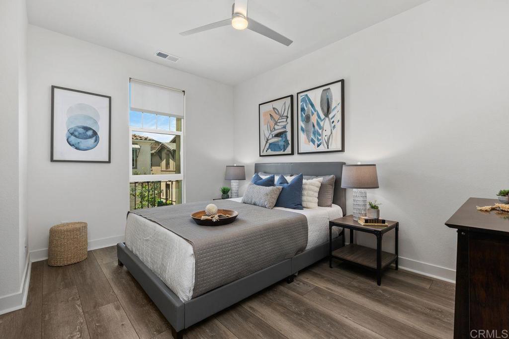 Nestled within the highly desirable Preserve community just miles from Carlsbad State Beach, this exceptional home offers the perfect blend of modern luxury and natural serenity. Ideally located within walking distance to shopping, dining, and transportation, it delivers both convenience and an elevated lifestyle. Step inside to an expansive open-concept floor plan that seamlessly blends sophistication with high-end, functional design. The chef-inspired kitchen is a true centerpiece, featuring striking white shaker cabinetry, a sophisticated glass backsplash, wide-plank wood-look flooring, and premium stainless steel appliances—including a five-burner gas stove. An oversized center island with a large single-basin sink, pull-down faucet, and custom glass-blown pendant lighting is complemented by timeless light-toned quartz countertops. The kitchen flows effortlessly into the inviting family room, where a cozy fireplace creates the perfect gathering space. Expansive sliding glass doors open to your private backyard oasis, complete with elegant custom pavers, lush tropical landscaping, ambient lighting, and a calming water feature—ideal for relaxing or entertaining. Upstairs, the home continues to impress with three bedrooms and a versatile loft featuring abundant natural light, a custom ceiling fan, and direct access to a private balcony. The thoughtfully designed primary suite offers a peaceful retreat, privately situated away from the secondary bedrooms. Enjoy direct balcony access, custom ceiling fan, a spa-inspired ensuite with dual vanities, an expansive walk-in shower, and a spacious walk-in closet. The two secondary bedrooms offer large closet space and ample natural lighting. A conveniently located upstairs laundry room includes a utility sink and additional white shaker cabinetry. The garage is equally refined, featuring epoxy flooring, custom built-in cabinetry, and functional storage solutions. Residents of The Preserve enjoy resort-style amenities, including a beach-entry pool, lap lanes, spa, BBQ area, outdoor fireplace lounge, fitness center, gated dog park, playgrounds, scenic park areas, and miles of hiking trails—all surrounded by 156 acres of preserved open space. Located within the top-rated Carlsbad Unified School District, this is more than just a home—it’s the lifestyle you’ve been waiting for.