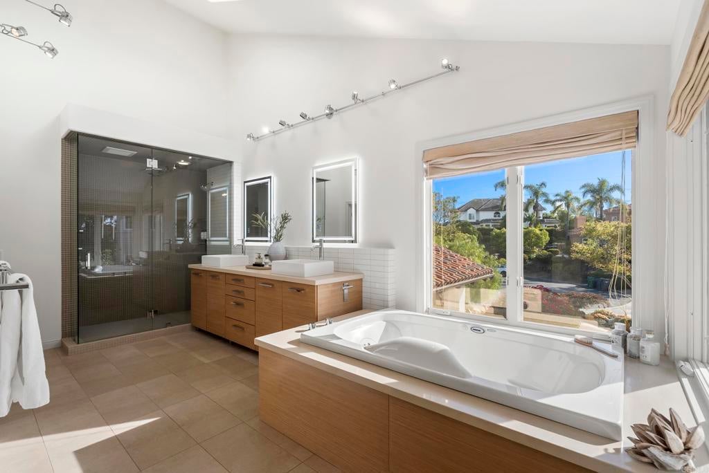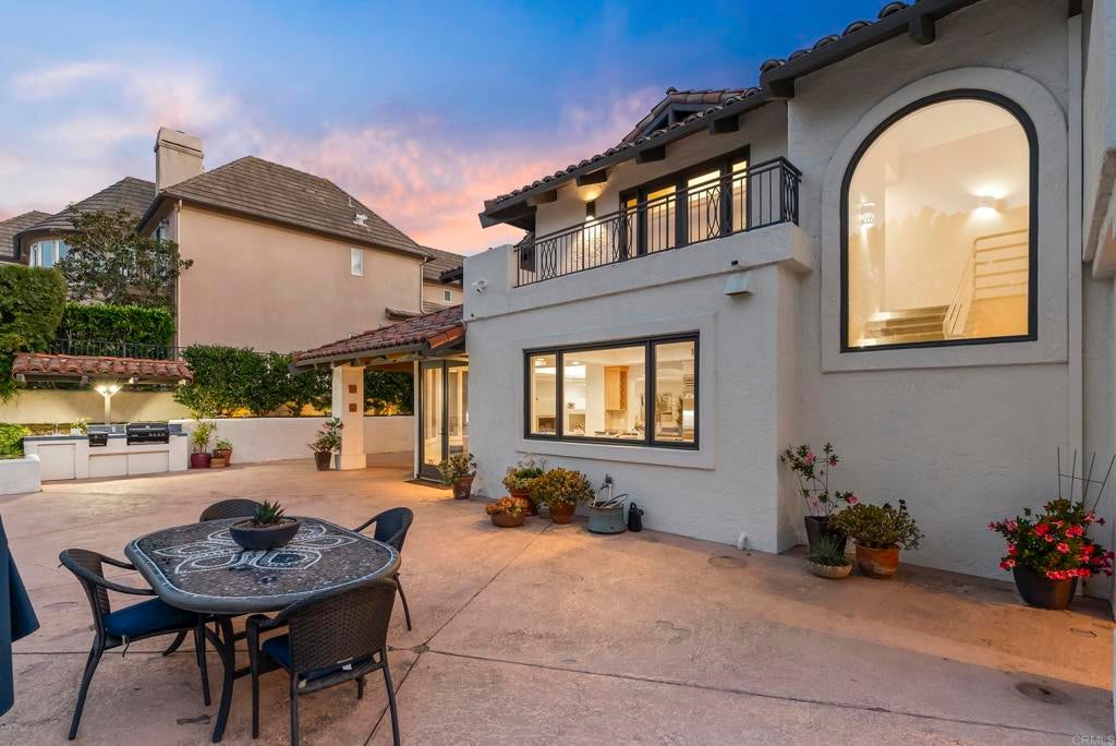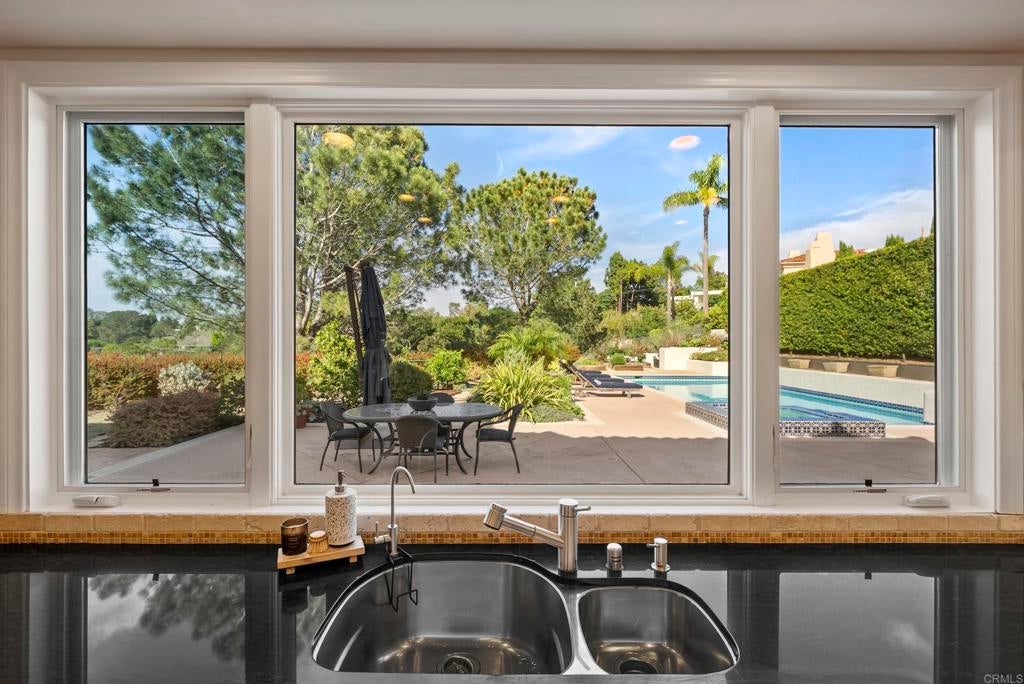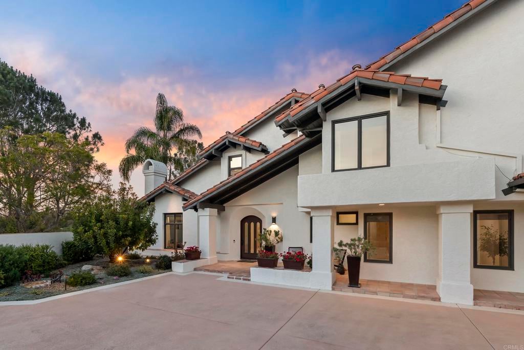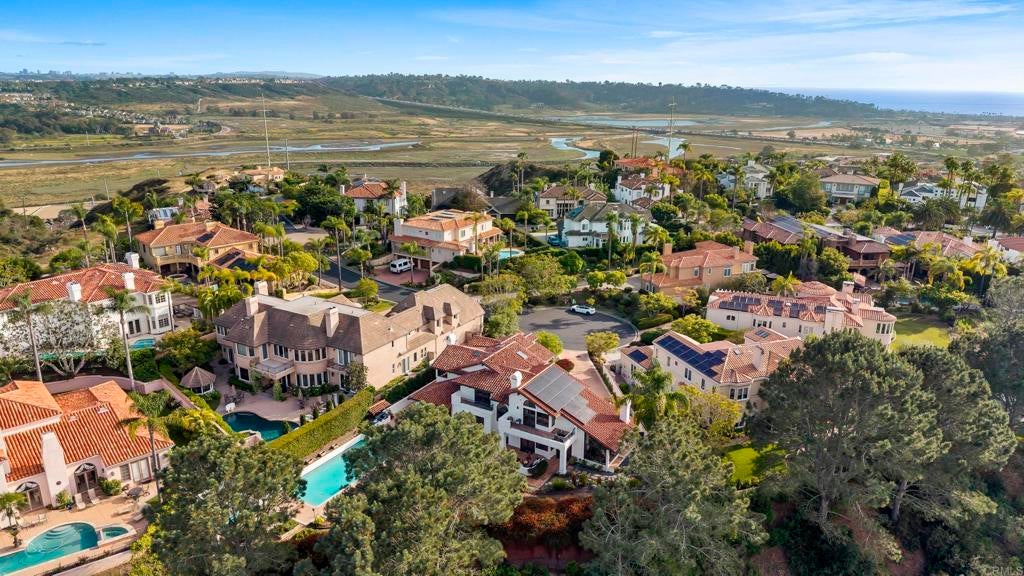 Tucked within a gated, exclusive enclave of just 26 homes, this exceptional residence is ideally positioned on a quiet cul-de-sac and set on a rare, expansive half-acre lot, offering an elevated blend of comfort, privacy, and refined living. This bright and airy home features 4 bedrooms plus an office (or optional flex space/additional bedroom), thoughtfully designed for both everyday living and sophisticated entertaining. Expansive windows showcase tranquil views and invite abundant natural sunlight throughout. Enveloped by lush, mature landscaping, the property lives like a private estate, with the generous grounds creating a true sense of space, seclusion, and usable outdoor living. The resort-style backyard is designed for effortless Southern California living, complete with a sparkling pool and spa, multiple seating and dining areas, and verdant greenery. Additional highlights include a solar system, nearly new roof, and a 3-car garage with extensive storage, including an approximately 10' x 10' stand-up storage area (pull-down ladder access). Located within the highly sought-after Solana Beach School District and just minutes from the beach, shopping, dining, and freeway access, this home offers a coveted balance of convenience and a serene, tucked-away setting. A rare opportunity to own a half-acre property in one of the area’s most desirable coastal communities.