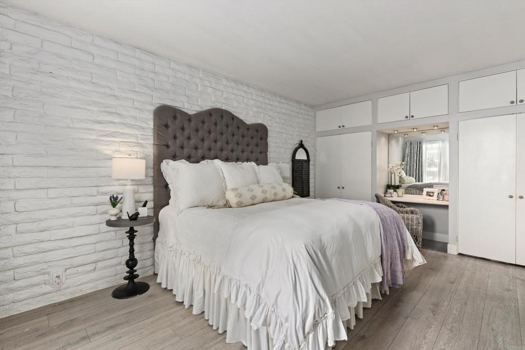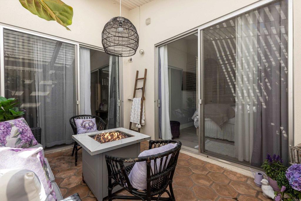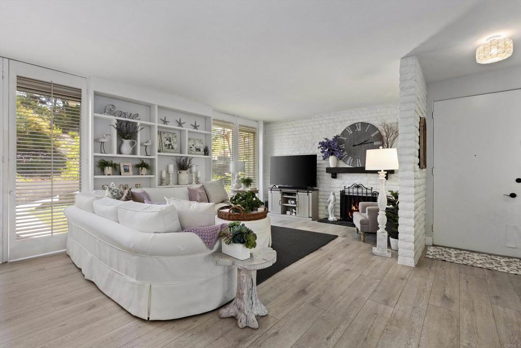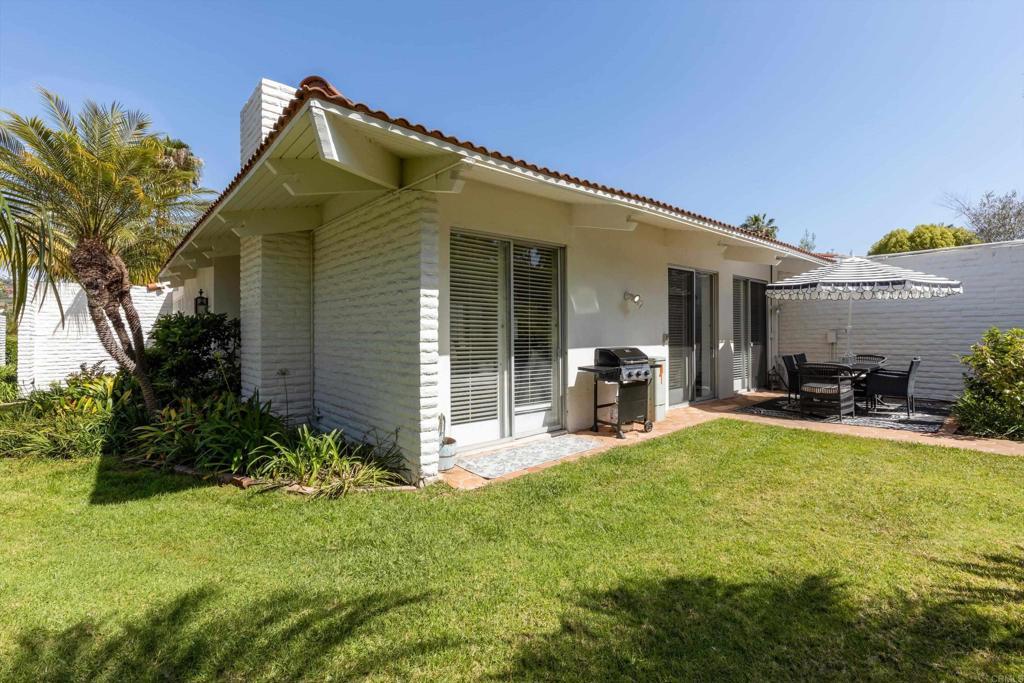 In the highly desirable La Costa-Encinitas corridor, single-story condos with this level of character are rarely available. This charming garden-style residence sits in a peaceful four-unit building within the La Costa Villas community. Originally built in the late 60's as part of the La Costa Resort & Spa, these villas were designed as "homestyle" accomodations for families that wanted to spend their entire summers at the resort. Over the decades, the world renowned & and newly revitalized 36-hole La Costa golf course has drawn iconic visitors including Jackie Kennedy & Frank Sinatra. This community still reflects that serene, resort-era ambiance: lush, expansive greenbelts weave between the villas, inviting you to wander beneath mature palms and a variety of fruit trees. This home itself showcases the Spanish-influenced mid-century modern architecture of its era, such as oversized front door and interior white brick that adds texture & visual interest to any decor. Five tall louver-covered sliding doors flood the interior with natural light. Two patios enhance the home- one located just outside the dining area with direct access to the community pool, and the other a semi-interior courtyard nestled privately between the two bedrooms with its own exterior entrance. Wide plank light oak toned floors run throughout the home, enhancing the airy feel of every space. The spacious primary bedroom features a striking brick accent wall- an ideal backdrop for a dramatic headboard. The secondary bedroom enjoys its own small "hallway" with bath, creating a sense of separation & comfort for guests. The location is truly IDEAL at the border of Encinitas and Carlsbad. Head down La Costa Blvd for a sunset cocktail overlooking the Pacific at clifftop Alila Marea Beach resort, or spend an afternoon exploring the shops & restaurants of the Forum, an upscale open-air mall. Catch the waves of Moonlight Beach then wander the artsy cafes & boutiques of coastal Encinitas along PCH. Don't miss the chance to experience Encinitas and La Costa in this peaceful, iconic community and to call Estrella De Mar... "home"