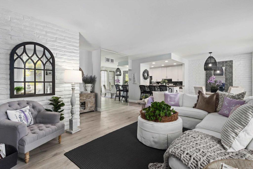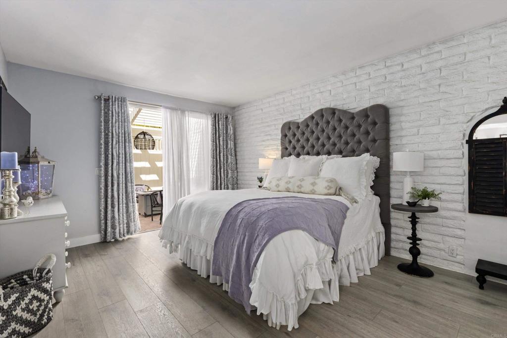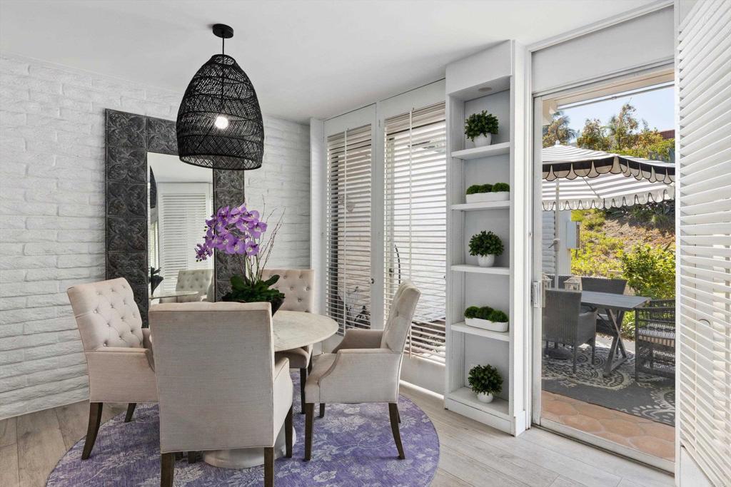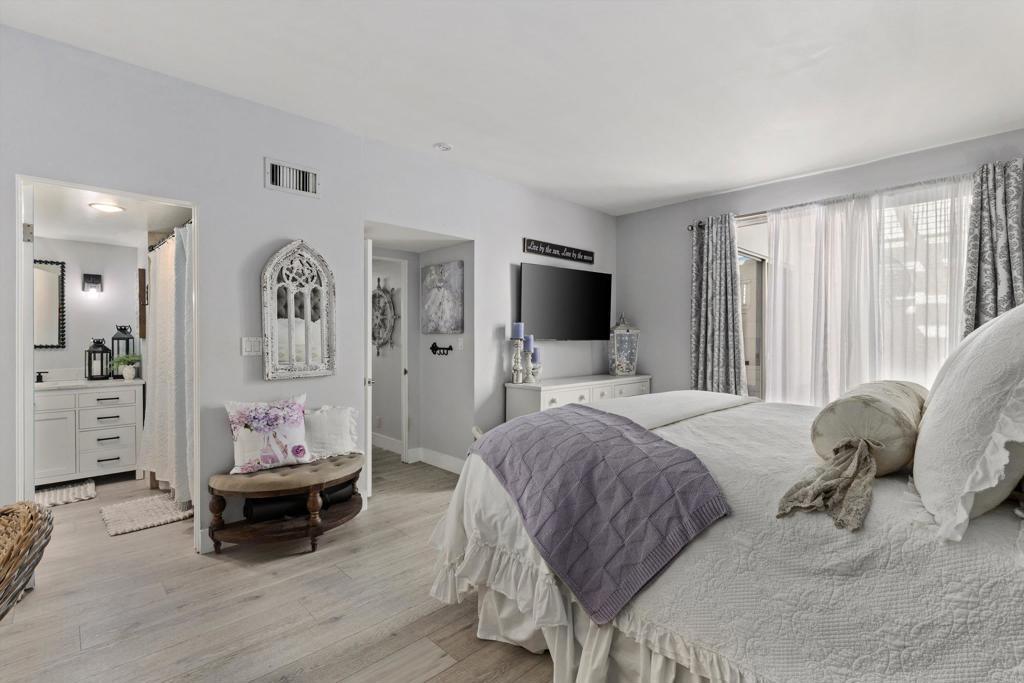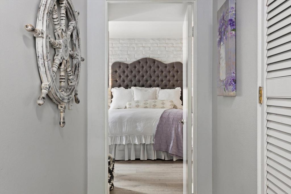 In the highly desirable La Costa-Encinitas corridor, single-story condos with this level of character are rarely available. This charming garden-style residence sits in a peaceful four-unit building within the La Costa Villas community. Originally built in the late 60's as part of the La Costa Resort & Spa, these villas were designed as "homestyle" accomodations for families that wanted to spend their entire summers at the resort. Over the decades, the world renowned & and newly revitalized 36-hole La Costa golf course has drawn iconic visitors including Jackie Kennedy & Frank Sinatra. This community still reflects that serene, resort-era ambiance: lush, expansive greenbelts weave between the villas, inviting you to wander beneath mature palms and a variety of fruit trees. This home itself showcases the Spanish-influenced mid-century modern architecture of its era, such as oversized front door and interior white brick that adds texture & visual interest to any decor. Five tall louver-covered sliding doors flood the interior with natural light. Two patios enhance the home- one located just outside the dining area with direct access to the community pool, and the other a semi-interior courtyard nestled privately between the two bedrooms with its own exterior entrance. Wide plank light oak toned floors run throughout the home, enhancing the airy feel of every space. The spacious primary bedroom features a striking brick accent wall- an ideal backdrop for a dramatic headboard. The secondary bedroom enjoys its own small "hallway" with bath, creating a sense of separation & comfort for guests. The location is truly IDEAL at the border of Encinitas and Carlsbad. Head down La Costa Blvd for a sunset cocktail overlooking the Pacific at clifftop Alila Marea Beach resort, or spend an afternoon exploring the shops & restaurants of the Forum, an upscale open-air mall. Catch the waves of Moonlight Beach then wander the artsy cafes & boutiques of coastal Encinitas along PCH. Don't miss the chance to experience Encinitas and La Costa in this peaceful, iconic community and to call Estrella De Mar... "home"