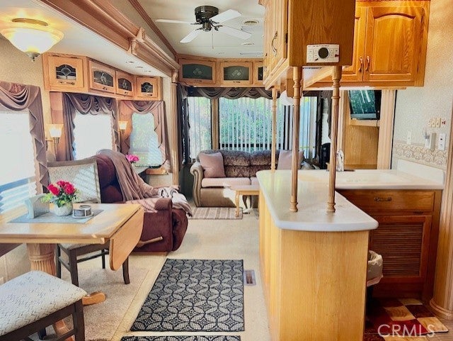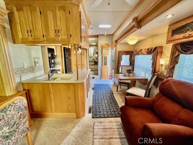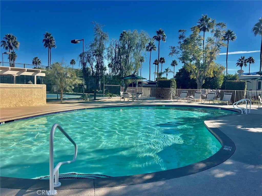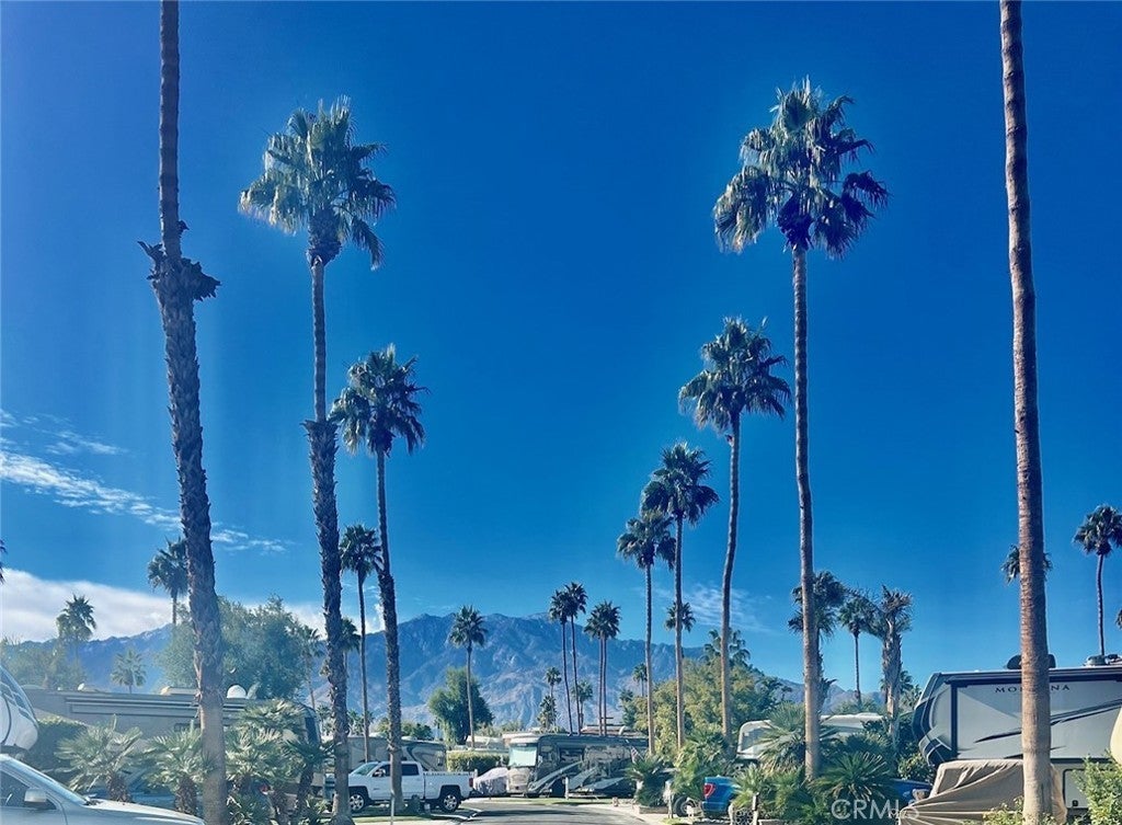 Welcome to resort living at Outdoor Resort Palm Springs (ORPS.COM) in this well kept 1 bedroom RV complete with patio and golf cart. The living area is includes a well stocked kitchen, dining area, living area with sofa bed, & desk. Step up to the master bedroom with numerous built in cabinetry, bathroom and shower area. Lots of windows and light plus a full size fridge and A/C. The expansive patio is adorned with a table & chairs, couch, umbrellas and barbeque creating the perfect setting for relaxation and entertainment. Positioned conveniently near the entrance for easy access. Outdoor Resorts Palm Springs is a Five Star RV Resort Community combining luxury with affordability. It is a guard gated resort that sits on 137 beautifully landscaped acres with 27 holes of executive golf, 10 tennis courts, 13 pickleball courts, 8 swimming pools, a fully equipped fitness center, espresso bar, sports bar, beauty salon/barber shop, full-service restaurant, convenience store, 2 club houses, activities, special events and so much more. Downtown Palm Springs is only 5 miles away, close to Palm Desert, Indian Canyons and there is a casino a mile away. Property is available for rent for a minimum of 2 weeks and up to 1 year. Rent is $3200 monthly or 2 weeks for $2000. Summer monthly is $2200.