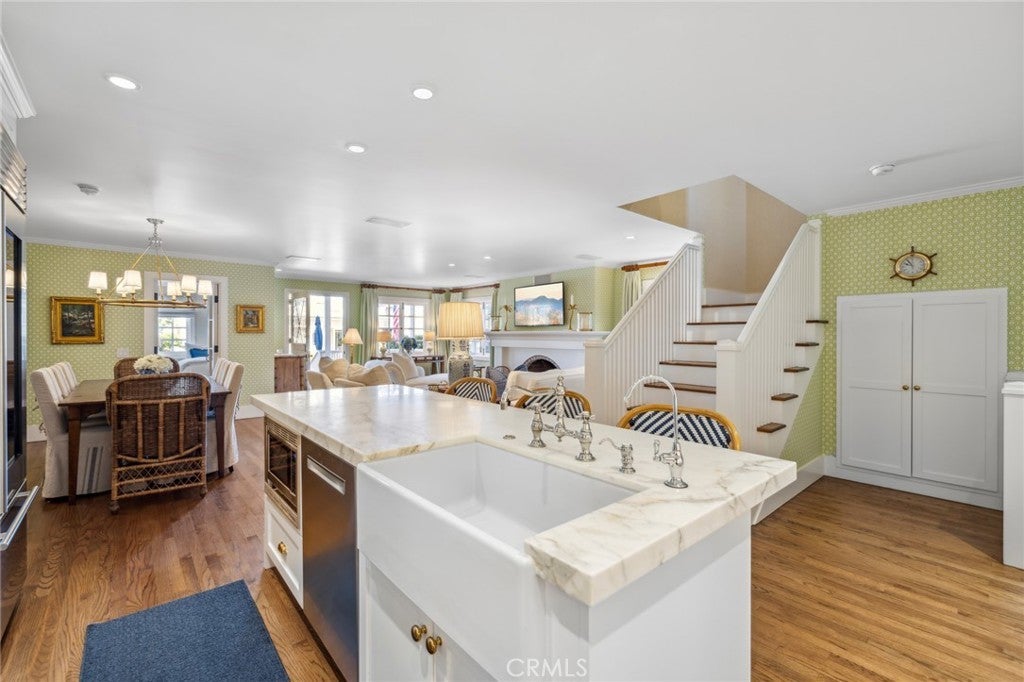 Welcome to your vacation dream home on iconic Balboa Island. Leave all stress at the door when entering this exceptional custom 4 bedroom, 3 bath home. Beautifully furnished and updated in the perfect location, just steps from beloved Ruby Beach. The first level is open and expansive, featuring colorful living area, gourmet kitchen with Thermador appliances and marble countertops, and first-floor bedroom. Upstairs, the primary suite is a luxurious retreat showcasing a spa-quality bath with heated floors, extensive closet space, and attached office with Peloton exercise bike. The spacious front yard is perfect for entertaining or relaxing, with ample seating and dining options, BBQ, and heating. Numerous additional amenities include central AC, wood floors, indoor laundry room, outdoor shower, paddleboards for guest use, and 2-car garage. Don’t miss this incredible opportunity to live and love the Balboa Island lifestyle.