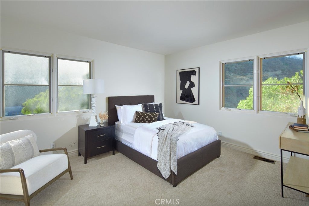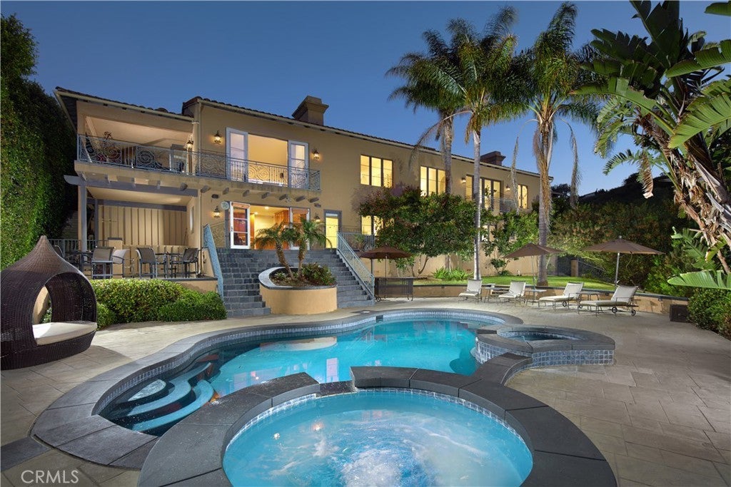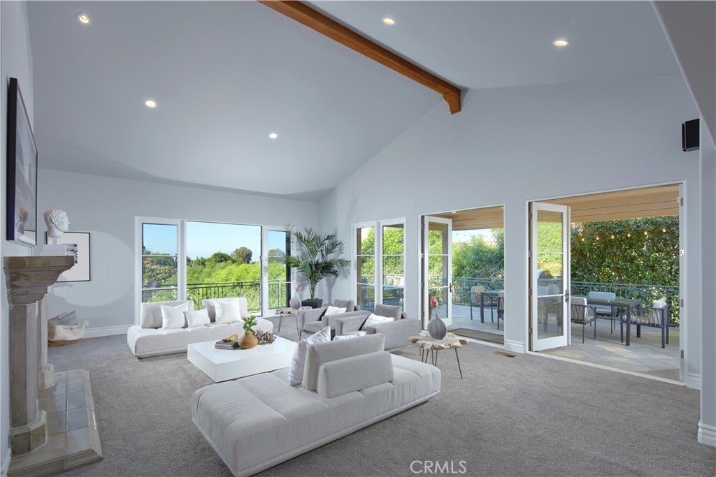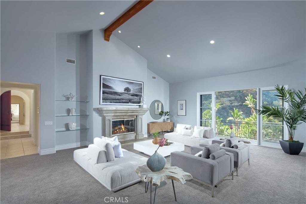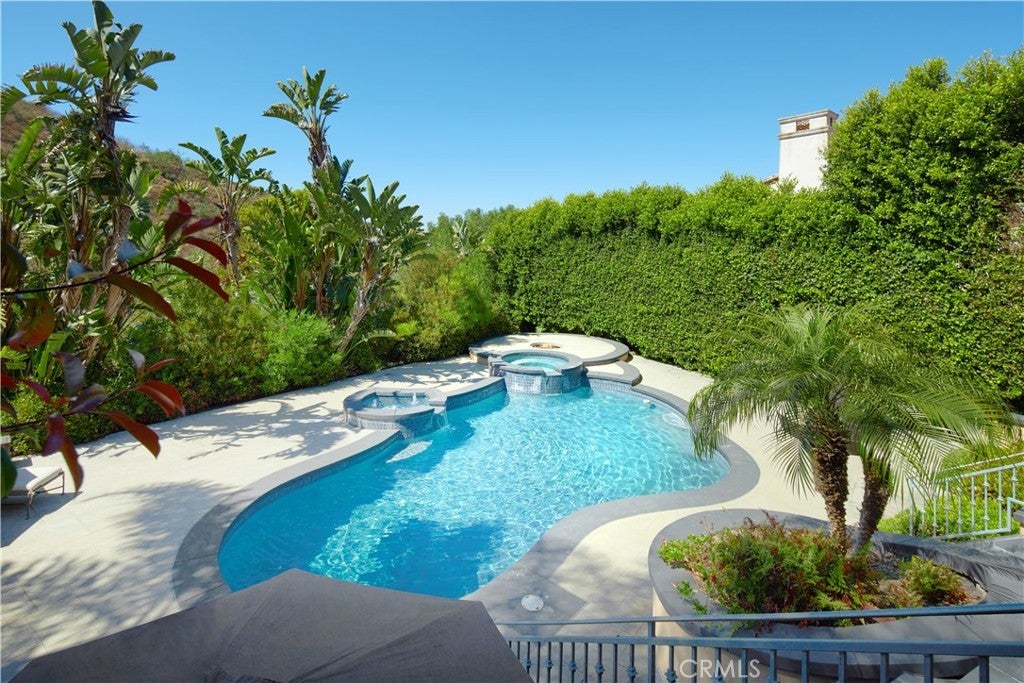 Embraced by rolling hills and mature landscaping on approximately 1.7 acres, this supremely private canyon retreat is one-of-a-kind, offering a spacious 6-bedroom, 4.5-bathroom main residence with an attached 3-car garage, plus a separate, roughly 3,200 square foot detached workshop/garage that can accommodate up to 10 additional cars and it features a bathroom, loft, and professional car lift. Previously used for a classic car collection, RV, and trailer storage, the opportunities for the expansive detached space are endless, but not limited to car enthusiasts. A future guest house, a lofted office space above your home spa/fitness center, a state-of-the-art workshop, and more, are each options for tailoring the space to your lifestyle. As you move from the impressive grounds to the home’s interior, you will find a grand foyer where a skylight, soaring ceilings, and an open floor plan invite you into multiple living and dining areas bathed in natural light. The recently remodeled gourmet kitchen features high-end appliances, custom cabinetry, and a large island. Adjacent to the kitchen, a grand fireplace-warmed living area offers awe-inspiring canyon and downtown Los Angeles city lights views, and opens to a covered patio to enjoy alfresco dining with a built-in barbecue. Completing the main level is a large formal dining room, a secondary living room with a fireplace and balcony, a half bath, and the grand primary suite. This primary suite boasts a private balcony with stunning vistas, two spacious walk-in closets, and a two-way glass fireplace to the bathroom with a soaking tub, dual vanities, and a glass-enclosed shower. Descending one level, discover five generously sized secondary bedrooms (one currently used as a home office complete with custom cherry wood cabinetry), each featuring en-suite bathrooms, sauna and laundry room. Outdoor living is equally impressive, showcasing multiple decks, a fire pit, sparkling pool and spa, plus abundant patio and secluded lawn space for entertaining. Eighty-four (84) seller-owned solar panels add an energy savings benefit. Nestled down a long driveway at the end of a cul-de-sac, this home offers privacy and tranquility beyond compare while remaining close to local shopping, restaurants and cultural attractions. A unique blend of luxury, functionality, opportunity, and natural beauty converge here at 4347 Canyon View Lane.