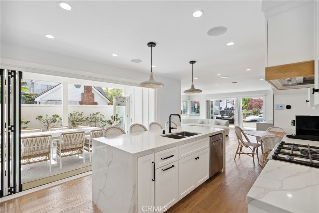 Outstanding Balboa Island 3 bedroom, 3 bath corner cottage, extensively remodeled in 2021, at an excellent location a few blocks from the village center. The beautiful, bright first floor provides a large great room with fireplace; chefs' kitchen with quartz counters, Bertazzoni range, Dacor ovens, dishwasher & refrigerator, and a bedroom suite. There is also a spacious front patio and a side patio with substantial dining space; both patios open with smooth bi-fold door systems. The second level showcases 2 more bedrooms with vaulted ceilings including a deluxe primary suite and a guest bedroom with its own balcony. The home also provides oak floors throughout, AC, laundry room, and garage. Explore the best of Balboa Island in this wonderful home! Note: Rent of $24,000 per month is for the "high season." "Off-season" is $18,000 per month.