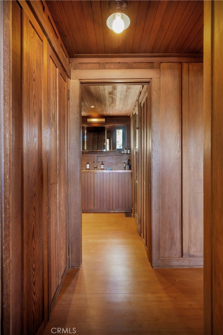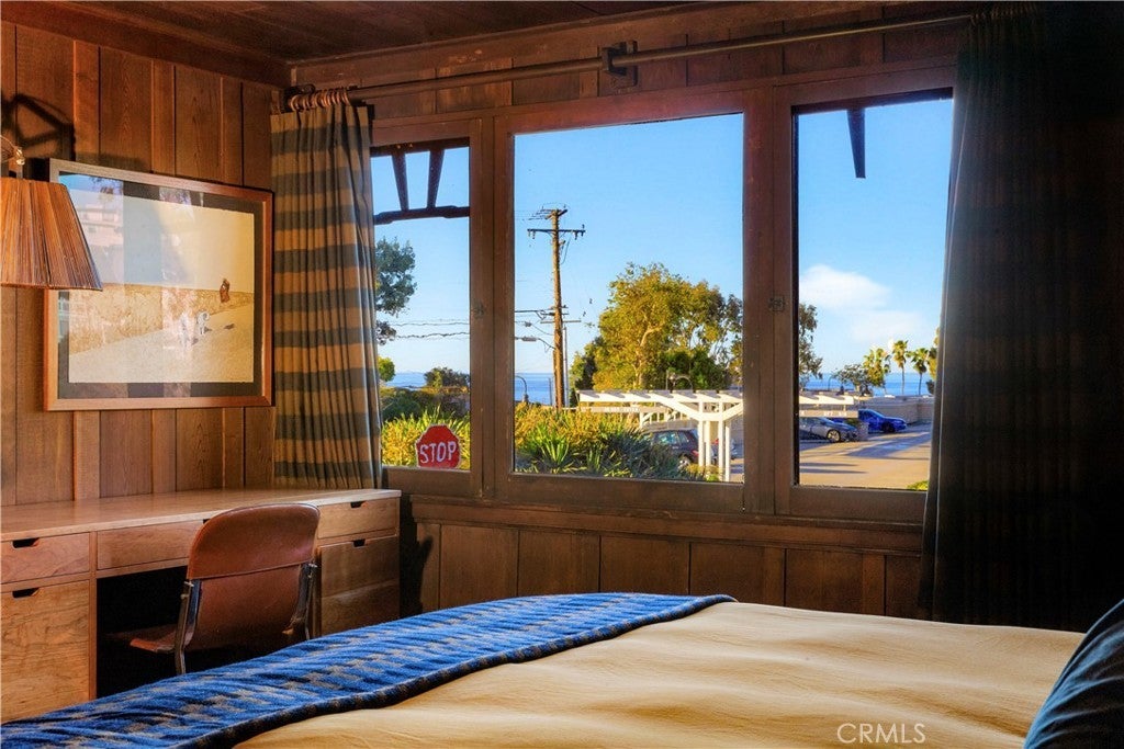 This Craftsman cottage in Laguna Beach is a rare historical gem with preserved character and modern refinements. Registered under the beneficial Mills Act, the home - originally built in 1917 and cherished by a lineage of creatives - has been meticulously restored to highlight its authentic redwood walls and original Douglas fir flooring, seamlessly blending history with contemporary comforts. Inside, thoughtful upgrades maintain the home’s rich heritage while infusing artistic influences. A vintage Noguchi lantern graces the living space, while a tatami mat and antique Japanese wood boxes add subtle nods to timeless design. The kitchen and bath feature hand-patinated copper finishes, and a teal handmade tile fireplace surround pays homage to classic Batchelder craftsmanship. While the home's historical designation ensures its architectural integrity, modern enhancements maximize livability. Custom shoji-style shutters provide an elegant solution for privacy, and restored pocket doors create a seamless flow throughout. The property’s charm and provenance, coupled with its carefully curated interiors, offer a serene retreat just moments from Laguna’s pristine beaches, art galleries, and vibrant cultural scene.
