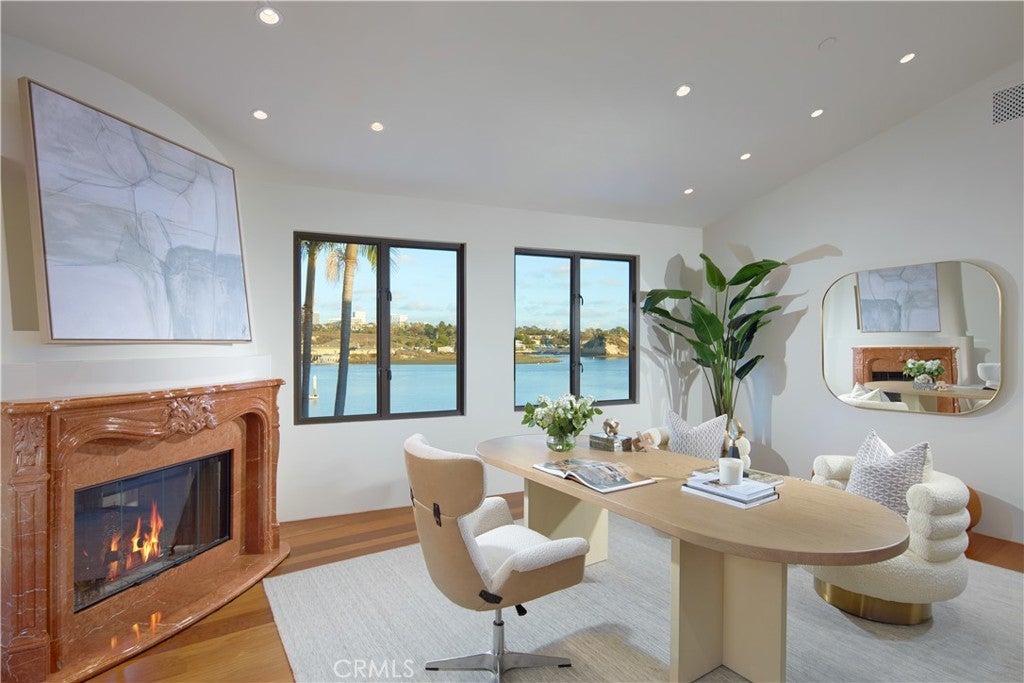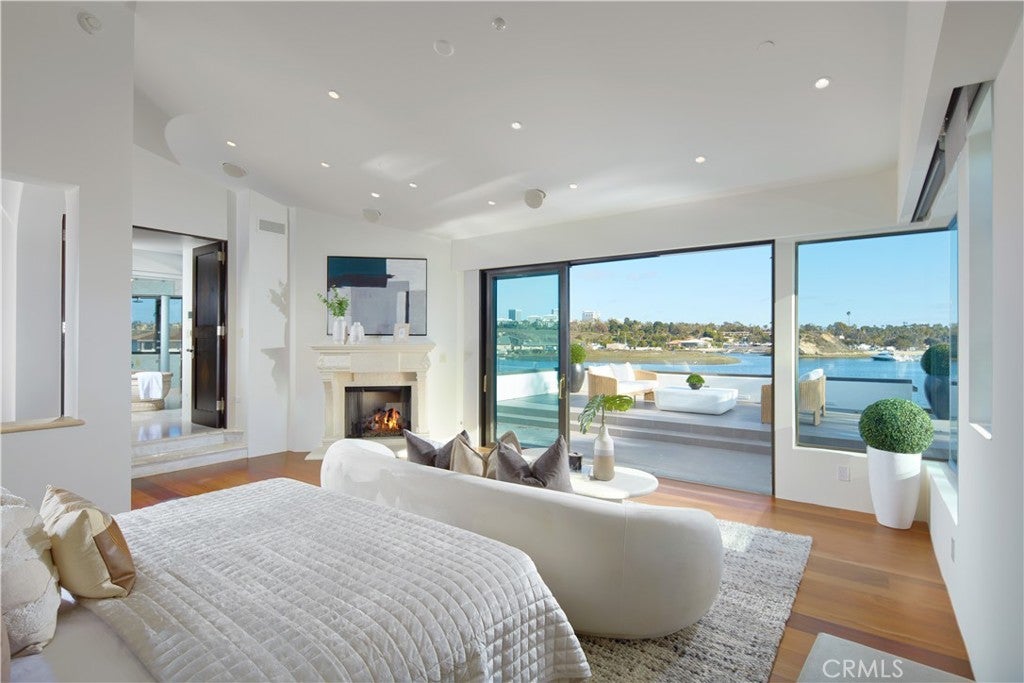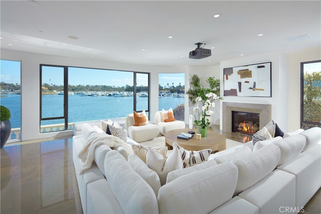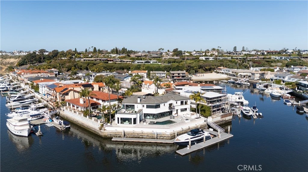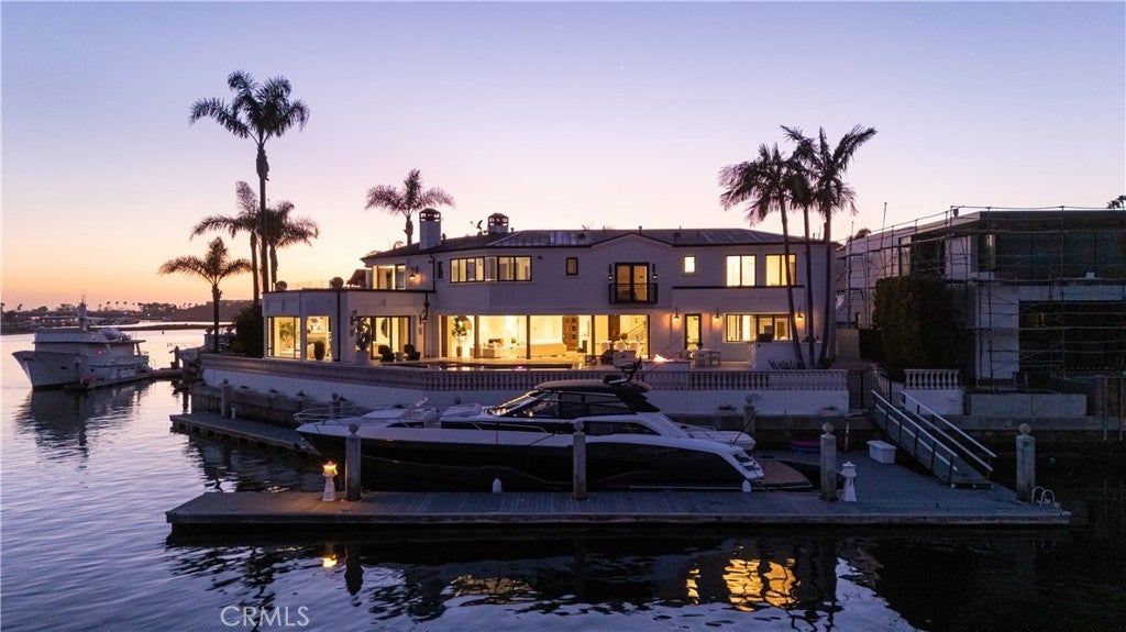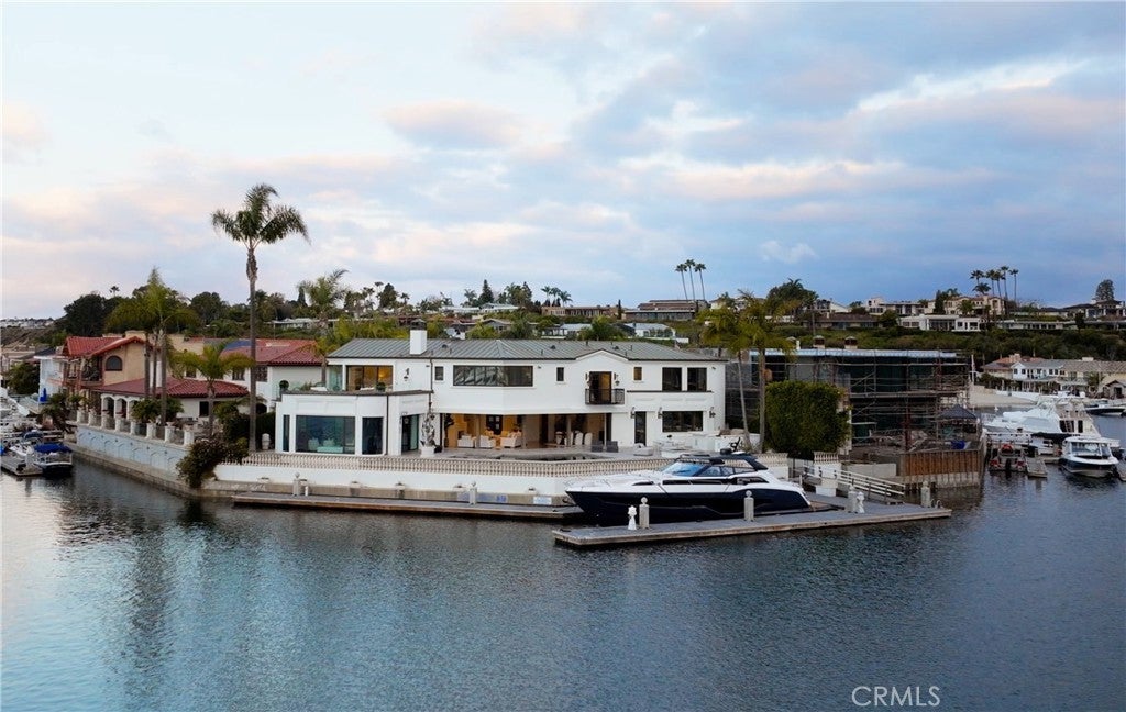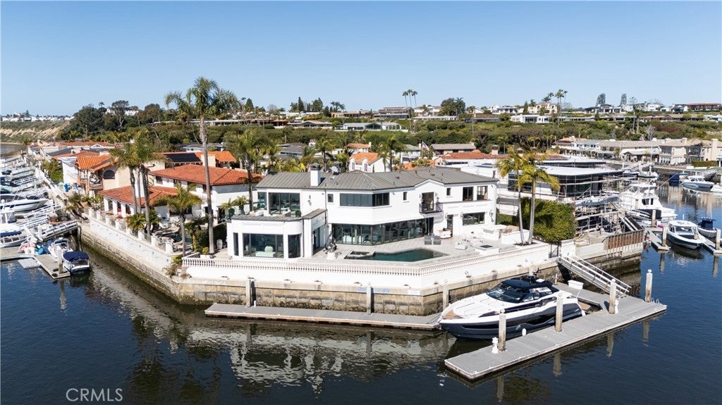 Showcasing approximately 148 feet of prime bay frontage from its exceptional end-of-cul-de-sac location in Newport Beach’s prestigious Dover Shores, this extravagant custom estate elevates waterfront living. A private dock that can accommodate multiple vessels is one of the countless luxurious that are revealed at the European-style villa, which is set behind gates and hosts five en suite bedrooms and six-and-one-half baths. Approximately 6,601 square feet, the opulent residence impresses upon arrival with an open-concept main level that frames views through extensive walls of telescoping glass doors, bringing bay, marina and city-light views into living areas of genuine distinction. The living, dining, and family rooms open directly to a massive waterfront terrace with a resort-caliber pool and spa, open-air fireplace, and an outdoor kitchen with grill and bar. Bay views continue in the kitchen, which hosts an island with waterfall edges, a pass-thru to the terrace, solid stone sink, walk-in pantry, Miele coffee station, wine fridge, and a gorgeous Lacanche range with pot filler. Three bedrooms and an office are located on this level, which also features a two-vehicle garage with two lifts accommodating up to four vehicles. An elegant circular staircase leads to the second level, where a rotunda opens to a romantic Juliet balcony overlooking the entry courtyard. A plush theater with enormous screen and wet bar, a fireplace-warmed office, and an exercise room join a secondary suite upstairs. The primary suite reveals an entrance with two hand-carved doors and a cross-loin ceiling, and a vaulted ceiling soars over the bedroom. Enjoy a fireplace, deck with panoramic bay and city views, two boutique-inspired walk-in closets, a solid stone freestanding tub, oversized multi-head steam shower, sit-down vanity and two sinks overlooking the bay. Additional highlights include lighting and alarm systems, custom shades, and built-in audio. Your desirable address in Dover Shores places you merely moments from community parks, Back Bay trails and the Newport Aquatic Center. Westcliff Plaza, Fashion Island, and miles of beaches are minutes from home, and a variety of award-winning public and private schools serve all grade levels. Rarely available, this extraordinary estate offers the unparalleled waterfront lifestyle you’ve been seeking.