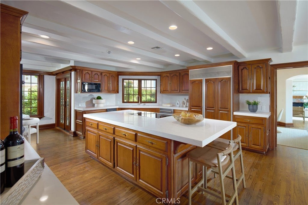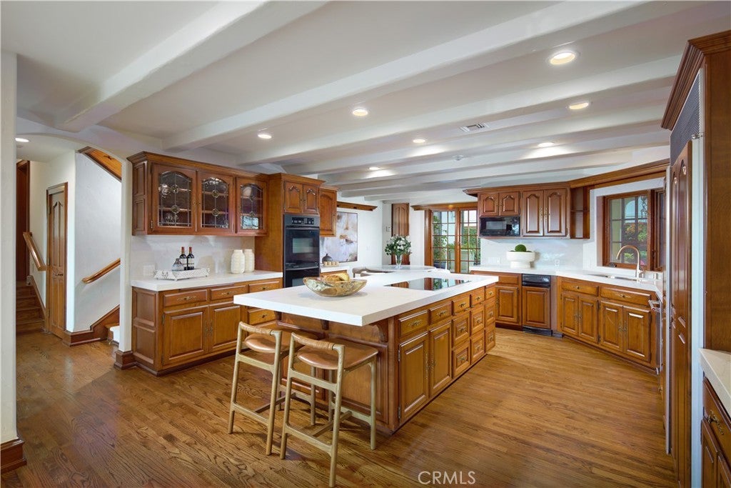 Primary Suite, Balcony, Beamed Ceilings, Bedroom on Main Level, Breakfast Area, Built-in Features, Crown Molding, Eat-in Kitchen, Multiple Staircases, Quartz Counters, Recessed Lighting, Separate/Formal Dining Room, Stone Counters, Tile Counters, Walk-In Closet(s)