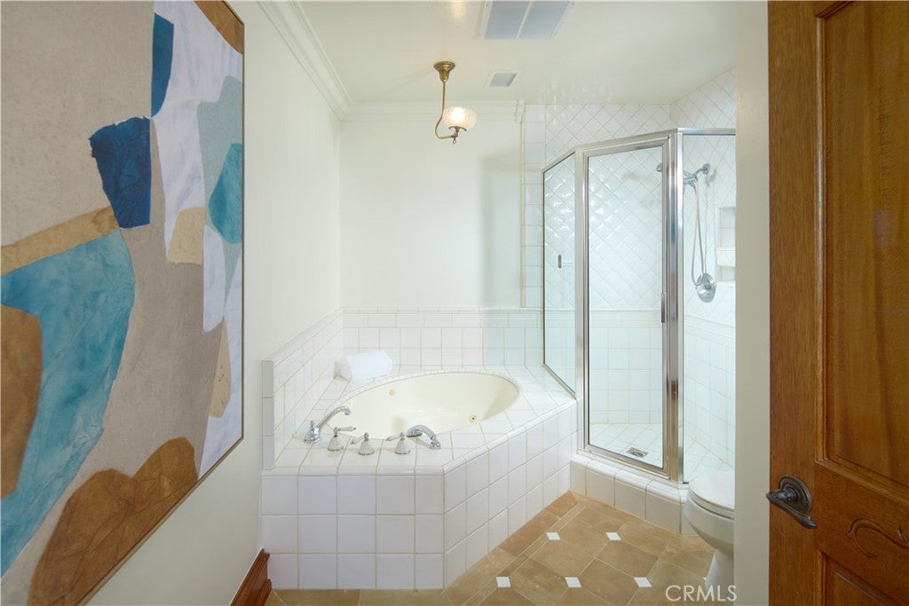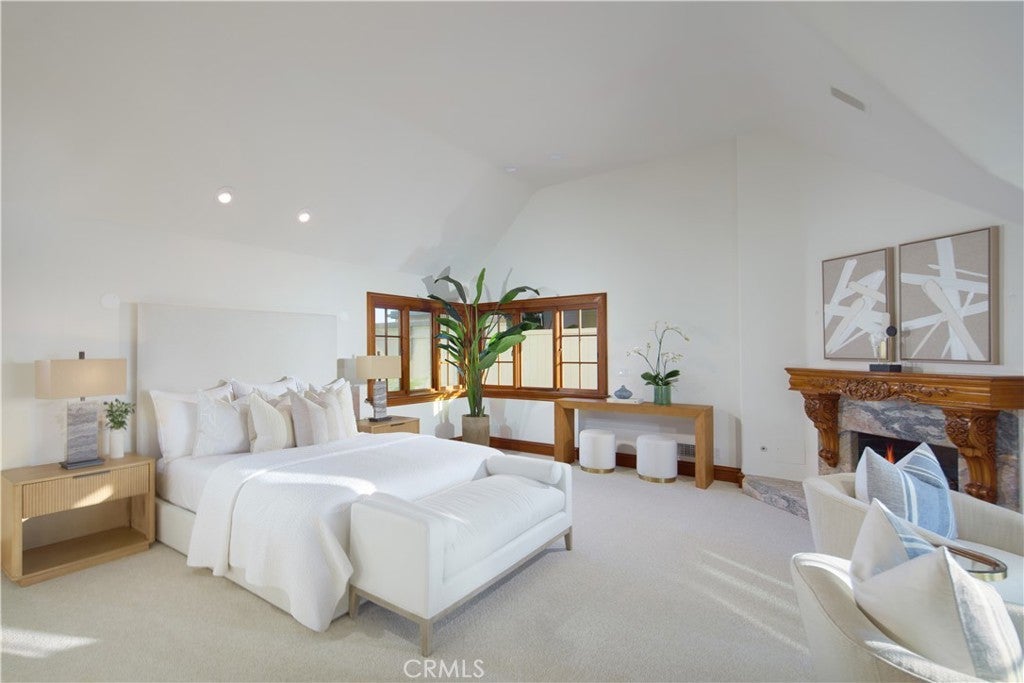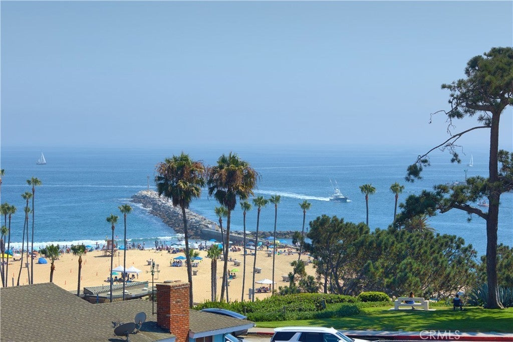 Boasting charm, a prime location, and stunning views, this coastal gem by renowned architect Brion Jeannette is available for the first time and offers an unparalleled living experience in the heart of Corona del Mar with 96' of west-facing frontage. Designed to capture uninterrupted vistas of the Pacific Ocean, Catalina Island, Peninsula, city lights, and Newport Harbor Jetty, this French Country-style cottage is situated on a unique 65' deep corner lot, spanning across two combined lots-- which cannot be duplicated today. Spanning approximately 4,770 square feet, the sun-filled interiors feature four bedrooms and three-and-a-half bathrooms. A charming living room, warmed by a wood-burning fireplace, seamlessly flows into a formal dining area. Adjacent, is a secondary living room where a garden window bathes the brick-surround fireplace in natural light. This inviting space opens to a delightful kitchen, complete with a sunny breakfast nook, an island, wood cabinetry, and new quartz countertops. The main level is rounded out by a powder room and an en suite bedroom offering a jacuzzi tub. Throughout the home, you'll discover character in every corner—antique leaded glass, beamed ceilings, wood flooring, new carpeting, and crown molding. Wood-framed doors open to a rare, beautifully landscaped backyard with multiple patios and a barbecue area, offering effortless grand-scale entertaining in a serene setting where ocean breezes and tranquility converge. Upstairs, three bedrooms await, including the sumptuous primary suite. This retreat offers an ocean and city lights view balcony, cozy fireplace, oversized marble walk-in shower, jacuzzi tub, marble vanity area with dual sinks, and a bonus room that could serve as an exercise space. Down the hallway, a private office with built-in shelving and another bonus room with an en suite full bath provide versatile spaces for work or leisure. Atop the home, the rooftop deck offers breathtaking views of the world-famous surfing spot, "The Wedge," where waves reach captivating heights. An oversized two-car garage with laundry completes the home. With panoramic views spanning the ocean horizon, Catalina Island, and Newport Harbor, this residence is perfectly positioned to appreciate Newport Beach and Corona del Mar's most iconic sights. All this, while being just moments from renowned beaches, Lido Marina Village, and John Wayne Airport.