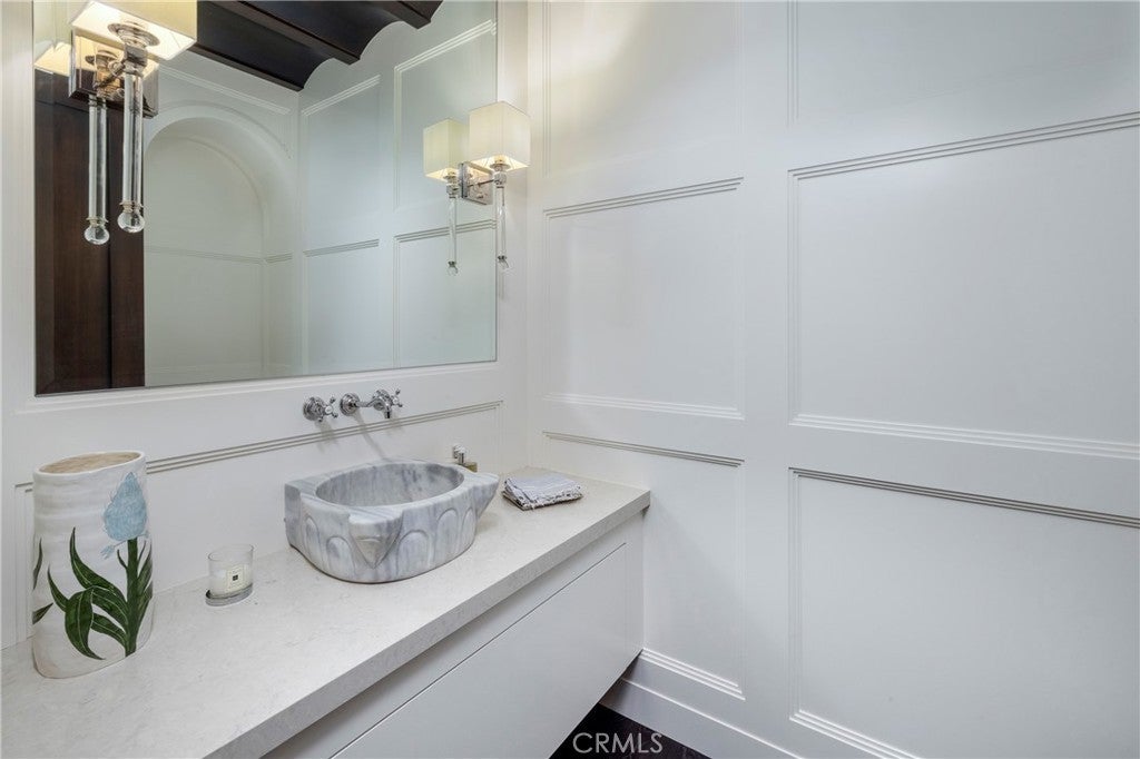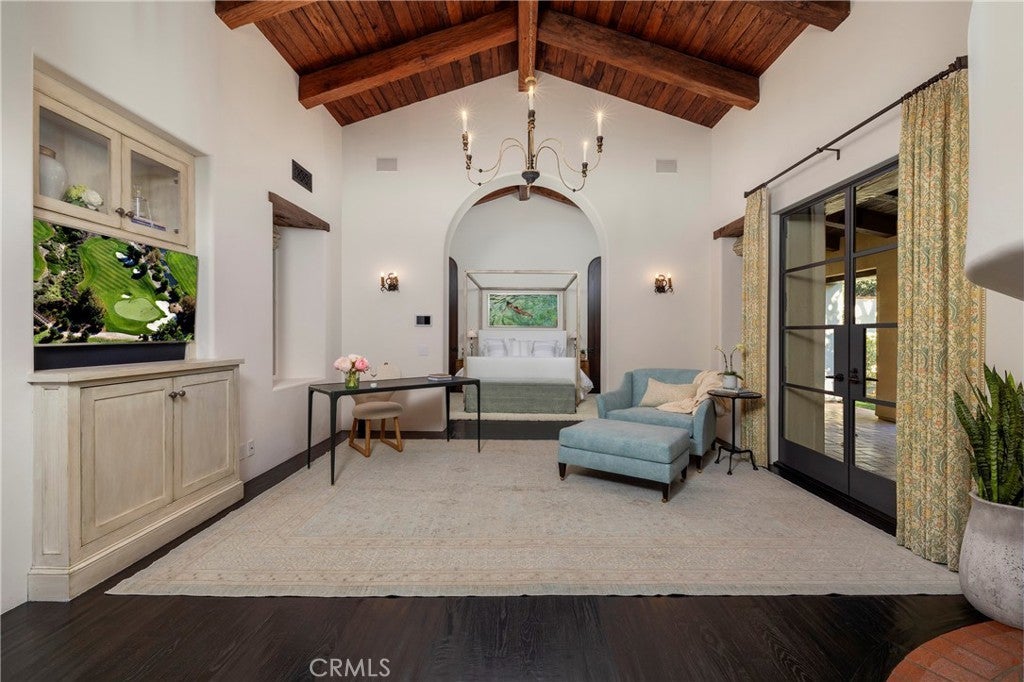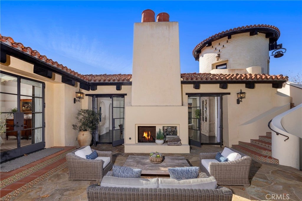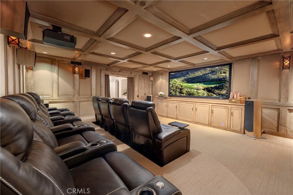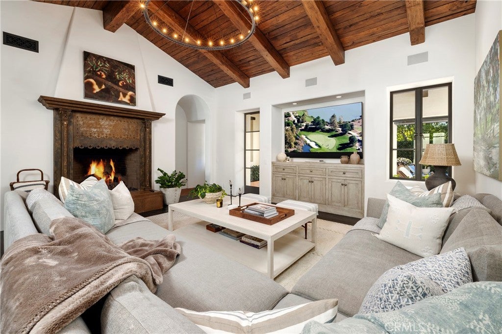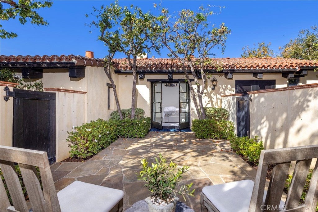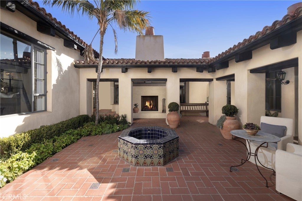 Nestled on a prestigious corner lot in Shady Canyon, this reimagined Spanish Colonial masterpiece blends architectural grandeur with refined contemporary living. Designed as a single-level estate with a remarkable subterranean retreat, the home seamlessly integrates luminous interiors with enchanting outdoor spaces. A dramatic rotunda foyer leads to exquisite living areas adorned with Carrera marble, artisanal wall treatments, intricate tilework, and stately beamed ceilings. Expansive steel-framed windows and French doors flood the interiors with natural light, connecting to intimate courtyards and terraces. The formal living room, warmed by a fireplace and sophisticated bar niche, flows effortlessly into the dining room, which opens to a serene courtyard and private terrace with a catering kitchen and barbecue. The chef’s kitchen boasts soaring ceilings, antique herringbone brick flooring, a Wolf range, and a Sub-Zero glass-door refrigerator, connecting seamlessly to a sunlit family room and breakfast nook. The primary suite offers a private loggia, lush gardens, and dual spa-inspired baths. A separate wing features two en-suite bedrooms with secluded courtyards. The subterranean level is an entertainer’s dream with a game room, home theater, guest suite, and extensive wine cellar with a tasting salon. Outdoors, a pristine pool, sun-drenched terrace, second catering kitchen, and barbecue pavilion create a private oasis. Additional highlights include a refined office, spacious laundry room, state-of-the-art home gym, and three-car garage. Residents enjoy world-class amenities and 24-hour guard-gated security, embodying the quintessential California lifestyle.