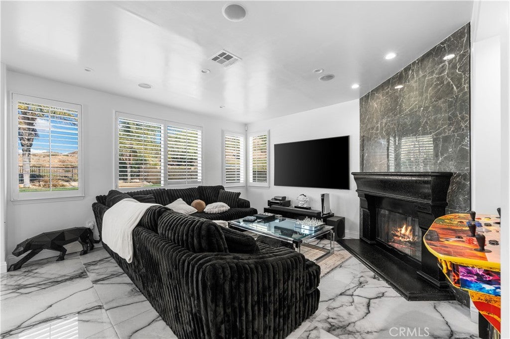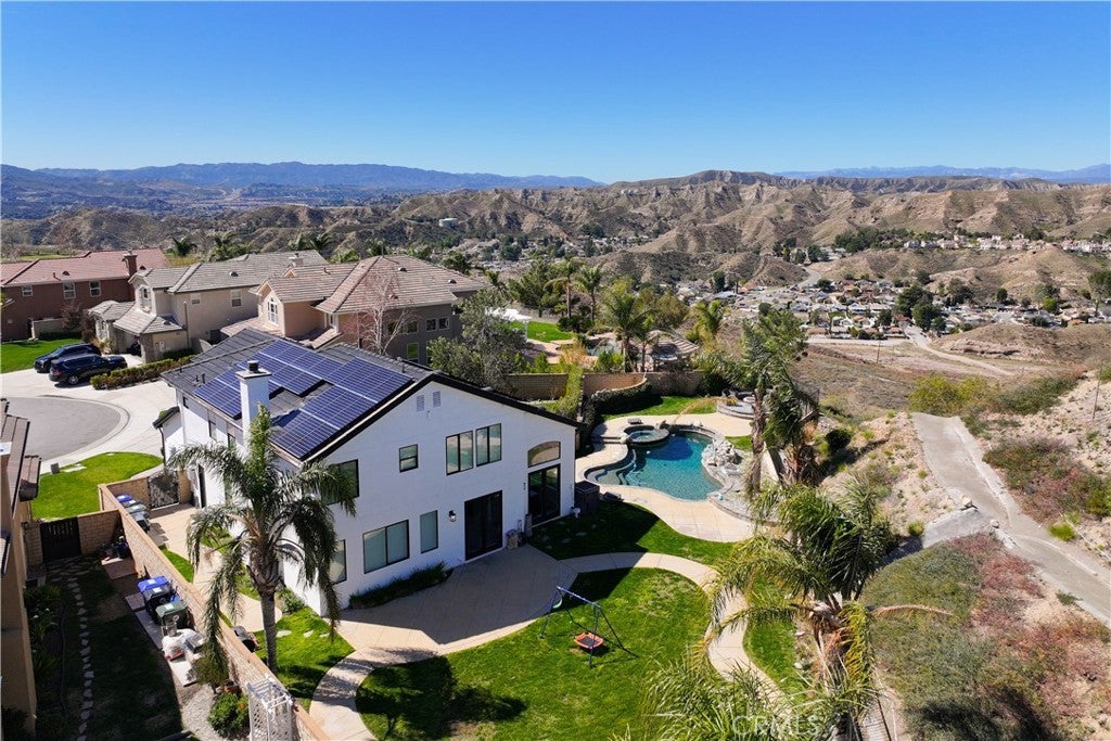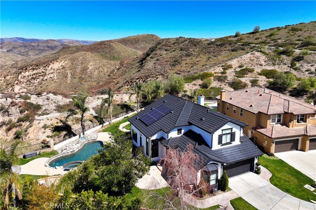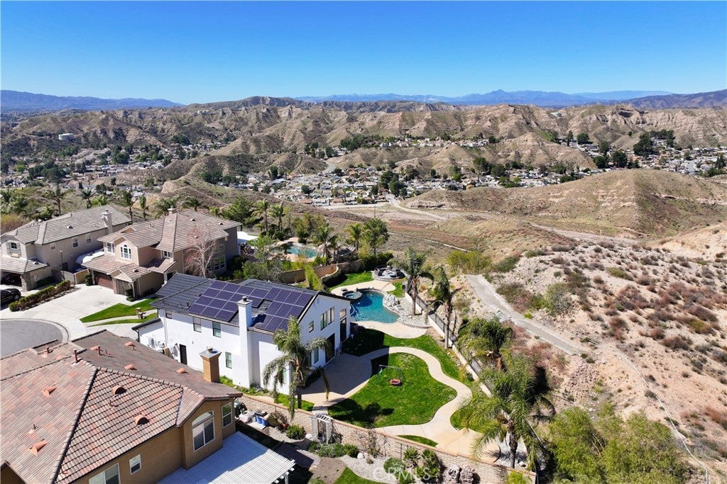 Located in the serene cul-de-sac of Canyon Country, California, 29799 Mammoth Lane offers a spacious and private living experience. This executive home features 5 bedrooms and 3 bathrooms within its expansive 2,770 square feet of living space. Situated on nearly 2 acres of land, the property boasts a professionally landscaped and hardscaped yard with breathtaking mountain views. A welcoming courtyard enhances the home's curb appeal, providing a private retreat for residents. The open floor plan includes a spacious living room with high ceilings and abundant natural light, complemented by a cozy fireplace.