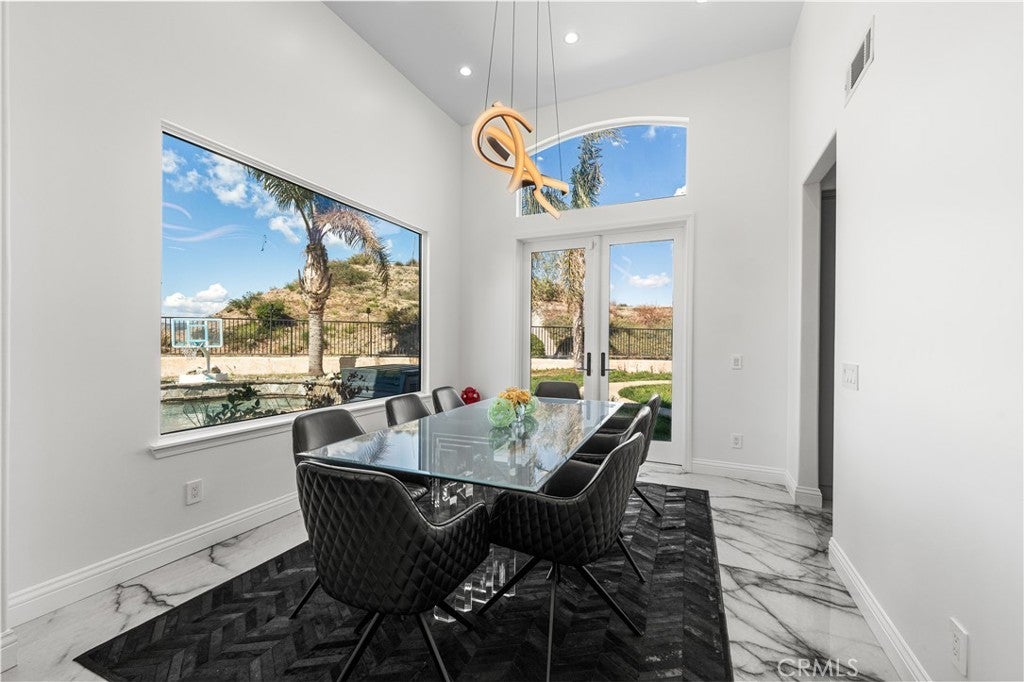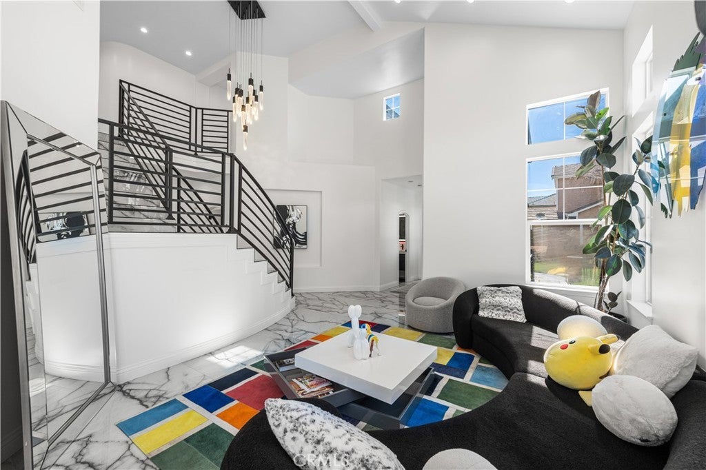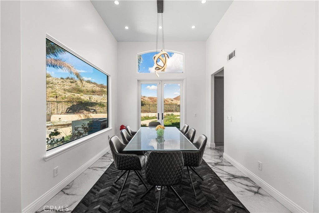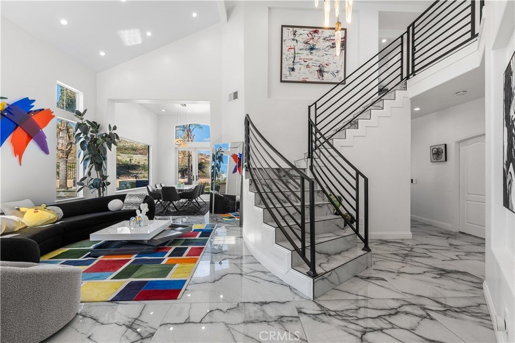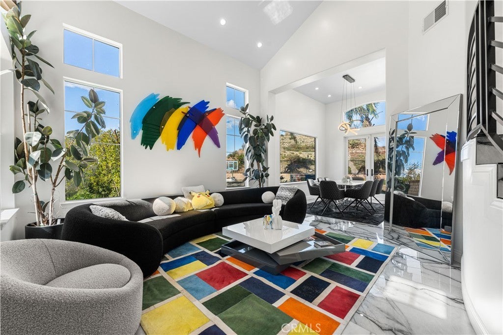 Located in the serene cul-de-sac of Canyon Country, California, 29799 Mammoth Lane offers a spacious and private living experience. This executive home features 5 bedrooms and 3 bathrooms within its expansive 2,770 square feet of living space. Situated on nearly 2 acres of land, the property boasts a professionally landscaped and hardscaped yard with breathtaking mountain views. A welcoming courtyard enhances the home's curb appeal, providing a private retreat for residents. The open floor plan includes a spacious living room with high ceilings and abundant natural light, complemented by a cozy fireplace.