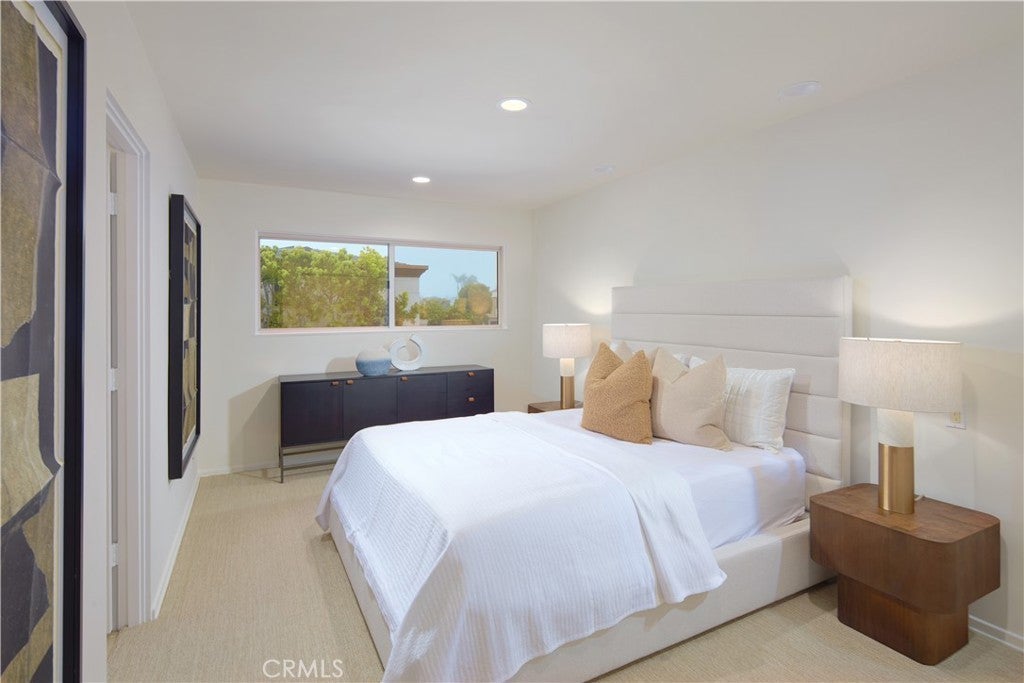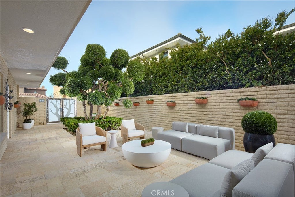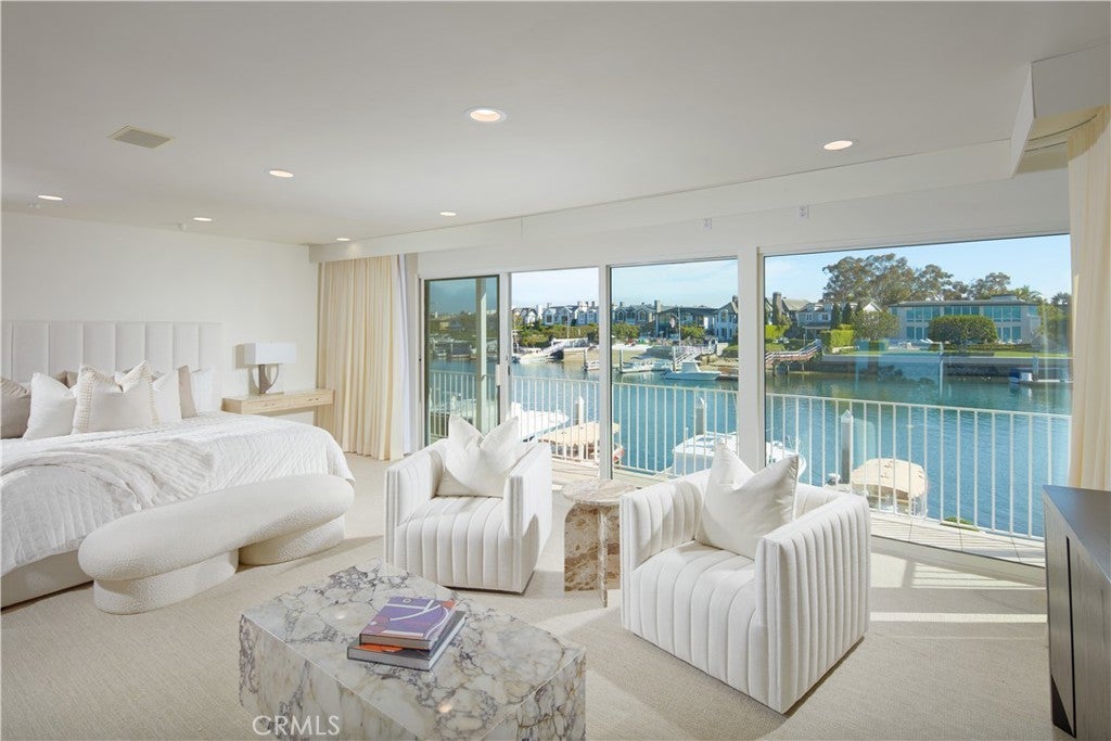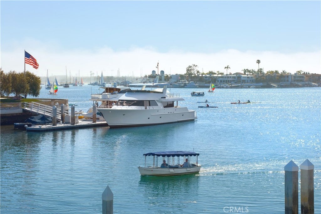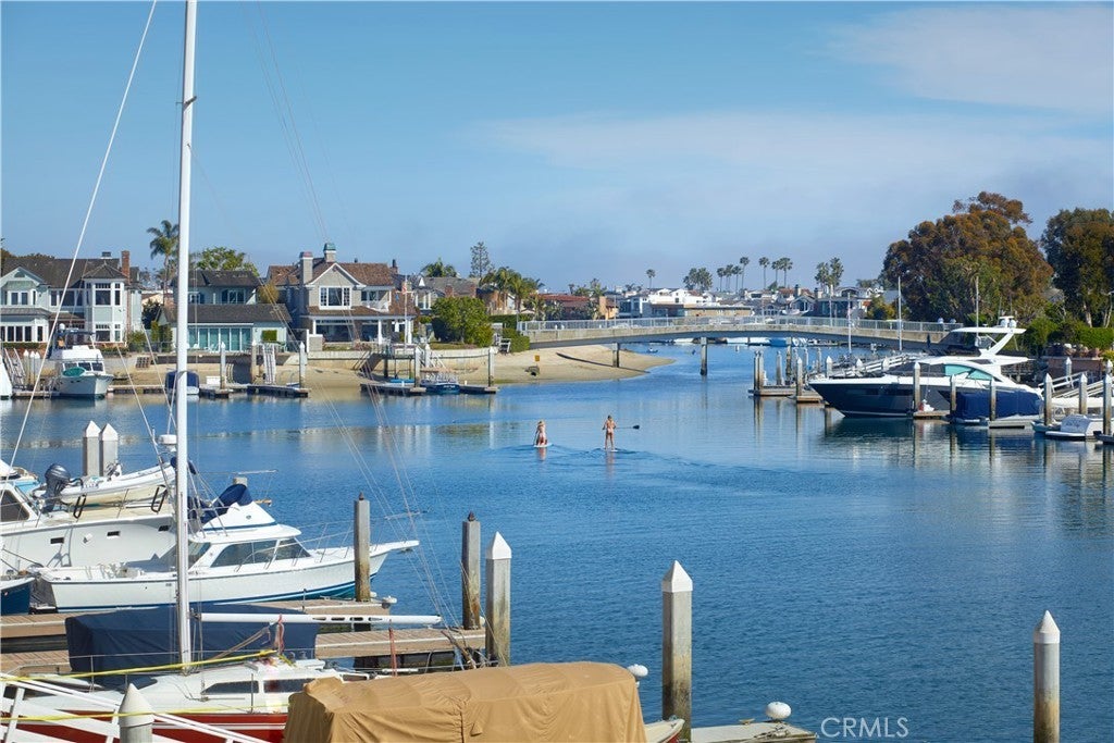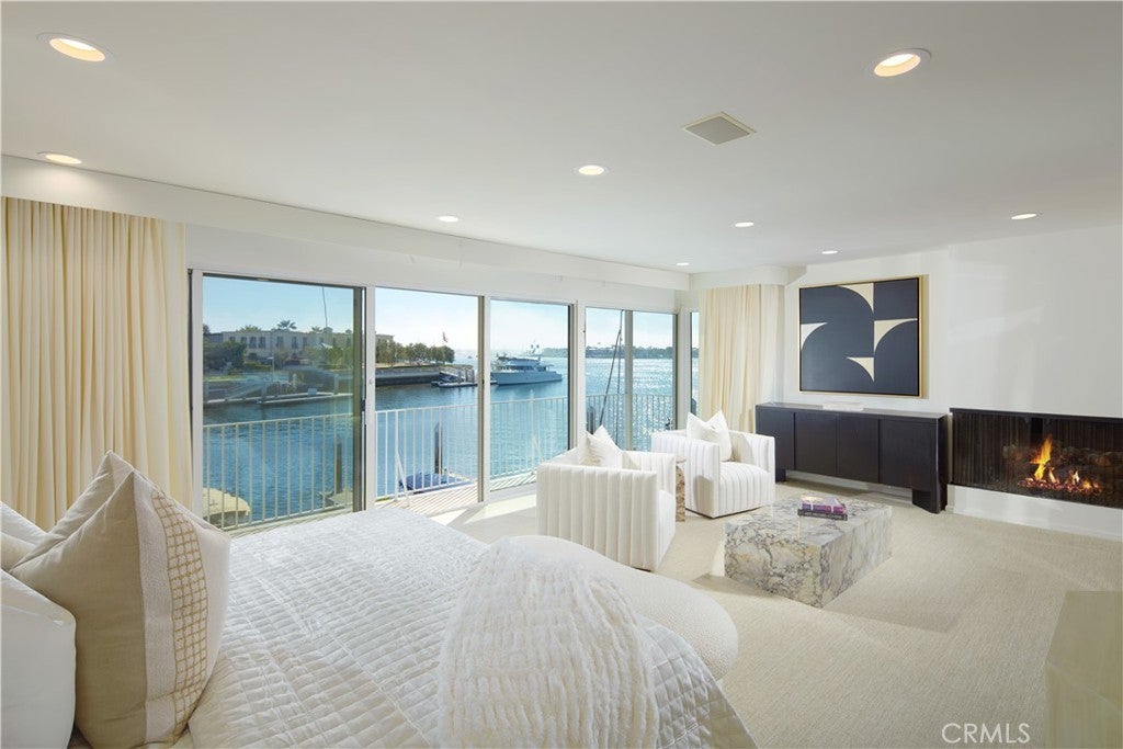 The ultimate expression of Newport Beach’s enviable waterfront lifestyle awaits at this classic Mid-Century Modern custom home on guard-gated Linda Isle. With a location on the exclusive island’s preferred western edge, the residence offers magnificent views of Newport Harbor, evening lights, sunsets, and sailboats and yachts that gently glide by. A bayfront terrace includes a private dock for a vessel up to appx. 57’ and provides an outstanding location for impressive entertaining along the water’s edge. Boasting eight spacious bedrooms and seven-and-one-half baths, the generously proportioned home offers an equally welcoming introduction thanks to custom artist-crafted metal and glass gates that open to a large entry courtyard. Grand modern style continues indoors, where a two-story foyer is anchored by a stunning spiral staircase that appears to float on its own while illuminated by floor-to-ceiling windows. Harbor views are enjoyed upon entry to the open and bright residence, which spans approximately 4,598 square feet. Water-view entertaining is destined to be enjoyed in a fireplace-warmed living room and dining room area that opens to the bayside terrace and hosts a step-down walk-in wet bar with wine refrigerator and new quartz countertops. Brand-new quartz also graces the counters and backsplash in a large kitchen that displays frameless white cabinetry, a nook, peninsula bar, two four-burner cooktops, and a built-in Sub-Zero refrigerator. Two en suite bedrooms are located on this level and include one that is perfect as a home office. A large landing at the top of the staircase leads to six more bedrooms, including two that share a bath, an en suite with balcony overlooking the courtyard, and an en suite with spacious bath and harbor-view balcony. The primary suite is enormous and features double entry doors, an intimate lounge, private bath, fireplace-warmed sitting area, and priceless bay views from indoors and a wide balcony above the rear terrace.