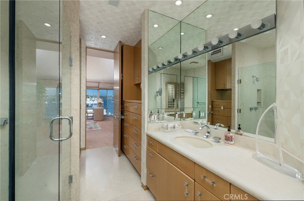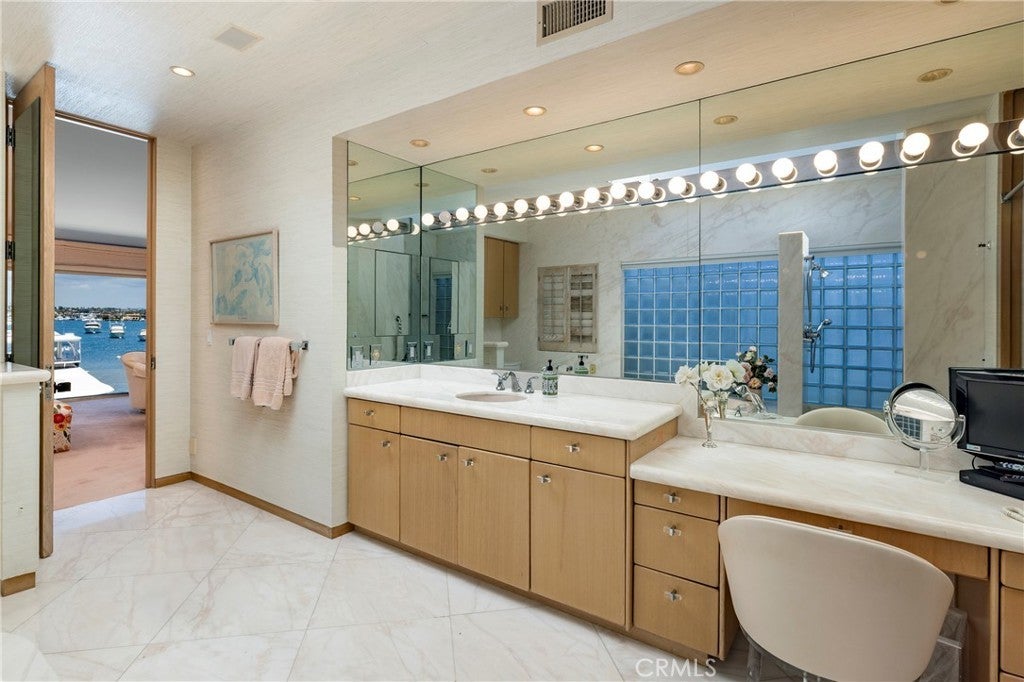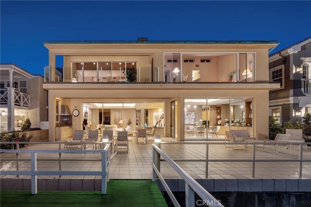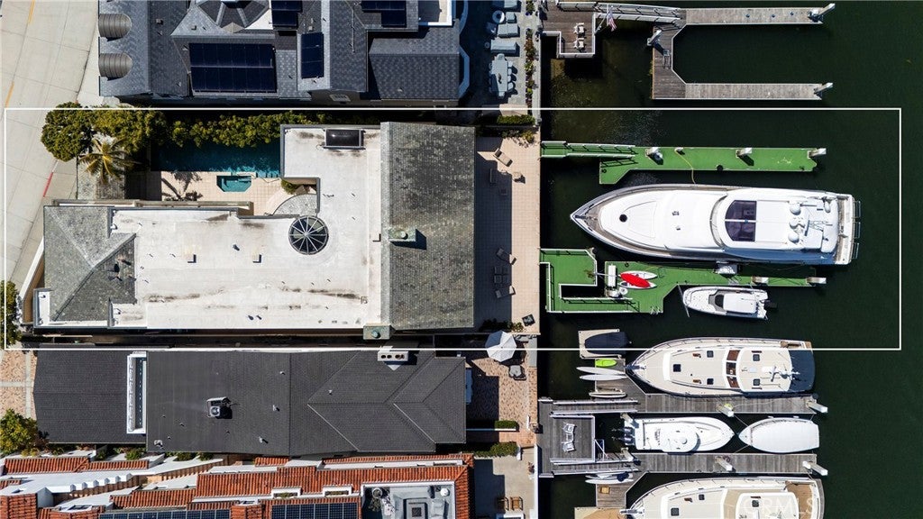 Rare Double-Lot Bayfront Opportunity in Newport Harbor. A truly once-in-a-lifetime offering, this custom-built bayfront estate sits on a rare double lot in one of Newport Harbor’s most coveted locations. Showcasing nearly 60 feet of bay frontage, the property commands sweeping views of the turning basin, city lights, Fashion Island, and the surrounding mountains—an ever-changing backdrop of Southern California beauty. Designed ahead of its time, the residence welcomes you through a dramatic gated entry featuring a tranquil pool, spa, and waterfall. Double glass doors open to reveal soaring ceilings and expansive living spaces that exude coastal sophistication. The grand living room with fireplace, sit-down bar, and formal dining area is ideal for effortless entertaining. The gourmet's kitchen is a dream, featuring sleek black granite countertops, custom cabinetry, a center island with a gas range, breakfast nook, built-in desk, and side-by-side Sub-Zero refrigerator and freezer. The main level also offers a private office or den, guest bedroom and bath, maid’s quarters, and an oversized three-car garage. A sweeping staircase—or private elevator—leads to the upper level, where the primary suite offers bayfront views, a fireplace, dual bathrooms, and custom walk-in closets. An oversized guest suite features a private covered balcony to enjoy the views, a walk-in closet, and an en-suite bath. Three additional en-suite bedrooms complete the upper floor. Outdoor living is effortless with both sun-soaked and covered patio areas along the bayfront. The private dock accommodates an 80-foot vessel, with additional space for a whaler on the side tie. This is a rare chance to own one of Newport’s landmark bayfront properties—an extraordinary blend of space, location, and timeless design.