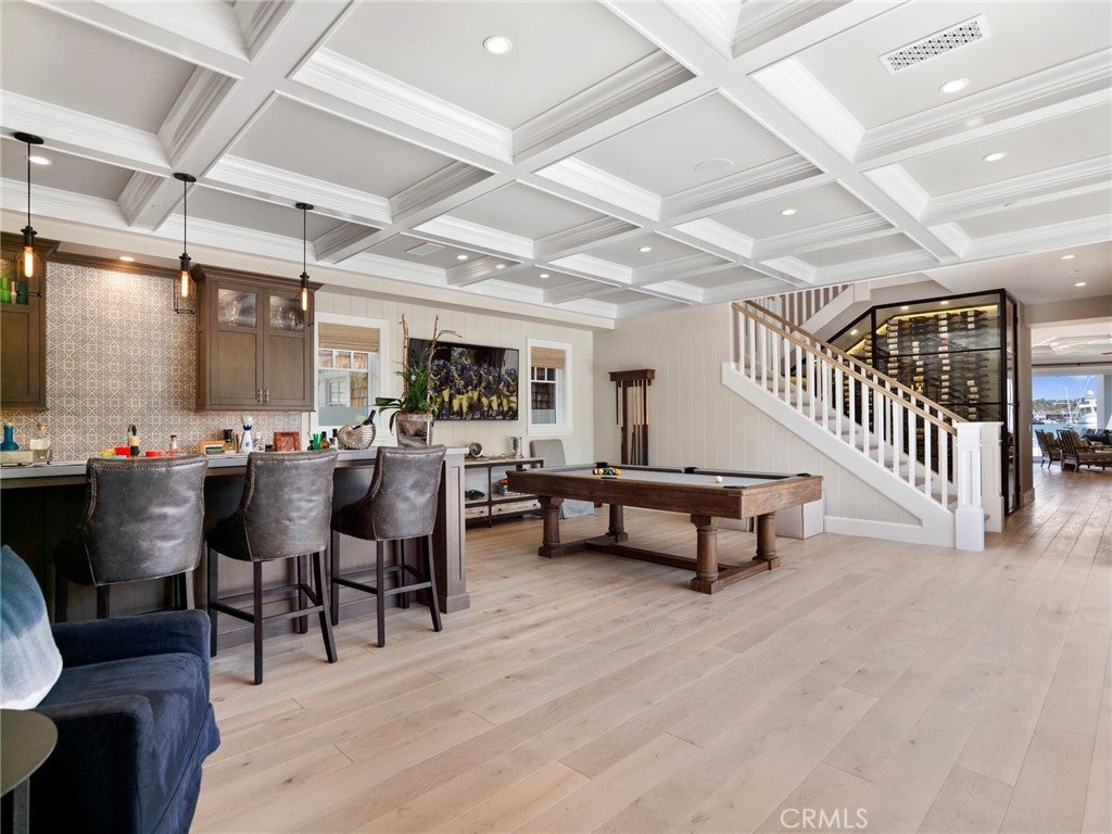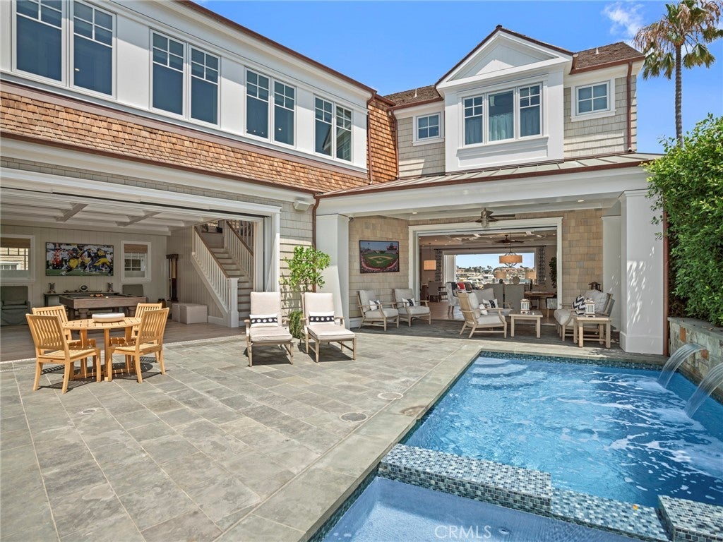 Exquisite panoramic sapphire views are on display from almost every room in this idyllic coastal home. Custom designed by Brandon Architects and completed in 2017 by premier homebuilder Spinnaker Development, this immaculate property has a spacious open floor plan, clean lines, and modern amenities. The luxury residence has a soothing neutral palette of colors and custom finishes throughout, including: a walk-in wine room highlighted with glass walls; custom cabinetry; coffered ceilings; an expansive laundry room with built-in dog bath; and beautiful stone, marble and tile work. The opulent primary suite with balcony has a prominent location highlighting sweeping views of the bay and the peaceful morning sunrise. Three additional oversized bedroom suites, an office, and an attached four-car garage provide spacious accommodations for daily living, while an interior courtyard with a private pool, spa, and water feature, an adjacent billiard or bonus room with a wet bar, a chef’s kitchen, and a great room opening to a loggia on the sand, all provide the ideal backdrop for relaxing with family and friends. Disappearing doors open up the entire first floor of the home to the interior courtyard and the beach. This exceptional Cape Cod inspired home sits on one of the largest bayfront lots on Peninsula Point at 7,424 square feet, a corner lot approximately three times the standard bayfront lot, and has only one neighbor to the west. Its expansive private bay beach and dock fronts the largest width of Newport Bay, providing premium views of summer yacht club races through the harbor and the annual holiday boat parade, as well as ample space to sink your toes in the sand, cool off with a quick dip in the bay, take out a paddleboard, or sail away the day. The dock is approved for up to a 55 foot boat. This is a tremendous opportunity to enjoy the finest in bayfront living and the coveted Newport Beach lifestyle in close proximity to Balboa Village, luxury retail, fine dining, and world-class beaches.