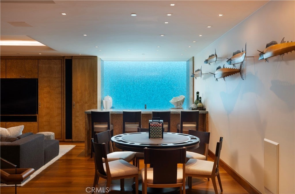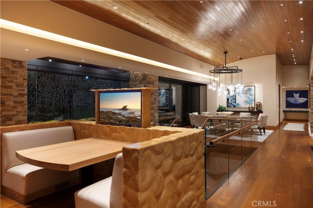 Set front row in Irvine Cove—Laguna Beach’s most exclusive and under-the-radar oceanfront community—2526 Riviera Drive is a rare architectural estate with panoramic views and total privacy. Designed by Leason Pomeroy, the home opens to the Pacific with walls of glass and a horizon-level infinity pool, blurring the line between indoors and out. Rich materials, custom built-ins, and sculptural elements elevate every space, while refined details like a Crestron automation system and an olive burl breakfast nook—with a pop-up TV and a vertical structure that continues elegantly to the level below—reflect the depth of design. The lower level offers a private lounge, game area, guest space, and flexible living—all connected by a custom floating staircase and elevator. An oversized garage completes the home’s rare blend of form, function, and front-row living. Homes in Irvine Cove rarely become available. Properties like this—almost never.