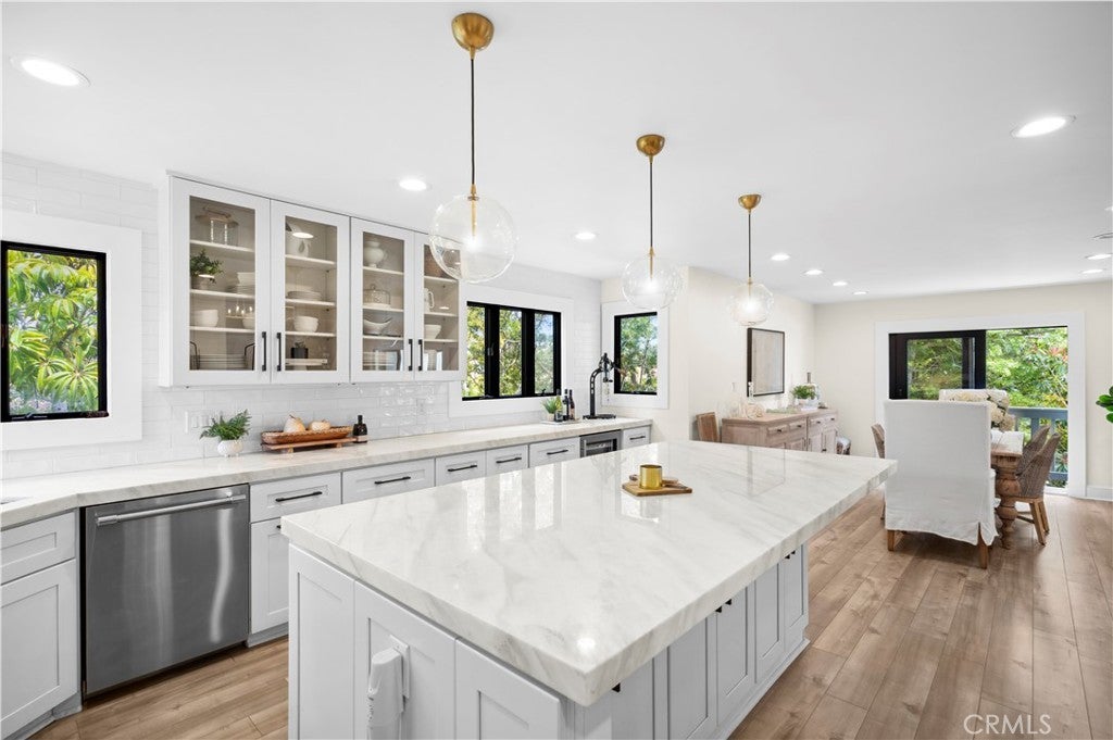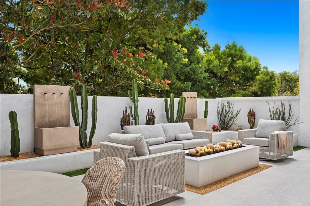 Stunningly remodeled 3-bedroom residence, ideally situated at the end of a quiet street in the highly sought-after guard-gated community of Jasmine Creek. A dramatic front yard with tranquil water feature sets the tone for the thoughtfully curated interiors – that articulate elevated finishes and design elements throughout. An open floor plan is enhanced by organic lighting, soaring ceilings, light hardwoord flooring, and shaker-paneled walls throughout. The expansive living room features soaring ceilings, a sleek linear fireplace, and an oversized hearth providing additional integrated seating. Floor-to-ceiling wine racks add architectural interest, while the gourmet kitchen is outfitted with sprawling counters, premier appliances, custom cabinetry, and an oversized center island with seating. Adjacent formal dining room overlooks walls of glass to a generous patio framed by lush neighborhood and ocean views. The primary suite features a statement fireplace set in a stone-paneled wall, a large walk-in closet, and a spa-quality bath with dual vanities, soaking tub, and a seamless glass shower with dual rain heads. Two additional bedrooms are served by a fully updated bathroom showcasing designer tile and curated lighting. The outdoor spaces have been completely reimagined to include a wraparound BBQ station with refrigerator, warming drawer, side burner, prepping and serving counters, built-in firepit, multiple water features, and California-sufficient landscaping. Live the Corona del Mar lifestyle, with close proximity to world-class beaches, local and famed shopping, fine dining, and award-winning schools.