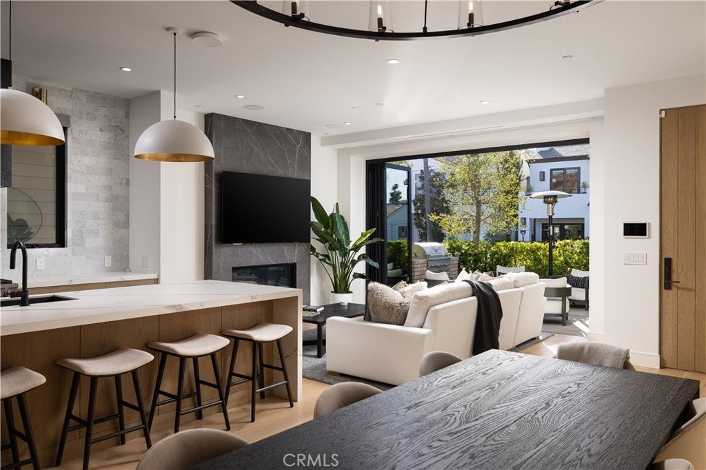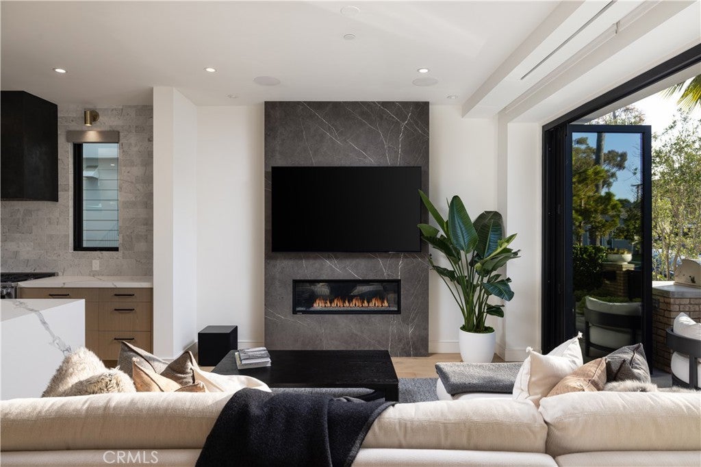 In one of Corona del Mar’s most coveted enclaves, this coastal retreat captures the essence of luxury village living—where curated interiors and seamless indoor-outdoor flow define every space. Completed in 2022, this front-unit residence offers approximately 1,761 square feet of refined living space with three bedrooms and three-and-a-half baths, just four blocks from the beach. A quintessential front patio sets the stage, featuring a built-in BBQ, gas fire pit, and accordion glass doors that open to a warm, inviting great room. Inside, European white oak flooring, abundant natural light, and a statement electric fireplace complete the space with warmth and style. A dedicated dining area connects the living space to a magazine-worthy kitchen, showcasing Miele cooktop and 8-burner range, Liebherr column fridge and freezer, hand-troweled plaster hood, waterfall-edge quartz island, and a striking stone backsplash. Further along, a main-level ensuite bedroom offers flexible use as a guest retreat or home office and opens to a peaceful rear courtyard. Upstairs, the primary suite is a private sanctuary with its own electric fireplace, glass sliding doors to a covered terrace, and a spa-inspired bath complete with dual quartz vanities, soaking tub, and walk-in shower. A secondary ensuite bedroom and full laundry room complete the upper level. Crowning the home, an expansive rooftop deck boasts panoramic views of the ocean, city lights, and iconic palms. Additional highlights include white oak interior doors, custom closet buildouts, Rocky Mountain hardware, and Control4 smart home automation. A one-car attached garage, plus carport, offers exceptional convenience—made even more rare by the privacy of having no homes behind the lot. Just steps from the iconic Goldenrod Footbridge and moments from local cafés, shops, and restaurants, this turnkey home represents a rare opportunity to enjoy the very best of coastal California living.