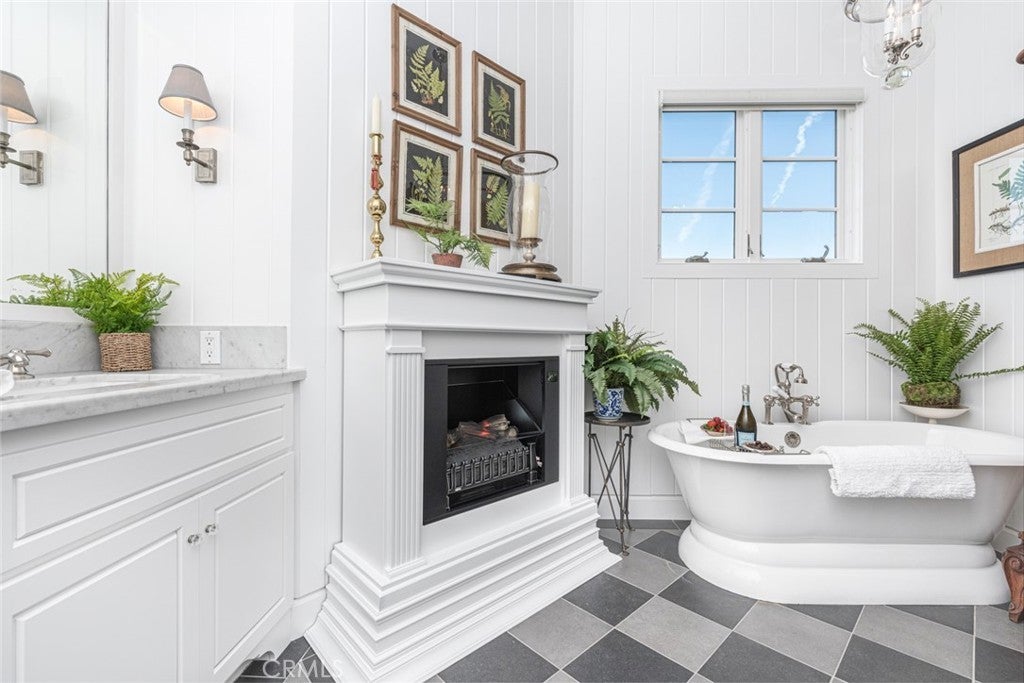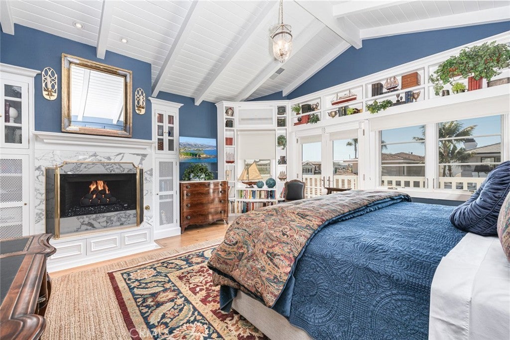 Remodeled in 2024 | 3 En-Suite Bedrooms + Loft/Office | Private Spa Courtyard. Beautifully refreshed in 2024, this coastal-inspired Lido Isle home offers three spacious en-suite bedrooms, each with its own full bath, plus a versatile loft/office, blending timeless design with modern luxury. Ideally positioned on a desirable street-to-street lot, the residence enjoys peek-a-boo bay views, exceptional privacy, and seamless indoor-outdoor living—just steps from a serene bayside park. Two of the bedrooms function as luxurious primary suites—one on each level—each with a walk-in closet and bonus area, ideal for a sitting room, workspace, or reading nook. The upstairs suite features soaring beamed ceilings, a fireplace, private balcony, and a spa-style bath with dual marble vanities, soaking tub, and a generous walk-in shower. The downstairs suite provides ample proportions and the convenience of single-level living. A dedicated upstairs loft/office provides a light-filled retreat perfect for today’s flexible lifestyle. At the center of the home, the kitchen is appointed with premium Viking and SubZero appliances, a Carrara marble island with breakfast bar, casual dining nook, and walk-in pantry. French doors open to a reimagined private courtyard featuring an in-ground spa, lush landscaping, and elegant lounge areas—ideal for entertaining or quiet relaxation. A wet bar with SubZero wine fridge enhances the home’s effortless hospitality. Living and dining areas showcase wood-beamed ceilings, bay windows, and a welcoming fireplace. Additional fireplaces in the upstairs suite and bath add warmth and charm throughout. Located just moments from the Lido Isle Yacht Club, tennis courts, clubhouse, and scenic walking paths, this exceptional home is a rare opportunity to enjoy elevated island living in a newly updated coastal setting.
