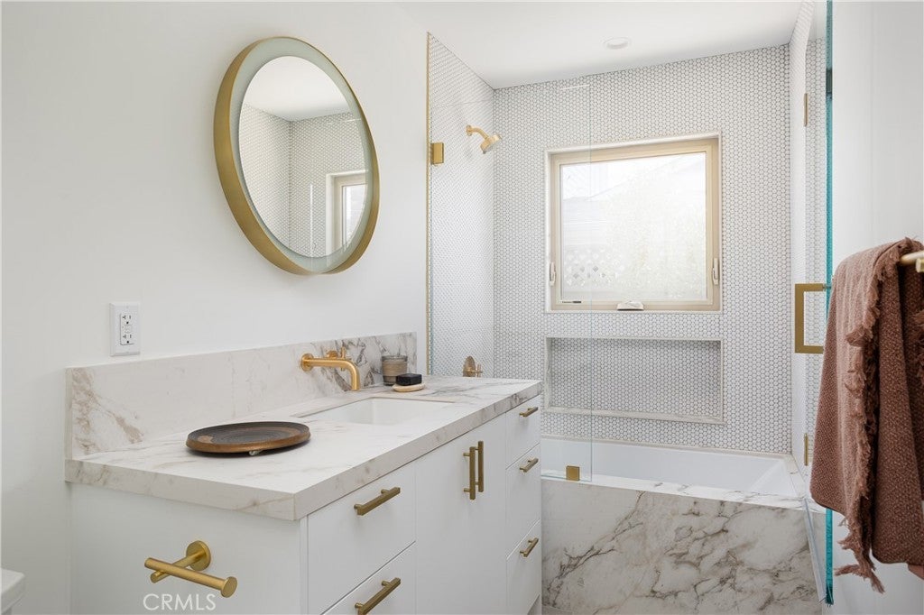 Expertly crafted by local firm Abode Design + Build, known for their thoughtful integration of architecture and interiors, this rare dual-residence property blends timeless coastal style with modern functionality in one of Eastside Costa Mesa’s most coveted neighborhoods. Set on a generously sized 8,000+ sq ft lot, the home offers two completely independent living spaces—ideal for multi-generational living, guest accommodations, or premium rental income. Set behind a gated entry with lush, magazine-worthy landscaping by Orchard Landscaping, the grounds feature extensive new hardscape, a turf block driveway for enhanced curb appeal and drainage, and multiple outdoor areas for entertaining and relaxation. The front residence, a reimagined single-level 3-bedroom, 2-bath home, spans 1,640 sq ft and has been fully remodeled and expanded to create open-concept living with high ceilings and abundant natural light. Large skylights brighten the interior throughout the day, while oversized sliding glass doors create a seamless indoor-outdoor connection. The spacious primary suite includes dual closets and a beautifully appointed bath, offering a true retreat within the home. Built-in speakers provide effortless audio throughout, complementing the all-new appliances, custom cabinetry, and curated finishes. At the rear, a brand-new 2-bedroom, 2-bath ADU (938 sq ft) offers private luxury living with its own entrance, full kitchen, solar panels, and a finished 2-car garage. Like the front unit, it features expansive sliding doors that open to an inviting patio and skylights that fill the interior with light. Built-in speakers and premium materials complete the experience in this high-end, standalone residence. This unique offering delivers flexibility, long-term value, and low-maintenance luxury just minutes from beaches, top schools, restaurants, and retail.