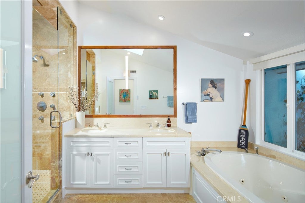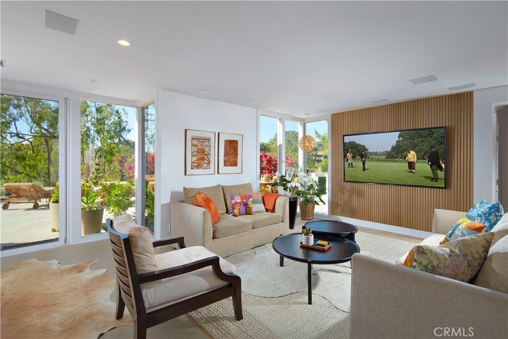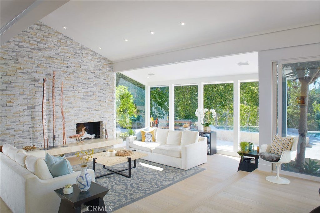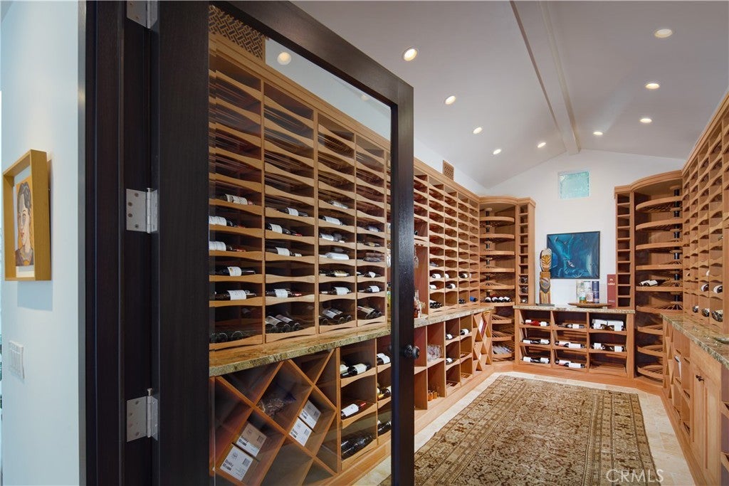 Set within the guard-gated enclave of Big Canyon at the end of a quiet cul-de-sac, this recently remodeled (2025) home impresses with grand proportions and timeless charm. Introduced by a beautifully landscaped front courtyard, the four-bedroom residence offers refined interiors of approximately 4,003 square feet, expansive outdoor spaces, and a coveted position along Big Canyon Country Club’s 6th fairway. Filled with natural light from skylights, the thoughtful floorplan includes a formal sitting room anchored by a stacked-stone fireplace and framed by expansive windows, as well as a separate media lounge. Further along, a glass-enclosed, temperature-controlled 1,800-bottle wine cellar serves as a showpiece for the collector. The chef’s kitchen features Neolith Calacatta Gold countertops, rift white oak cabinetry, 6-burner Wolf range, Sub-Zero Max refrigeration, a Zip Tap for instant boiling/chilled/sparkling water, and a built-in Miele coffee system, flowing seamlessly to both the formal dining area and sprawling backyard. Outside, the setting is designed for year-round entertaining, with an infinity-edge pool and spa, multiple spaces for lounging and dining, and an outdoor kitchen with Viking grill. A tranquil primary suite—complete with a fireplace, dual vanities, walk-in shower, and stone-wrapped soaking tub—occupies the main level along with a private office, two additional ensuite bedrooms, powder room, and laundry room. Upstairs, the second primary suite presents a Japanese soaking tub, separate shower, dual walk-in closets, and private balcony that floats above the fairway. Completing the home is a four-car garage with Tesla charger. Additional highlights include 41 seller-owned solar panels, two newer tankless water heater, metal roof with warranty, newer electrical and plumbing, low-energy lighting, a whole-house fan, and a Lifesource water treatment system. The home is equipped with a SimpliSafe security system with wired exterior cameras and comprehensive sensors, plus integrated Lutron lighting and Sonos connectivity for remote access, programmable control, and peace of mind. Just moments from Fashion Island, Newport Harbor, world-class beaches, and top-tier schools.
