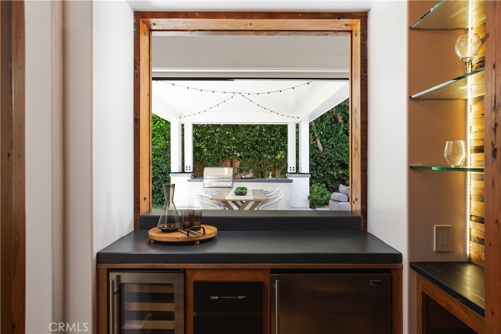 Welcome to 2217 Laurel Place —a bespoke architectural gem tucked away on a quiet cul-de-sac in coveted Newport Heights. Inspired by the clean lines and warmth of a Swedish coastal retreat, this one-of-a-kind home (“Hem” in Swedish) was designed to honor the natural elements. Built thoughtfully with sustainable, zero waste construction and careful selections throughout, the striking vertical lines, a bold asymmetrical roof, and clerestory windows form a sculptural silhouette dramatic yet harmonious flooding interiors with natural light while celebrating the outdoor spaces. Inside, the vaulted living room makes a statement with tongue-and-groove ceilings, exposed beams, and a central fireplace flanked by inset French doors. Reclaimed wood floors flow through to the dedicated dining space, chef’s kitchen and wrap-around bar all connected by oversized sliding glass pocket doors opening onto the lush, inviting yard. The kitchen is a study of form and function featuring natural soapstone countertops, Wolf range, Sub-Zero refrigerator, dual farmhouse sinks, walk-in pantry, and a custom, hand-sourced light fixture. Outside, the mature trees and garden provide a beautiful private backdrop for enjoying the perfect Newport Beach climate. The covered patio with built-in BBQ and adjacent fire pit area creates a setting perfect for gathering, lounging and celebrating under the stars. Upstairs, two bedrooms (one with a balcony) feature walk-in closets and a Jack-and-Jill bath, while a third bedroom enjoys a private en-suite. A cozy loft nook provides space for reading or play. The primary suite is a serene retreat with oversized windows framing treetop views, a massive walk-in closet, and a freshly redone spa-style bath wrapped in calacatta gold marble tile complete with a luxurious shower and freestanding soaking tub.A versatile detached casita sits at the corner of the property, complete with vaulted ceilings, floor-to-ceiling windows, and a full bath; ideal for a guest suite, home office, gym, teen lounge, or creative studio. Dual access from Holly Lane and Laurel Place gives the home two distinct fronts and easier passage to both Irvine Ave & Tustin Ave.The back gate on Holly Lane that leads to the casita and private yard masquerades as a front door while the oversized garage offers space for vehicles, a gym, workbench, and storage. 2217 Laurel Place isn’t just a home — it’s a “Hem” and conscious choice in design and lifestyle.