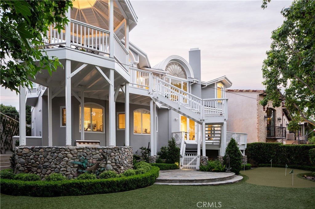 212 Kings Place, is nestled in the beautiful neighborhood of Newport Heights/Cliff Haven in the heart of Newport Beach. This expansive 4-bedroom, 6 bathroom home offers approximately 4,378 square feet of living space, designed for relaxed coastal living. Upon entering, you'll be greeted by custom woodwork that infuses elegance and warmth throughout the home. The family room is a dream, showcasing stunning views through oversized windows, perfect for both relaxation and entertaining. Whether you're hosting friends or enjoying a quiet night, the ambiance is unbeatable. The remodeled kitchen is a culinary delight, featuring a spacious island, marble countertops, a six-burner Wolf stove, walk-in pantry, and an informal eating area with views of Fashion Island. The main level includes a primary retreat with a remodeled bathroom, complete with dual sinks, a large walk-in closet, a tub, and a walk-in shower. This level also features a versatile living or music room, a formal dining room, and powder bath. Downstairs, you'll find three generous-sized bedrooms, one with an en suite bath. There's also a large bonus room with a wet bar and refrigerator, ideal for entertaining. Additional features include a second powder bath, a guest bath with dual sinks, a sauna, and an oversized laundry room. The exterior is just as impressive, with expansive gardens, built-in seating, a dining gazebo, a cozy fire pit, and a barbecue area. Located in the desirable Cliff Haven community, you're close to all the excitement Newport Beach has to offer. A standout feature is the rooftop deck, offering panoramic views and coastal breezes. It’s the perfect spot for morning coffee or sunset gatherings. This home beautifully blends elegance, comfort, and coastal charm. Whether savoring the custom finishes inside or enjoying the rooftop deck outside, 212 Kings Place is a house you would be proud to call home.