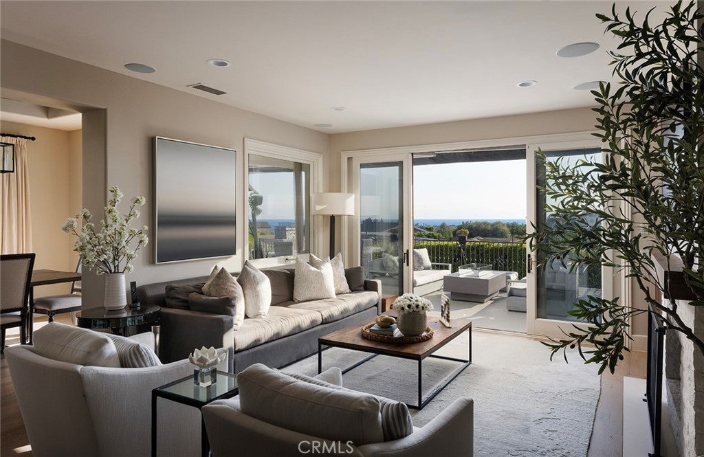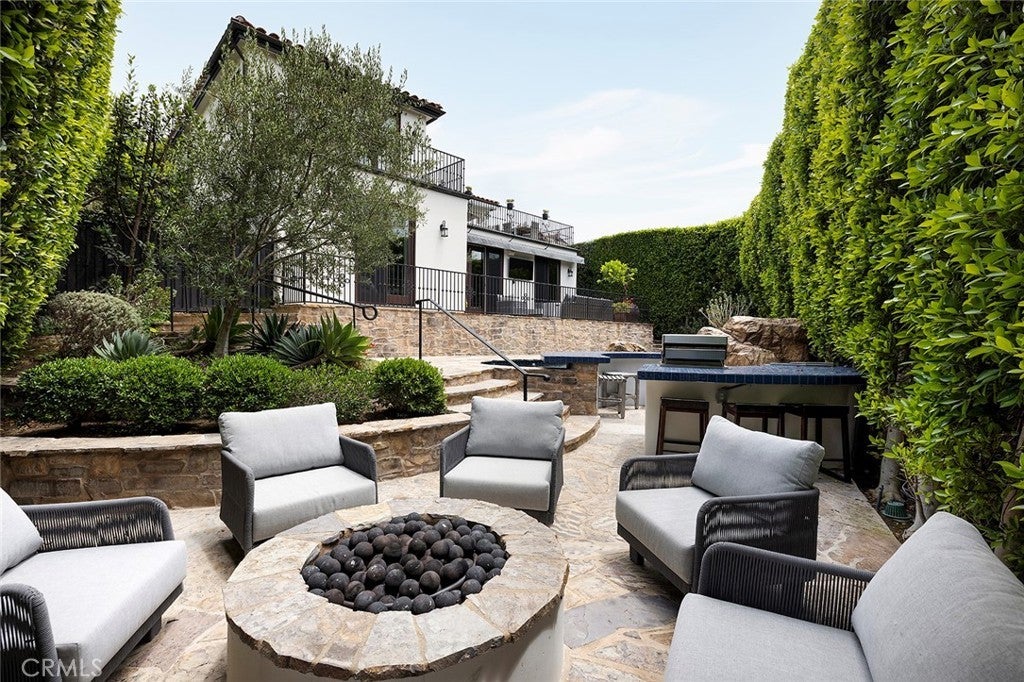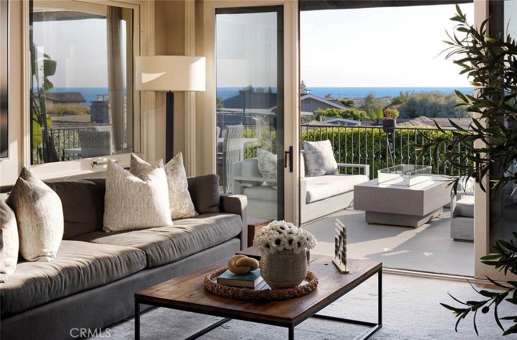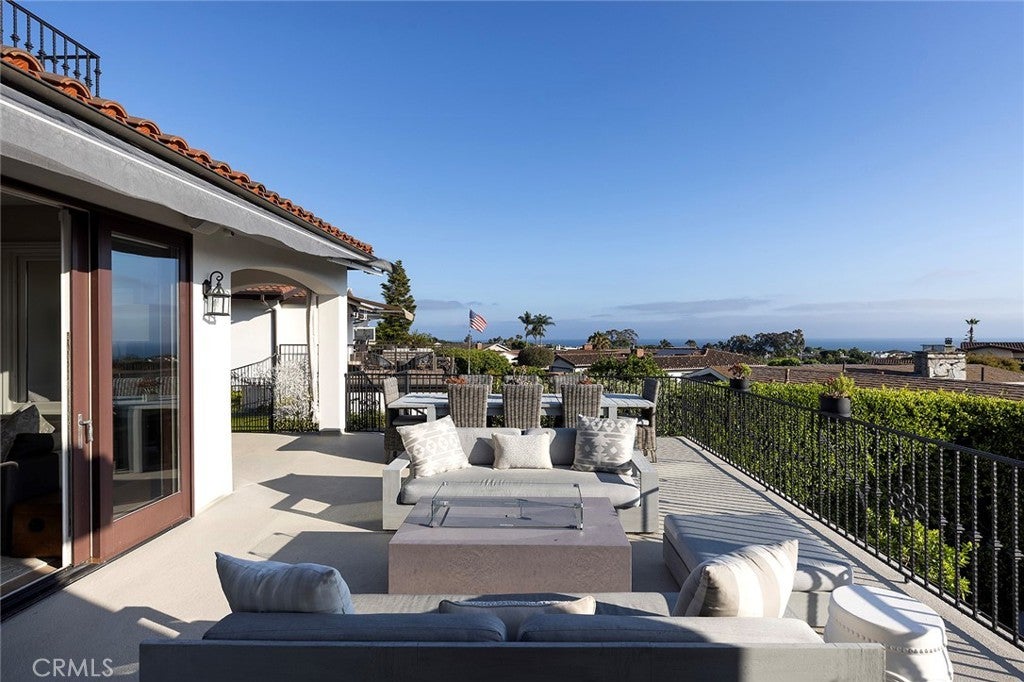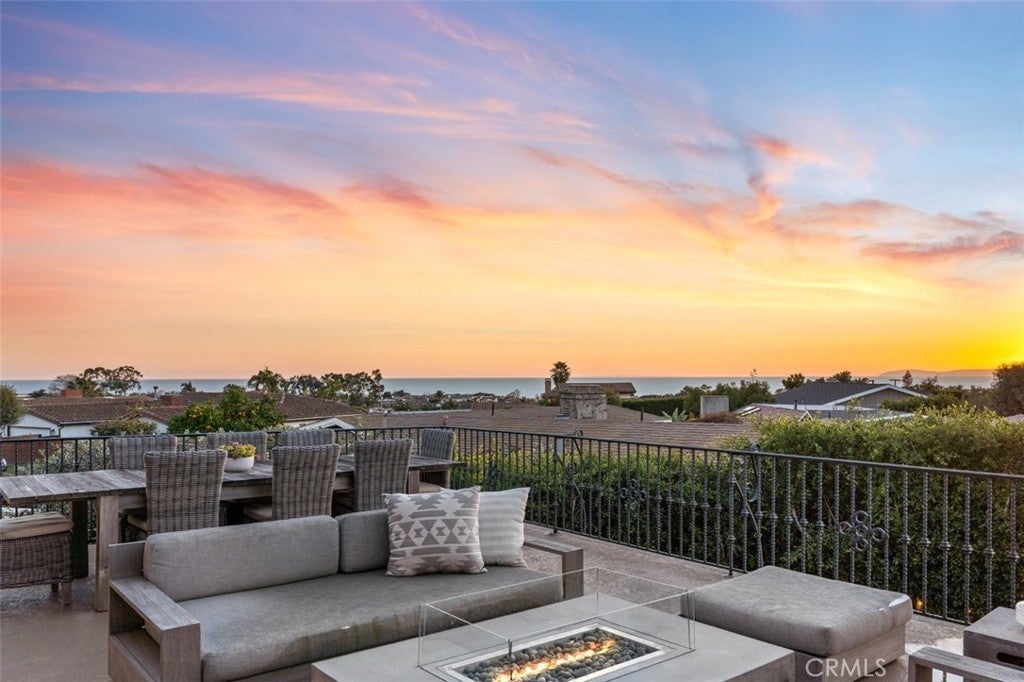 Perched in the exclusive enclave of Corona Highlands, 420 De Sola Terrace is a redefined oceanview estate with elevated finishes and sophistication throughout. Originally reimagined by renowned architect Chris Light, this four-bedroom, four-bathroom home (including a dedicated office and two elegant powder rooms) spans approximately 3,500 square feet on an expansive 7,250-square-foot lot. The open-concept layout flows seamlessly through sun adorned living spaces and a family-style dining area framed by sweeping ocean vistas. A chef’s kitchen with stone countertops and a double Viking range connects effortlessly to these spaces, perfect for everyday living and entertaining. The serene main-level primary suite offers breathtaking views, a ceiling-mounted drop-down TV, remote-controlled drapery, and a spa-inspired bath with custom tilework and luxurious finishes. Also on this level is a refined office, designed to meet the demands of top-tier executives. A true entertainer’s haven, the new lower-level retreat is appointed with a second kitchen featuring travertine countertops, designer curated lighting, custom cabinetry, beverage fridges, an ice machine, a two-keg tap system, and a custom theatre/game room. This level also features a stylish powder room with custom cabinetry, a concealed-entry laundry room, and an impressive walk-in wine cellar. Two additional bedrooms—one with direct access to the lush poolside retreat—share a Jack-and-Jill bath, offering privacy and comfort for guests. Resort-style amenities include a saltwater pool with all-new systems, a swim-up bar, built-in BBQs, and mature landscaping curated for privacy. The home is fully equipped with smart home technology, including Savant AV automation, a new surround sound system. Enjoy panoramic ocean views and nightly sunsets from nearly every room—or from one of several outdoor spaces: a wraparound deck with firepit off the main living area, a rooftop stargazing terrace with fireplace, or the private balcony off the primary suite. Residents of Corona Highlands enjoy exclusive access to the coveted Shore Cliffs beach and are just a short stroll from the heart of Corona del Mar Village—home to world-class dining, boutique shopping. Minutes from Big Corona, Little Corona, and the beaches that define the CdM lifestyle, this prime location also offers effortless access to Fashion Island, Pelican Hill Resort, and John Wayne Airport—placing the best of coastal Orange County at your doorstep.
