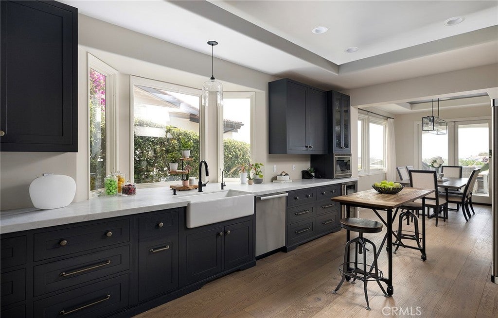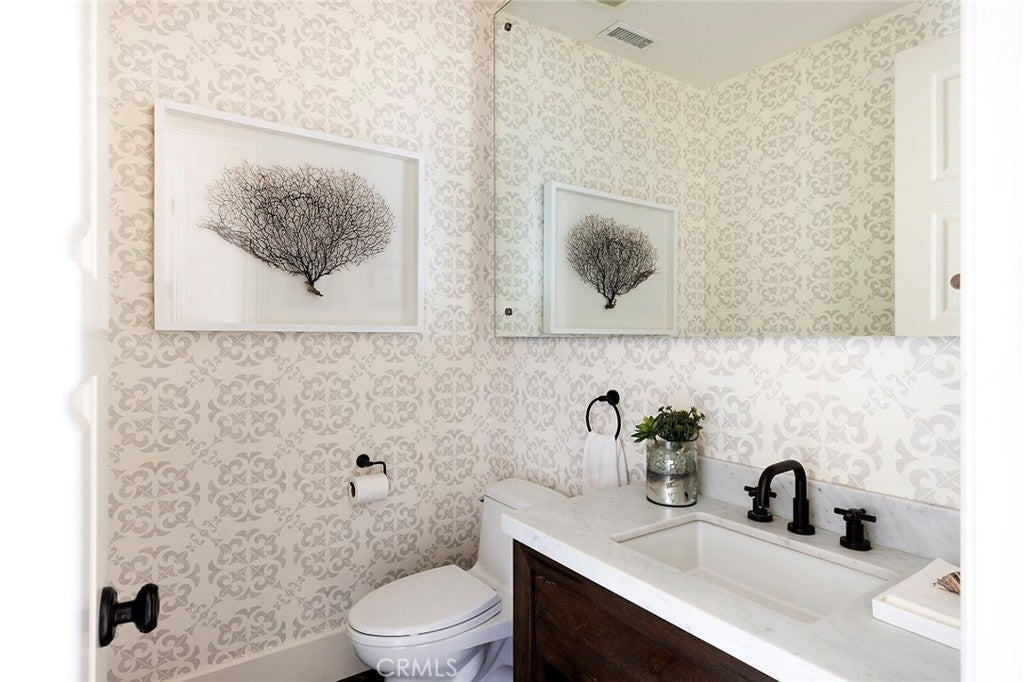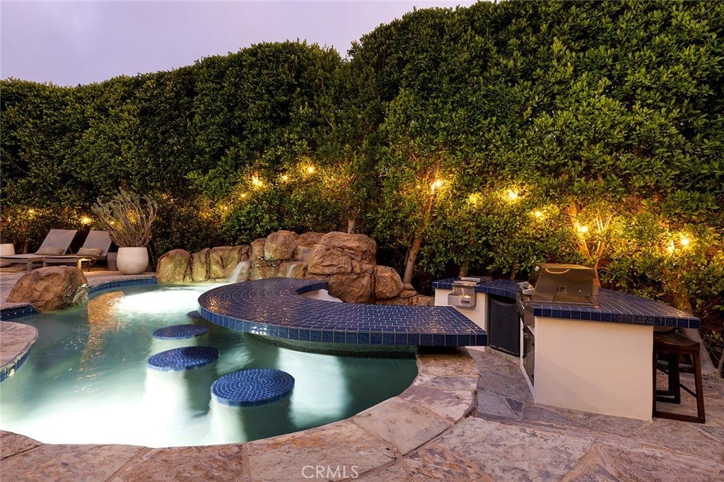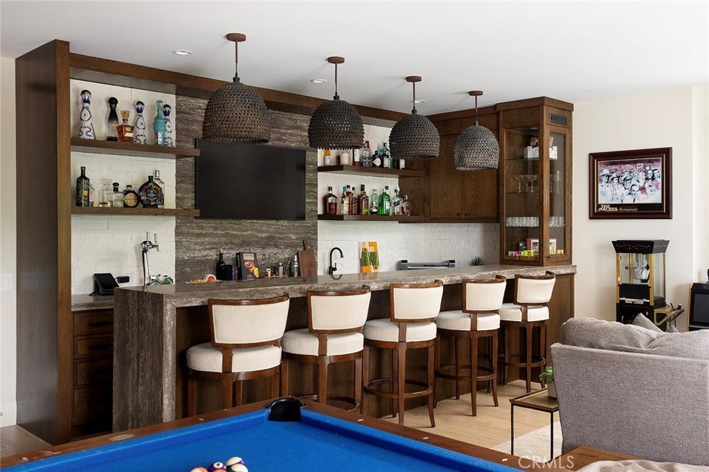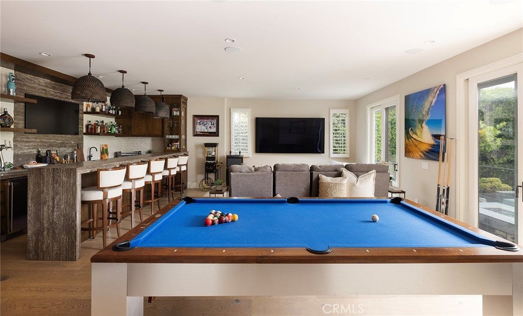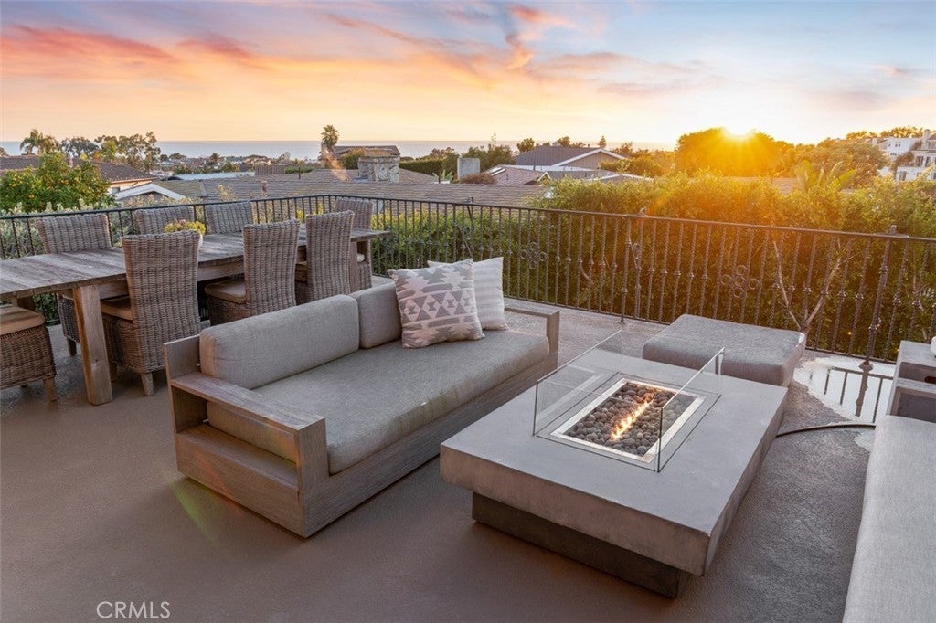 Perched in the exclusive enclave of Corona Highlands, 420 De Sola Terrace is a redefined oceanview estate with elevated finishes and sophistication throughout. Originally reimagined by renowned architect Chris Light, this four-bedroom, four-bathroom home (including a dedicated office and two elegant powder rooms) spans approximately 3,500 square feet on an expansive 7,250-square-foot lot. The open-concept layout flows seamlessly through sun adorned living spaces and a family-style dining area framed by sweeping ocean vistas. A chef’s kitchen with stone countertops and a double Viking range connects effortlessly to these spaces, perfect for everyday living and entertaining. The serene main-level primary suite offers breathtaking views, a ceiling-mounted drop-down TV, remote-controlled drapery, and a spa-inspired bath with custom tilework and luxurious finishes. Also on this level is a refined office, designed to meet the demands of top-tier executives. A true entertainer’s haven, the new lower-level retreat is appointed with a second kitchen featuring travertine countertops, designer curated lighting, custom cabinetry, beverage fridges, an ice machine, a two-keg tap system, and a custom theatre/game room. This level also features a stylish powder room with custom cabinetry, a concealed-entry laundry room, and an impressive walk-in wine cellar. Two additional bedrooms—one with direct access to the lush poolside retreat—share a Jack-and-Jill bath, offering privacy and comfort for guests. Resort-style amenities include a saltwater pool with all-new systems, a swim-up bar, built-in BBQs, and mature landscaping curated for privacy. The home is fully equipped with smart home technology, including Savant AV automation, a new surround sound system. Enjoy panoramic ocean views and nightly sunsets from nearly every room—or from one of several outdoor spaces: a wraparound deck with firepit off the main living area, a rooftop stargazing terrace with fireplace, or the private balcony off the primary suite. Residents of Corona Highlands enjoy exclusive access to the coveted Shore Cliffs beach and are just a short stroll from the heart of Corona del Mar Village—home to world-class dining, boutique shopping. Minutes from Big Corona, Little Corona, and the beaches that define the CdM lifestyle, this prime location also offers effortless access to Fashion Island, Pelican Hill Resort, and John Wayne Airport—placing the best of coastal Orange County at your doorstep.