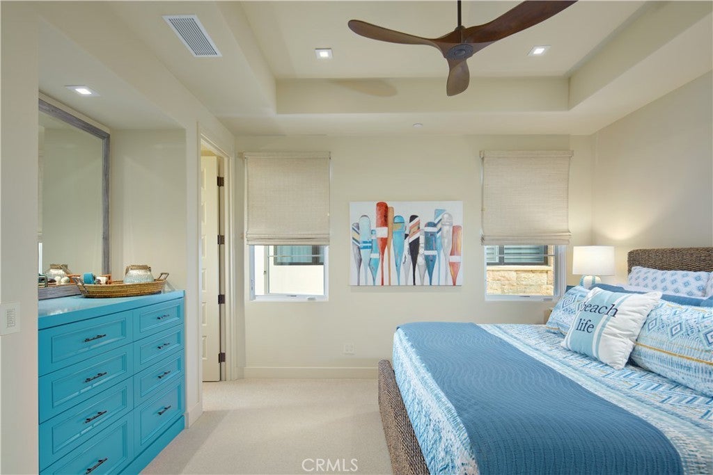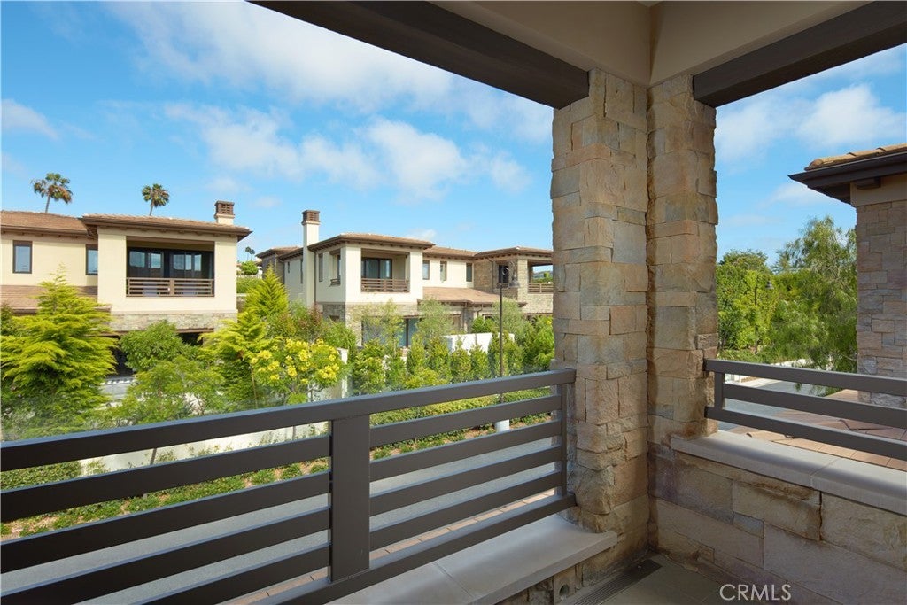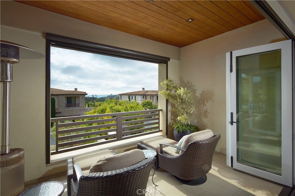 Designed for resort-style living, this sophisticated four-bedroom, four-bathroom home offers approximately 3,996 square feet of soft-contemporary design and exceptional detail throughout. From the formal entry foyer, ascend to the main level via private elevator or stairs, where all bedrooms, office, dining room, kitchen, and living areas share a single-level footprint. Refined natural finishes set the tone for relaxed luxury, with limestone flooring, designer wallpaper, and 10-foot recessed ceilings with cove lighting throughout. At the heart of the home, the expansive great room opens to a full-length covered lanai with motorized privacy screens and a tongue-and-groove wood ceiling, perfect for indoor-outdoor living. White water ocean views from both the great room and the primary suite provide a serene backdrop and a continuous connection to the surrounding landscape. The chef’s kitchen is a showpiece, featuring built-in Wolf and Sub-Zero appliances, a steam oven, coffee system, 40-bottle wine fridge, leathered quartzite island with seating for five, and custom cabinetry with floating shelves. The formal dining room is anchored by a dramatic 210-bottle refrigerated wine display. The luxurious primary suite offers lanai access, a custom walk-in closet with island, heated soaking tub, glass-enclosed shower, heated floors, and blackout Lutron shades. Additional highlights include a wood-paneled elevator, epoxy garage floors, custom storage, Sonos sound system, four-zone air and heat, and smart home tech throughout. Residents enjoy the exclusive amenities of the Waldorf Astoria Monarch Beach Resort, including access to its restaurants, pools, spas, concierge service, and fitness club.