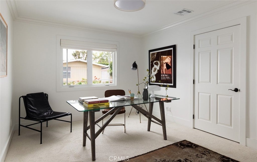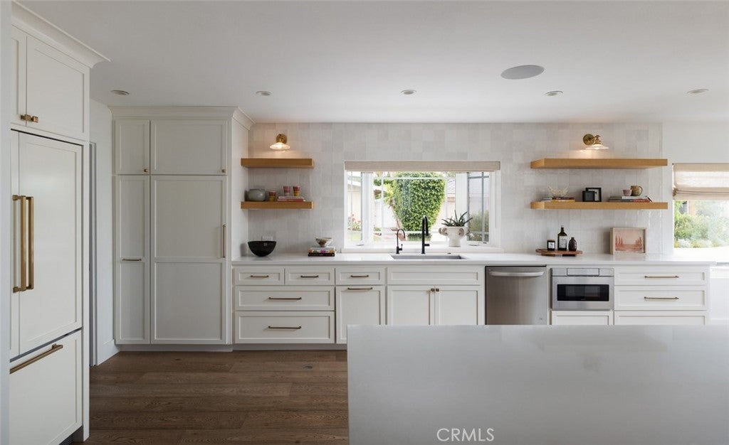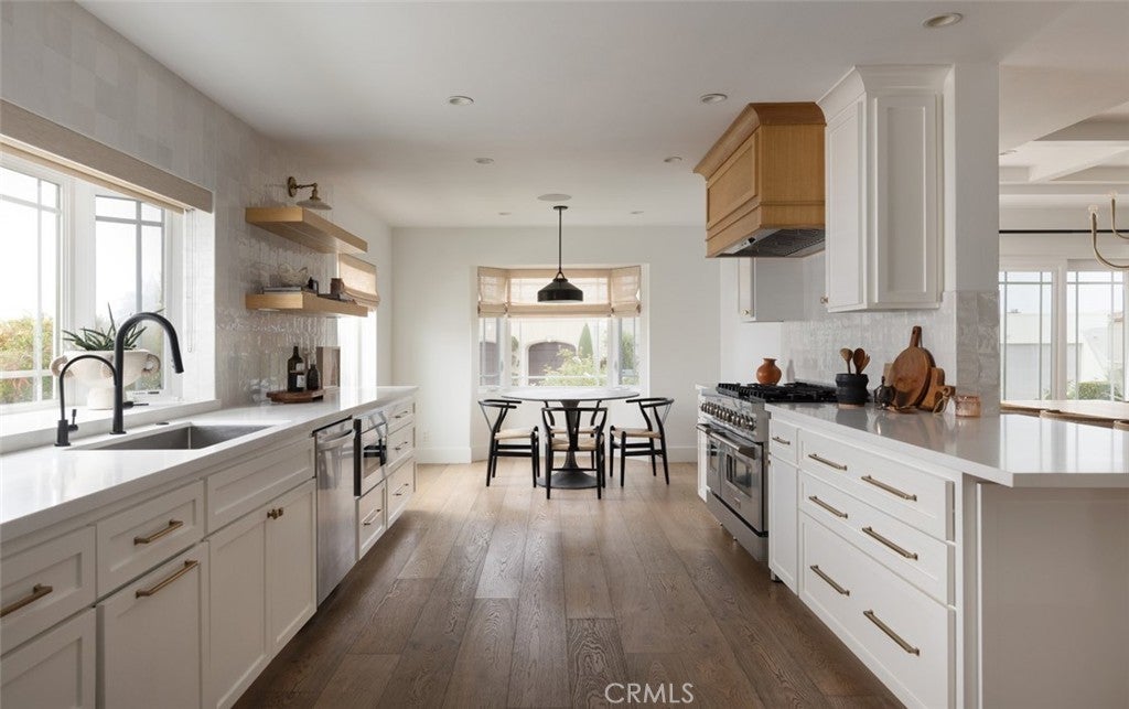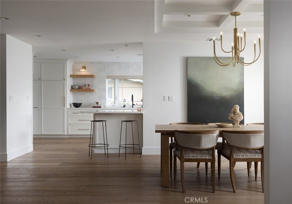 Price reduced! Spanning over 3,000 square feet, this light filled residence features 4 spacious bedrooms and 3.5 beautifully appointed baths. An open floor plan includes a grand great room, elegant dining area, and a chic wet bar that flows seamlessly to a private backyard retreat, perfect for entertaining or quiet relaxation. The chef’s kitchen is a true showpiece, boasting professional grade stainless appliances, a 6-burner range, floating shelves with a striking tile backsplash, a water filtration system, and a charming breakfast nook with a bay window. The luxurious primary suite is a private sanctuary with direct patio access, a spa-inspired bath with soaking tub, walk-in shower, makeup vanity, and an expansive walk in closet. Two guest bedrooms share a stylish dual-vanity bath, while a fourth en-suite bedroom offers flexibility as a guest suite or home office. Thoughtful design elements include coffered ceilings, rich ¾-inch Merbau hardwood floors, custom cabinetry, oil-rubbed bronze hardware, dual-zone HVAC, and a full security system. A dedicated laundry room adds convenience with built-in storage, wash basin, and side entry. Enjoy the serenity of your sun-drenched backyard with a sparkling pool, or engage with neighbors from your charming front patio. Enjoy the serenity of your sun-drenched backyard with a sparkling pool, or engage with neighbors from your charming front patio. Just minutes from Balboa Island, world renowned shopping at Fashion Island, Whole Foods, the Newport Beach Country Club, and the boutiques of Corona del Mar Village, this is a rare offering in one of the most sought after communities on the California coast.