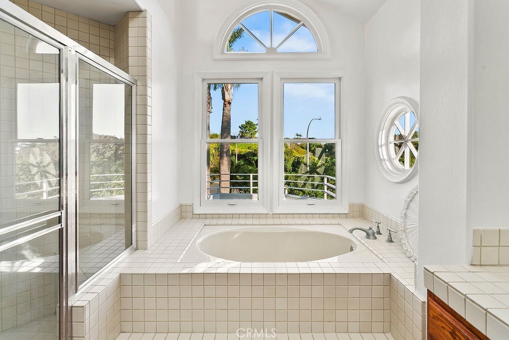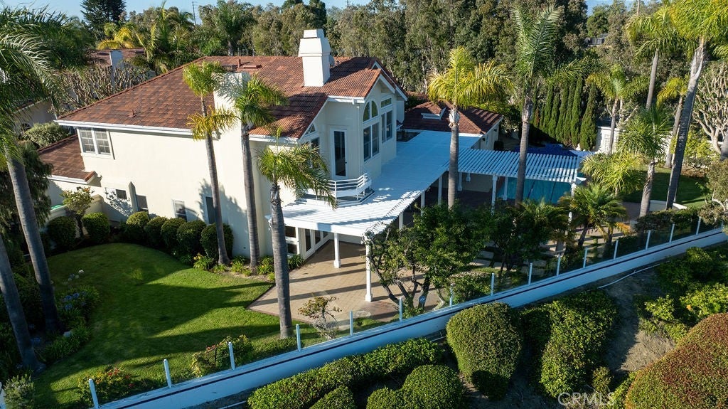 Do you want privacy? Especially in the Corona del Mar area of Newport Beach? Perched on a rare 19000+ square foot level ocean view lot in gated Harbor Pointe, is your next home! With Mediterranean vibes and only 20 homes in the enclave, you have the advantage of privacy and space, yet closeness to the financial headquarters, prestigious shopping and world class restaurants of Newport's Fashion Island. VALUABLE SIDE NOTE: This is an Orange County area that is NOT MAPPED as a high fire zone! Great indoor/outdoor living with 3 grassy areas, a giant pool with separate spa...it's a welcoming space for gathering friends and family as well as a peaceful retreat to enjoy both the early coastal fog and the sunset over the ocean. The permitted pool/guest house with its bedroom, kitchen, bath and sauna might be perfect as a home for your guests or family members. All bedrooms are ensuite. Vaulted ceilings in living room and upstairs bedrooms, living and dining rooms accentuate light and grand space. There is a spacious downstairs bedroom suite.You'll love your sanctuary/primary bedroom retreat with its corner fireplace, its 2 story windows, and its secluded ocean view balcony. And check out the separate downstairs office with its 2 story sun lit windows and extensive work area...what a great place to show-off your special awards and trophies. And be sure to check out the private 10+ car driveway!