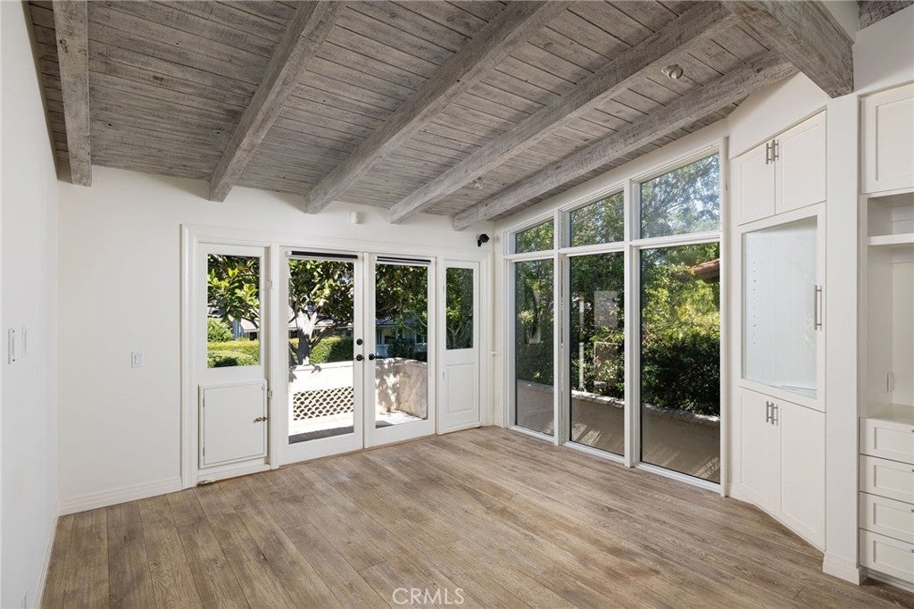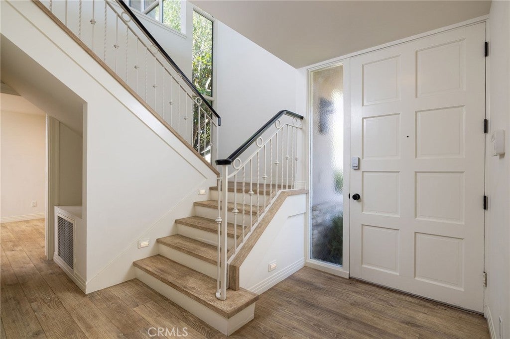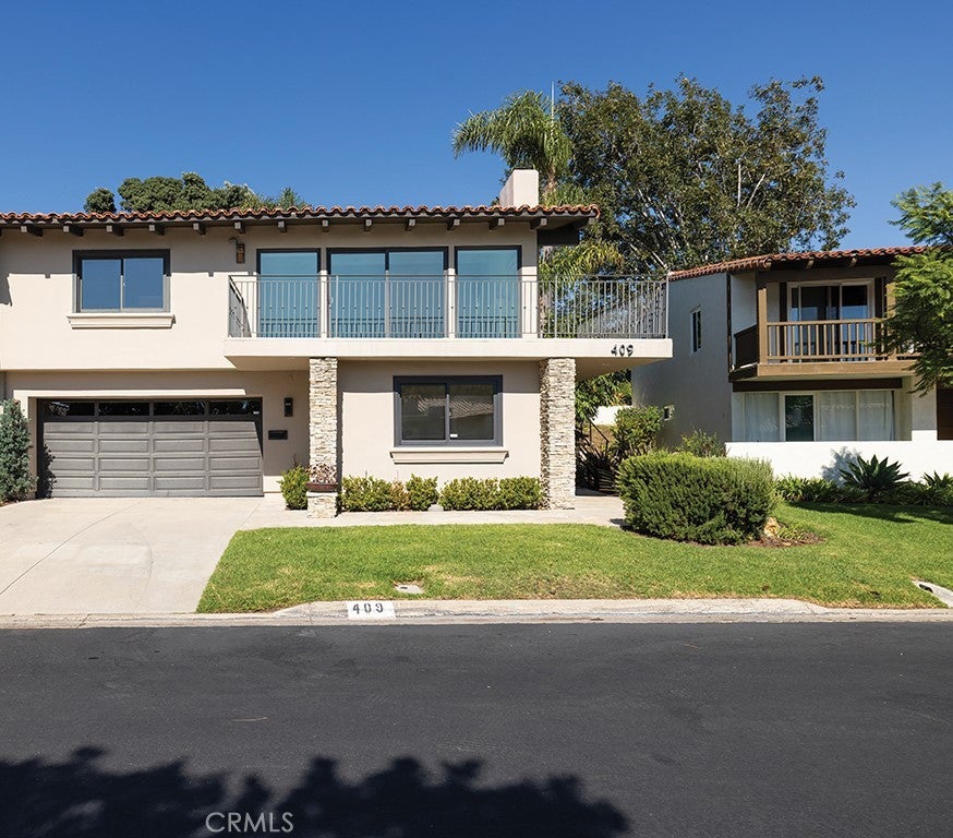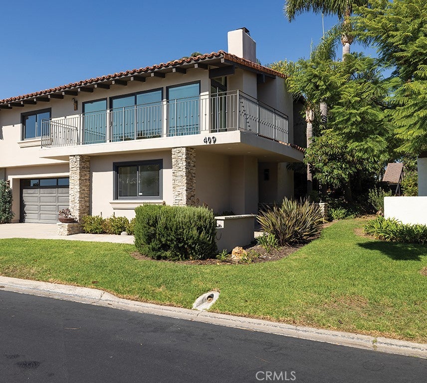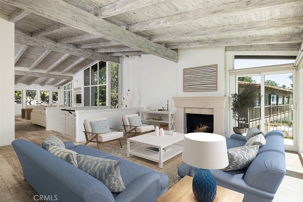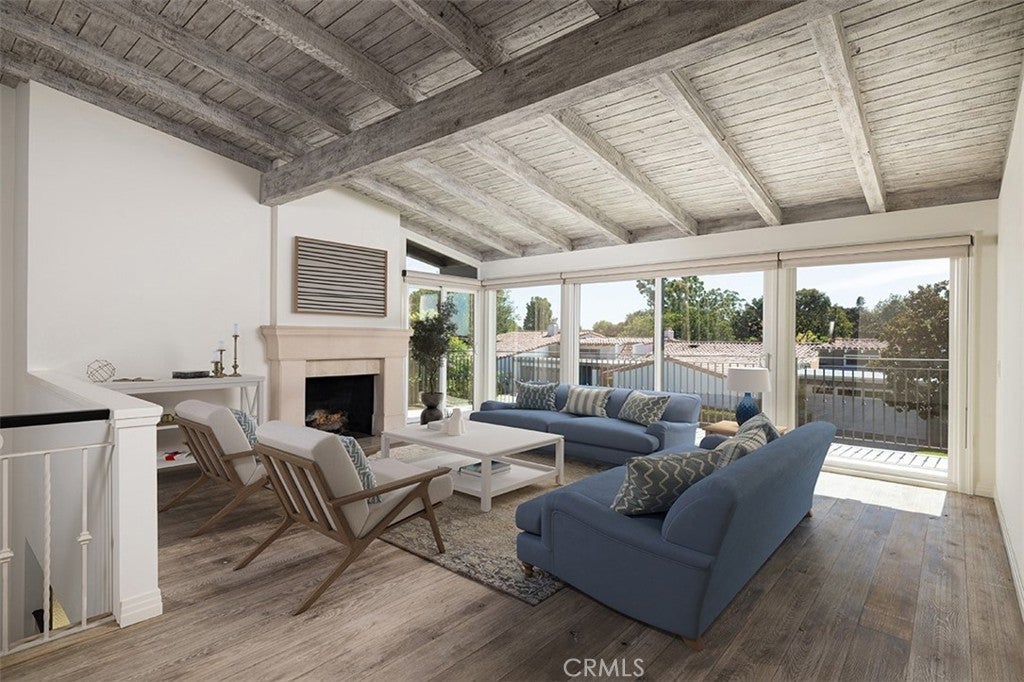Nestled in the beautiful enclave in the Bluffs community. 409 Vista Grande is a tastefully upgraded G residence that stylistically blends elegance with modern design. Boasting approximately 2,560 square feet, the spacious layout offers 3 bedrooms—including one on the ground floor combined with a large built out area which could be a workout room, storage, craft room etc.—three full bathrooms, and a private home office on the 2nd level, perfectly accommodating a range of living needs. A large light-filled staircase with pendant lighting leads to the expansive upper level, detailed with rustic reclaimed wood beam ceilings, light wide plank hardwood floors, and lots of natural light create an wonderful living space. The large main living areas include a family room with a stone-framed fireplace, dining area and large sliding glass doors that open to a private wraparound balcony with access to beautiful green belt. The gourmet eat-in kitchen is complete with Blackstone countertops, Carrera marble backsplash, stainless steel appliances, custom white cabinetry, and ample bar seating, large dramatic overhead skylights flood the living area with sunshine. A private office with double glass doors provides privacy while still pulling lots of natural lighting in throughout. Upstairs accommodations include a secondary bedroom with newer carpeting and custom wainscoting, and a large owner’s suite with a spa-inspired bath featuring penny-round cork flooring, dual vanities, and a large walk-in shower with floor-to-ceiling designer tile. Additional highlights include: Nest thermostats, Recessed lighting, Fresh interior paint, Attached two-car garage, 2 sets of laundry hook-ups, Epoxy garage floor, Exterior has been smooth coated giving the beautiful this home a very updated look. Located in an award-winning school district and moments from upscale dining, high-end shopping, Newport Beach Country Club & Big Canyon Country Club, and world-class Fashion Island shopping. Don't miss this one!!!