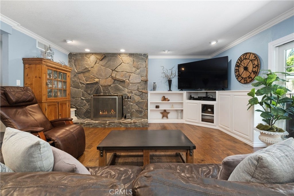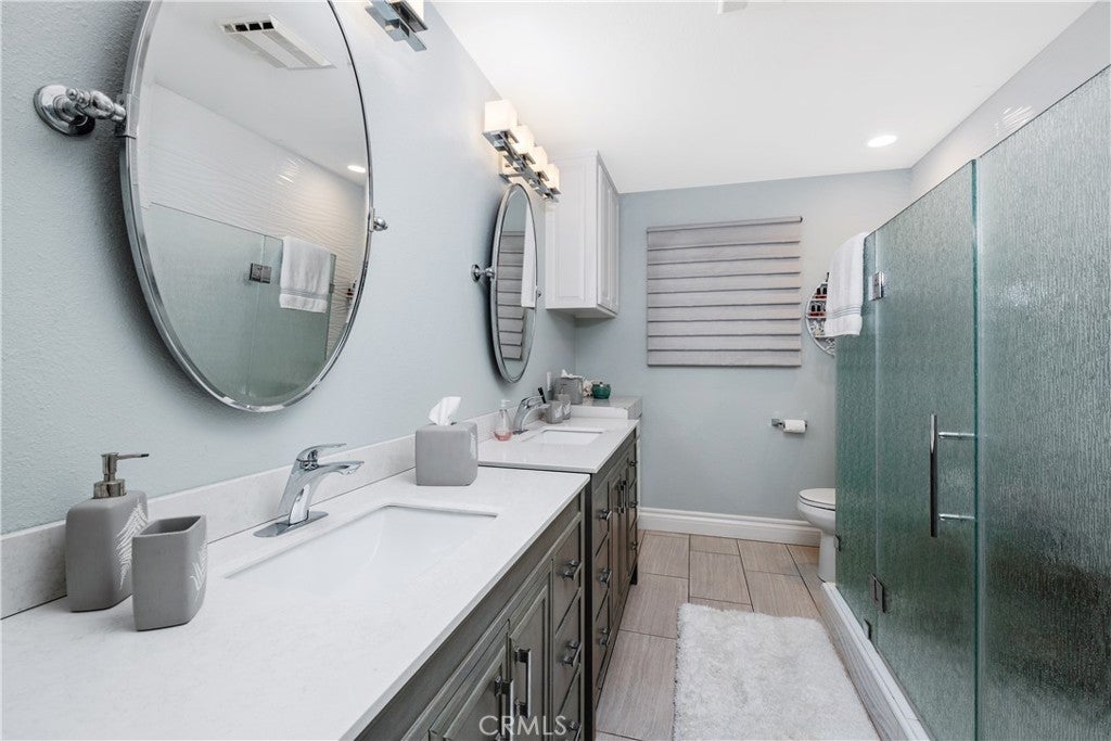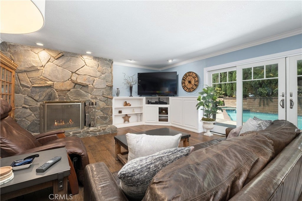 This sprawling 4,993-square-foot single-story ranch home is located in the highly desirable Red Hill Ridge neighborhood, situated on a nearly half-acre flat rectangular lot. The home features five bedrooms and five bathrooms, including a separate 1,350-square-footADU, complete with a full kitchen, bathroom, living room, large closet, and an office, making it a wonderful potential rental option. The primary bathroom has been beautifully remodeled and includes a double sink vanity, a new walk-in shower, a soaking tub, two large walk-in closets and additional storage. There are also three more bedrooms. The spacious living room and family room share a cozy double-sided fireplace. The family room also features a walk-up wet bar complete with 4-5 barstools and ample storage. Recent upgrades include three air conditioning units—two of which are new, a 4-ton and 5-ton AC—two water heaters, and an EV charger in the garage. Additionally, the study/library/office includes a Murphy bed and provides access to the rear yard and pool. The home boasts newer wood and tile flooring throughout. Outside, you'll find a large private pool with an attached spa, fully fenced in for security and safety. The yard includes a spacious lawn area, two storage sheds on the side yard, and ample space for an RV. The property also features a three-car garage and a circular driveway that can accommodate multiple vehicles for guests. The total cost of renovations exceeds $250,000 since the seller has occupied the property. Price Improvement to $3,450,000