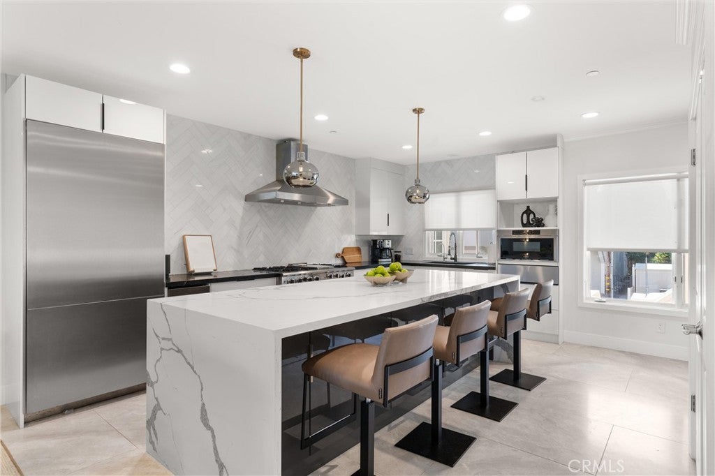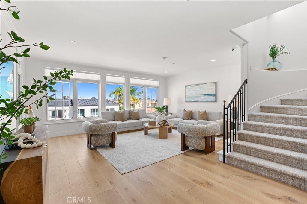 Experience iconic Corona Del Mar living in this completely reimagined 3-bedroom, 2.5-bath ocean-view home, offering unparalleled comfort and style—as well as parking for up to 9 cars! Situated on a quiet cul-de-sac just one block from the ocean on the coveted 300 block of Carnation Ave. and featuring stunning panoramic views of Newport Harbor, Fashion Island, and the Pacific Ocean, this idyllic home redefines the modern seaside lifestyle. Step inside to discover a light-filled, open-concept layout enhanced by designer finishes throughout including wide-plank wood flooring, modern lighting, custom paint, and ultra-quiet ceiling fans. The spacious living room features a wall of custom windows that invite natural light and fresh ocean breezes, complemented by a new contemporary fireplace with wood mantle. The gourmet chef’s kitchen is a showstopper, equipped with stone countertops, modern cabinetry accented by stylish herringbone backsplash, an oversized island with waterfall edges, and top-of-the-line stainless steel appliances: 6-burner range with double oven, hood, microwave, warming drawer, oversized refrigerator, and wine fridge, ideal for culinary enthusiasts. A chic wet bar with a second wine fridge and a cozy office nook completes the space, perfect for both entertaining and everyday living. Upstairs, the resort-inspired primary suite features a cozy fireplace, wall-mounted flat-screen TV, Walk-In Closet, and built-in designer wardrobes with elegant lighting. The spa-like en-suite bath includes dual vanities, a soaking tub, a walk-in shower with skylight, and custom tilework for a truly luxurious experience. The expansive patio offers plenty of space for entertaining and enjoying breathtaking views of the harbor & ocean as well as gorgeous sunsets. The lower level offers 2 additional bedrooms, each combining high design with modern comfort. For the car collector or hobbyist, the finished 3-car garage features epoxy flooring and storage, and room for 3-5 additional vehicles on the driveway, depending on size. This offers versatile options for a home office, gym, or car collection, all with hassle-free parking. The exterior has recent updates including new roofing, paint, rain gutters, sprinklers, landscaping, and lighting. Located steps from the beach and CDM Village’s cafés, boutiques, fine restaurants, and just minutes from legendary surf, freeway access, Fashion Island, and top-rated schools, this immaculate home offers coastal living at its finest.