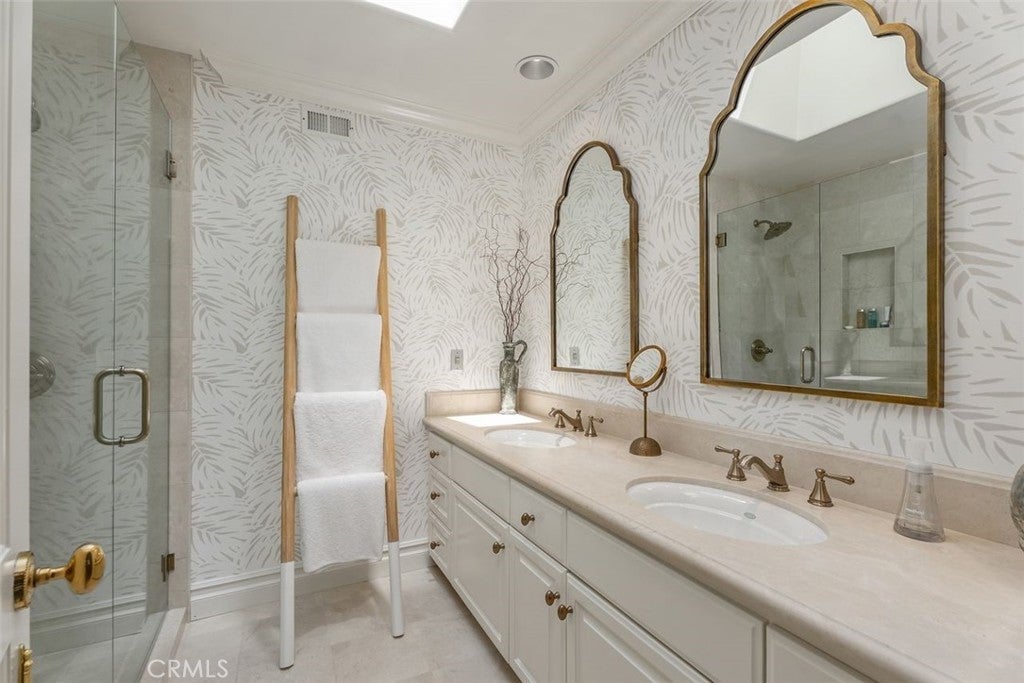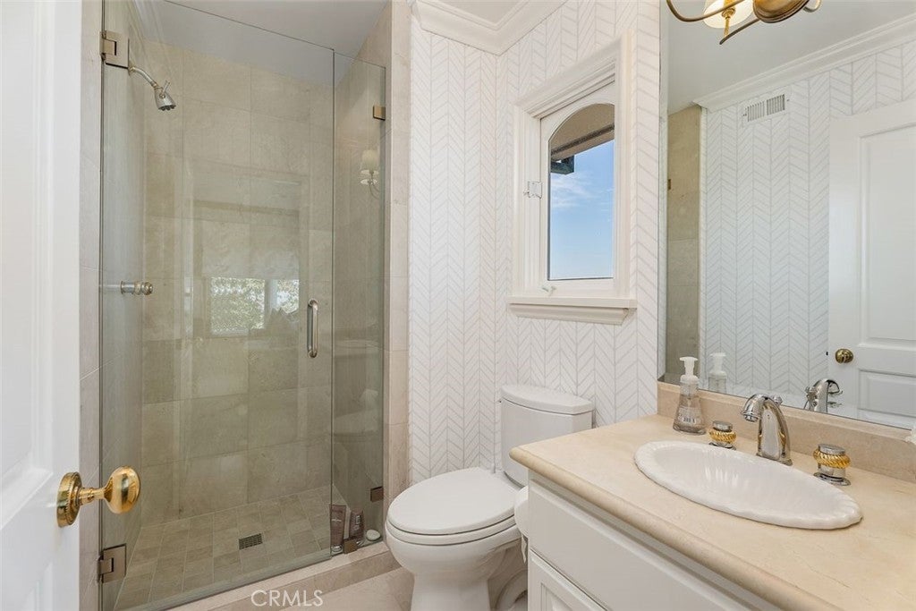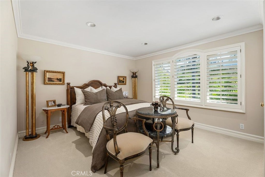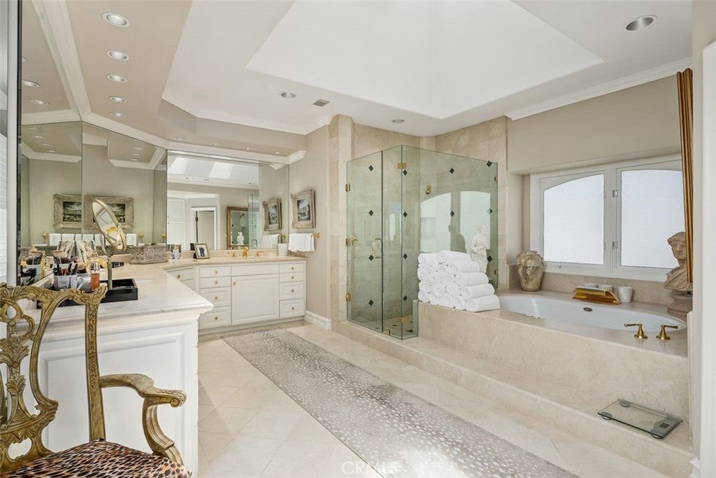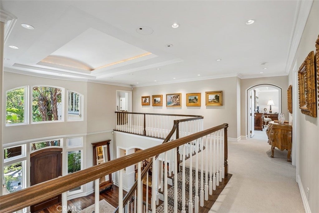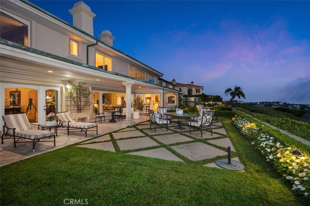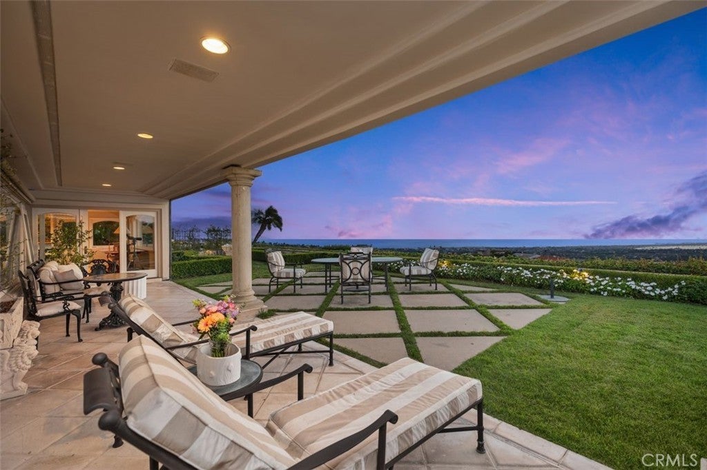 This stunning custom home boasts absolutely breathtaking, panoramic 180-degree views of the coastline featuring dramatic views of Catalina, the Newport Harbor, Palos Verdes, and Los Angeles. Extensively renovated in 2019 , the impeccable quality craftsmanship is evident throughout. The dramatic entry has cathedral ceilings and features a formal dining room to the left with custom wood paneling and a formal living room to the right with marble fireplace, custom cabinetry, and beautiful walnut hardwood floors throughout. The great room concept features a gourmet kitchen that is a chef's dream, featuring Rosso Levanto marble countertops, a full-size Subzero refrigerator and freezer, and Thermador appliances, including a six-burner stove with a griddle, double ovens, and a microwave with a heating drawer and delightful barstool seating and dining table. The kitchen also opens to a wet bar area complete with a Subzero wine fridge, two GE drink drawers, a GE Monogram wine fridge, a KitchenAid ice machine, and a spacious family room perfect for entertaining. The downstairs level also includes a guest bedroom en-suite with a marble shower and Carrera marble accents, a dedicated laundry area with a Maytag washer and dryer. Upstairs, you'll find three bedrooms, an office, bonus room, a gym, and a luxurious primary suite with a sitting area, marble fireplace, and incredible views. Other features include a large walk-in closet and a lavish bathroom featuring Crema Marfil marble floors and countertops. The home is in pristine condition, offering modern luxury, timeless elegance, and exceptional views, three car garage, gated entry, and lush gardens is ideal for those seeking a move-in-ready residence in the highly sought-after community of Spyglass Hill in Corona Del Mar.