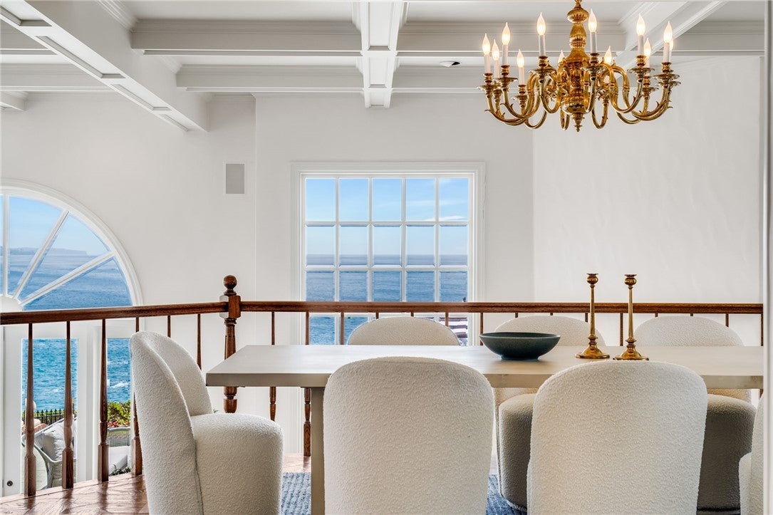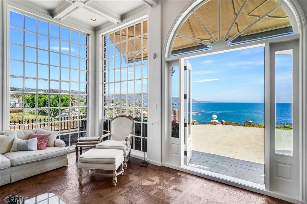 Magnificently situated on the prized north-western point of Crescent Bay, Chateau du Soleil overlooks the glistening Pacific Ocean, the picturesque curve of Crescent Bay, and a view immortalized countless times in paintings and photographs. This is an extremely rare opportunity to own a legacy estate property with only four previous owners stretching back to the nineteenth century. Anchoring the estate is an expansive oceanfront lawn and gardens – a unique feature rarely found in oceanfront estates along this coast. This generous space provides a special sense of serenity and offers a level of privacy uncommon in oceanfront living. Whether used for entertaining, relaxing or simply taking in the ever-changing light over the water or whale-watching, the space feels like your own private overlook park. The views from inside the home are epic - framed by towering two-story 'windows on the Pacific'. With substantial interior square footage and a forward location on the point, the home would be difficult (if not impossible) to replicate under today’s coastal development restrictions. Currently configured as a four-bedroom home with an abundance of additional flexible-use rooms, the floor plan and size easily lend themselves to a variety of configurations depending on the new owner’s needs. Also unusual in oceanfront properties, this home has three oversized garage bays and driveway parking. For those unfamiliar with Laguna Beach’s Crescent Bay, this stretch of sand is stunningly beautiful and never without something interesting to watch. Waves crash on the tide pools in endlessly interesting patterns, pelicans fly by at eye level as they head back to their nests, colorful umbrellas dot the sand, and the local marine mammal rescue uses this beach to release the seals and sea lions they’ve nursed back to health. It is considered one of the most picturesque spots on the California coast and inspired the artist pilgrimage to the area that established Laguna Beach before the 20th century. Crescent Bay Drive and even this property counts among its owners and residents many of the notable families whose names are still known to this day – Heisler, McKnight, and Florence ‘Pancho’ Barnes. Chateau du Soleil, 245 Crescent Bay Drive, is a singular offering. Spectacular locale, stunning setting, and the required existing building envelope to satisfy dreams. Rare are estate opportunities like this.