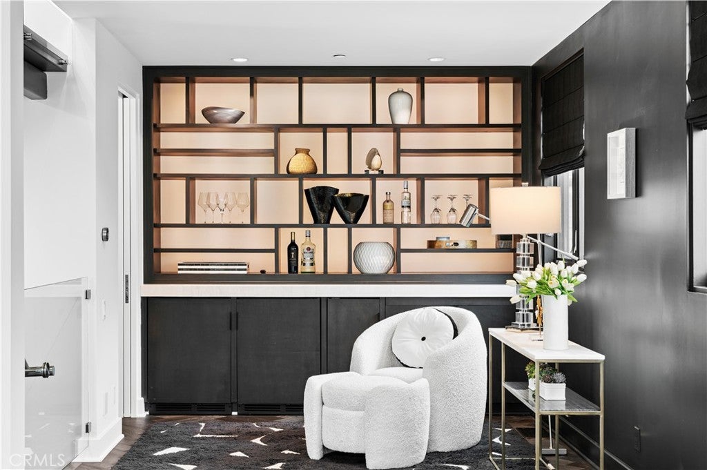 Breakfast Bar, High Ceilings, Stone Counters, Bar, Bedroom on Main Level, Walk-In Closet(s), Built-in Features, Central Vacuum, Living Room Deck Attached, Multiple Staircases, Open Floorplan, Primary Suite, Recessed Lighting, Separate/Formal Dining Room, Wet Bar, Wired for Data, Wired for Sound